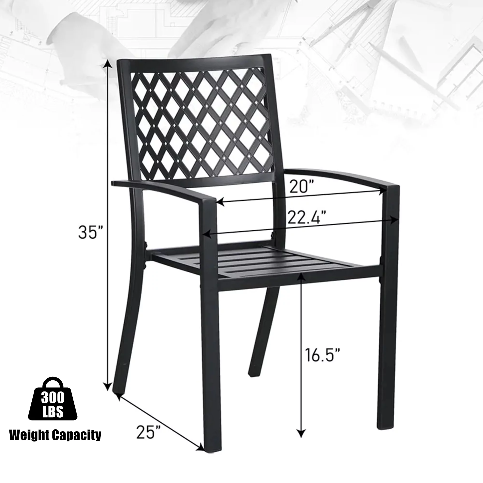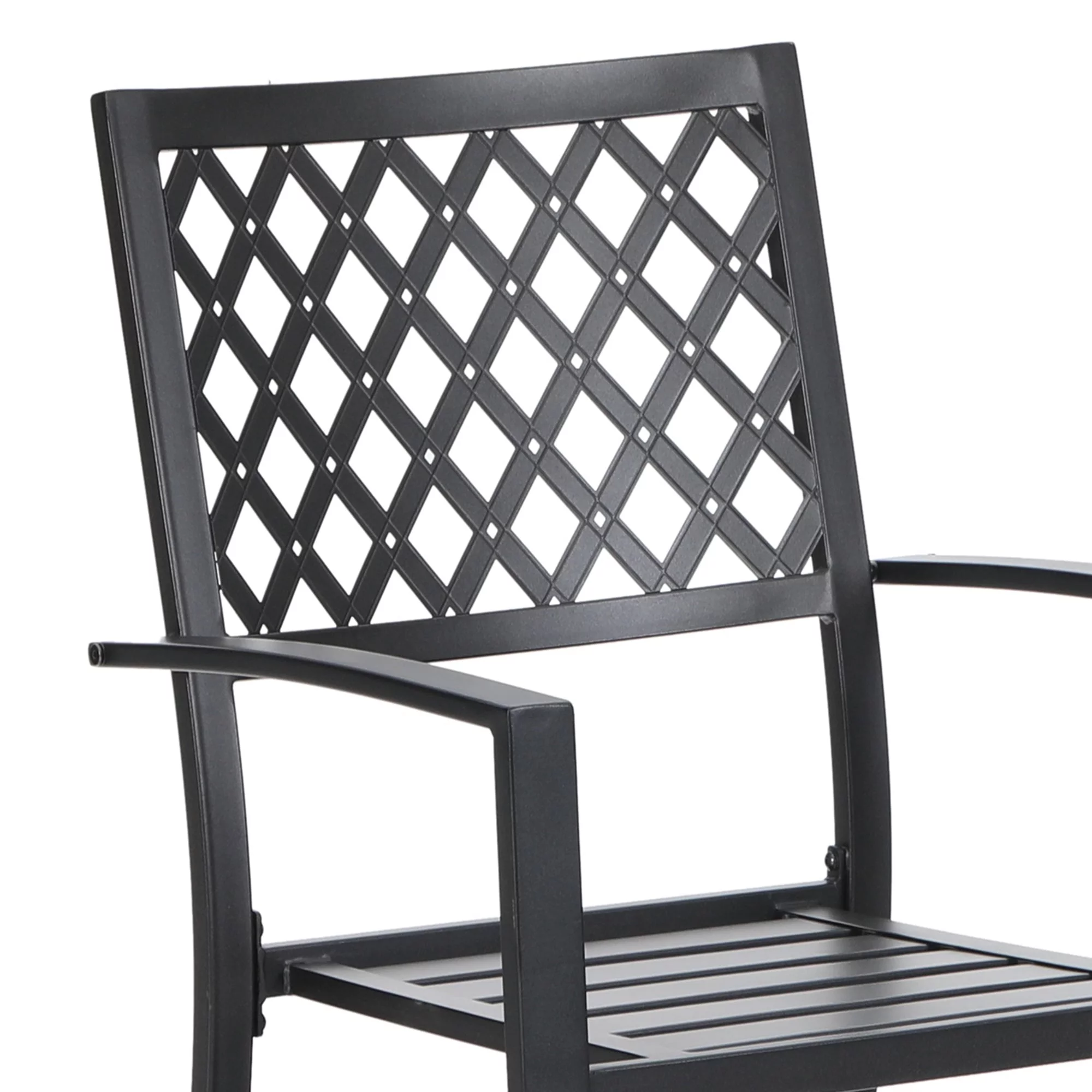 MF Studio 5-Piece Outdoor Patio Dining Set Modern Steel Furniture with 4 Slatted Armchairs and 1 Square Wood-like Table, Black
