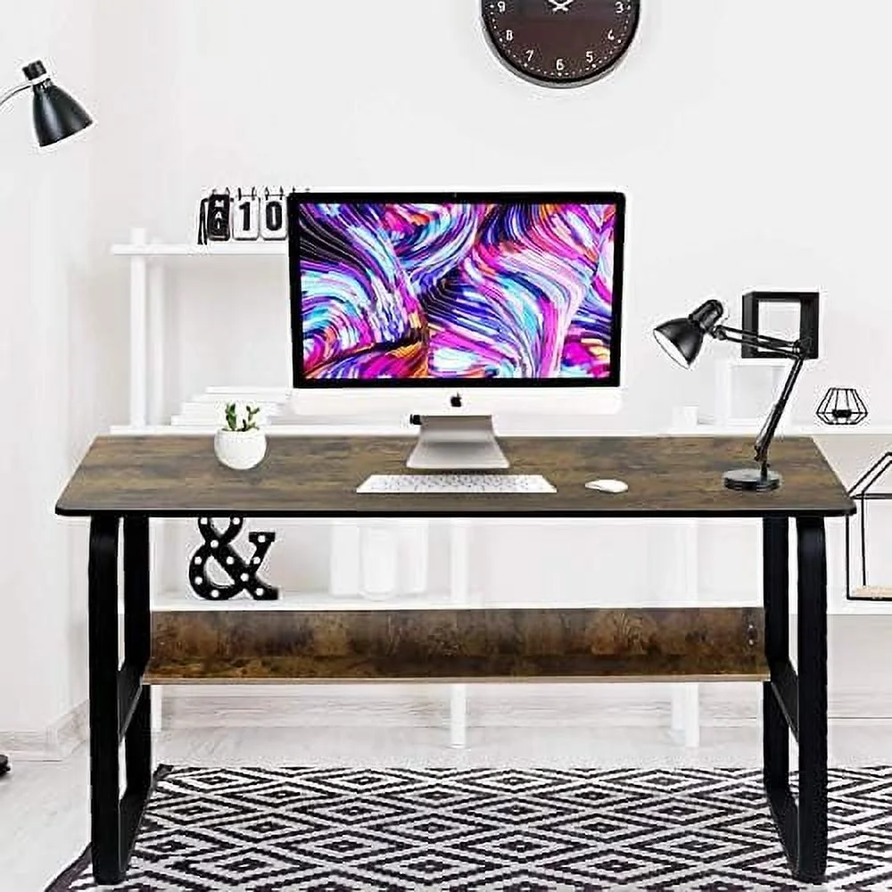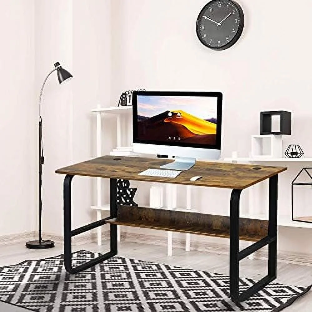 RUNFAYBIU Jerry & Maggie - Computer Desk Home Office Desk Personal Work Station Desktop Cable Accessory Book Design Reading Writing Studying 55'' - Rustic Wood Tone