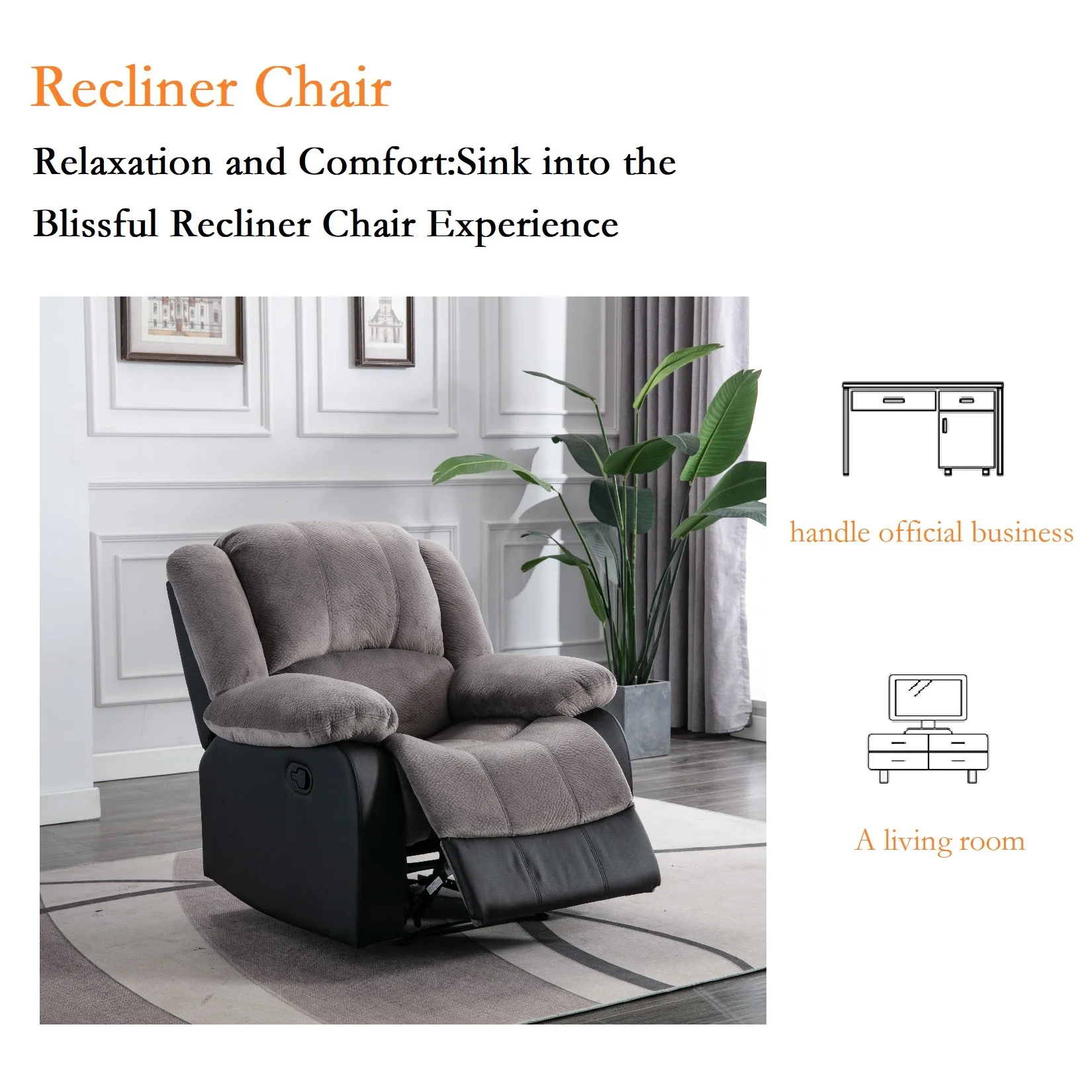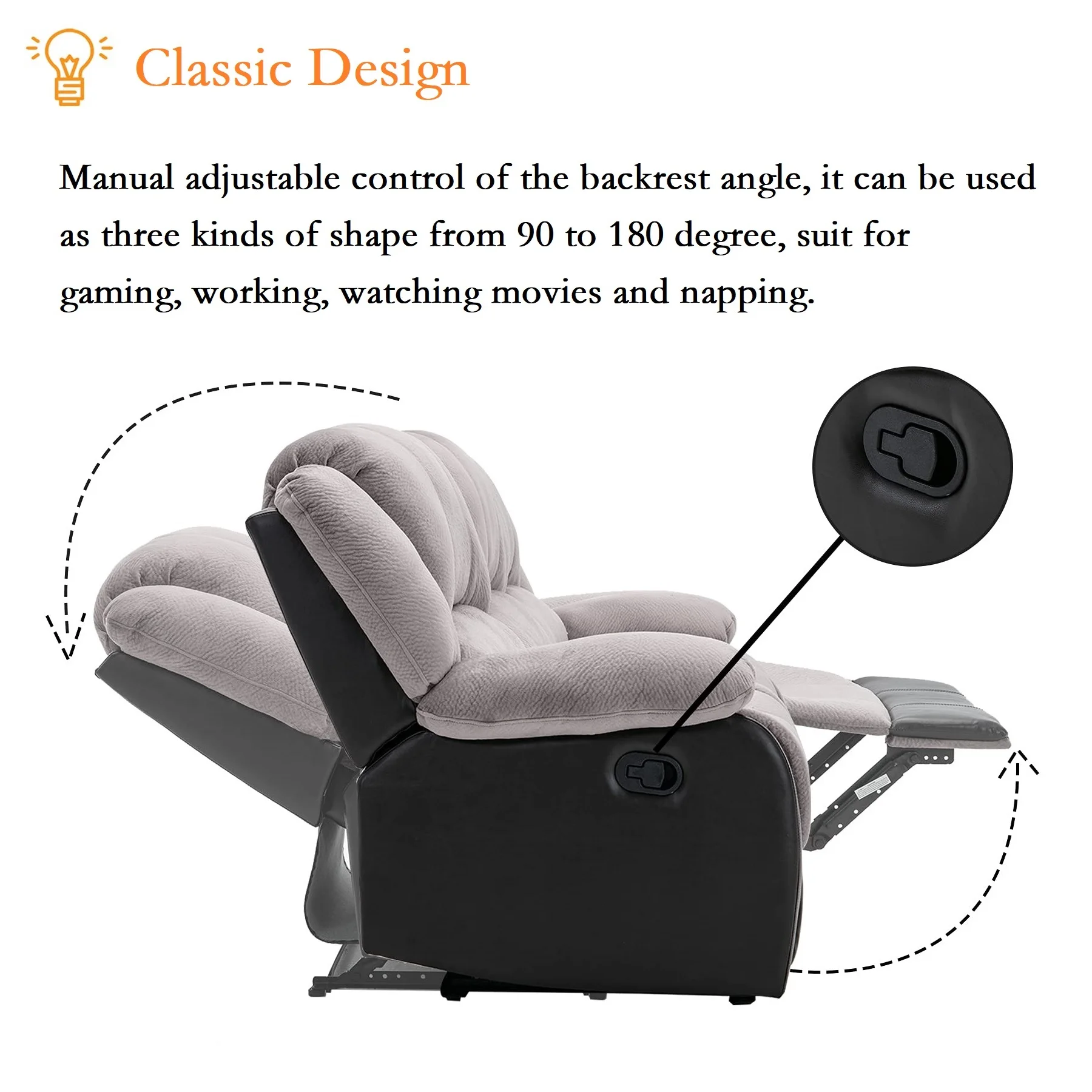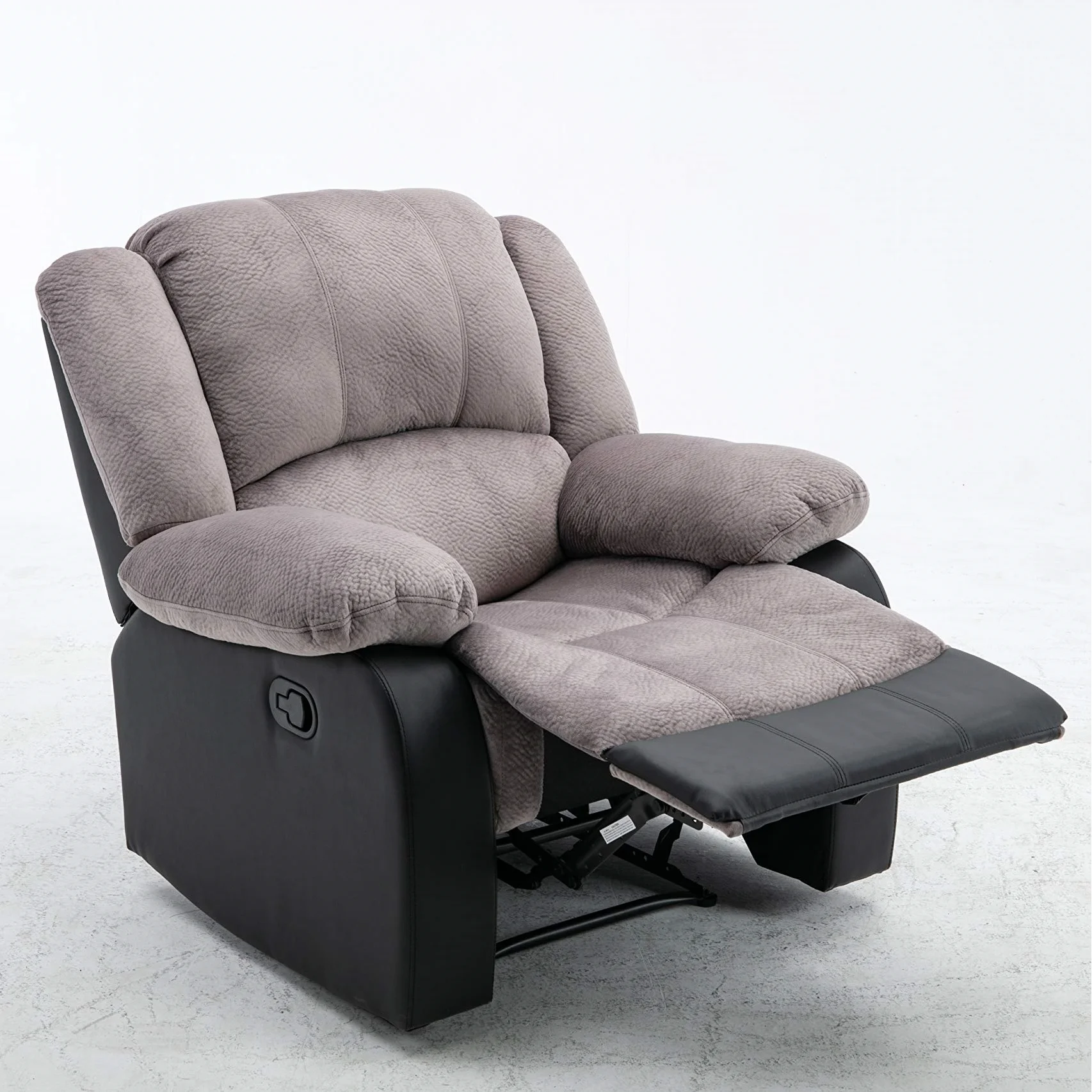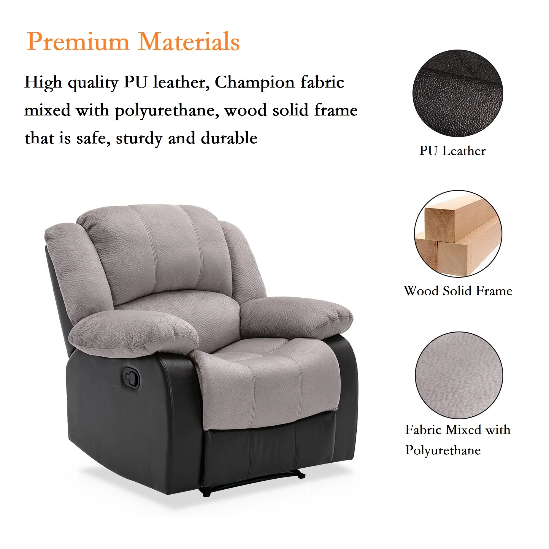 Nathaniel Home Manual Single Reclining Sofa, Champion PU Leather Upholstered Couch, Tufted Recliner, Plush Scoop Seating, for Living Room Home Theater, Gray