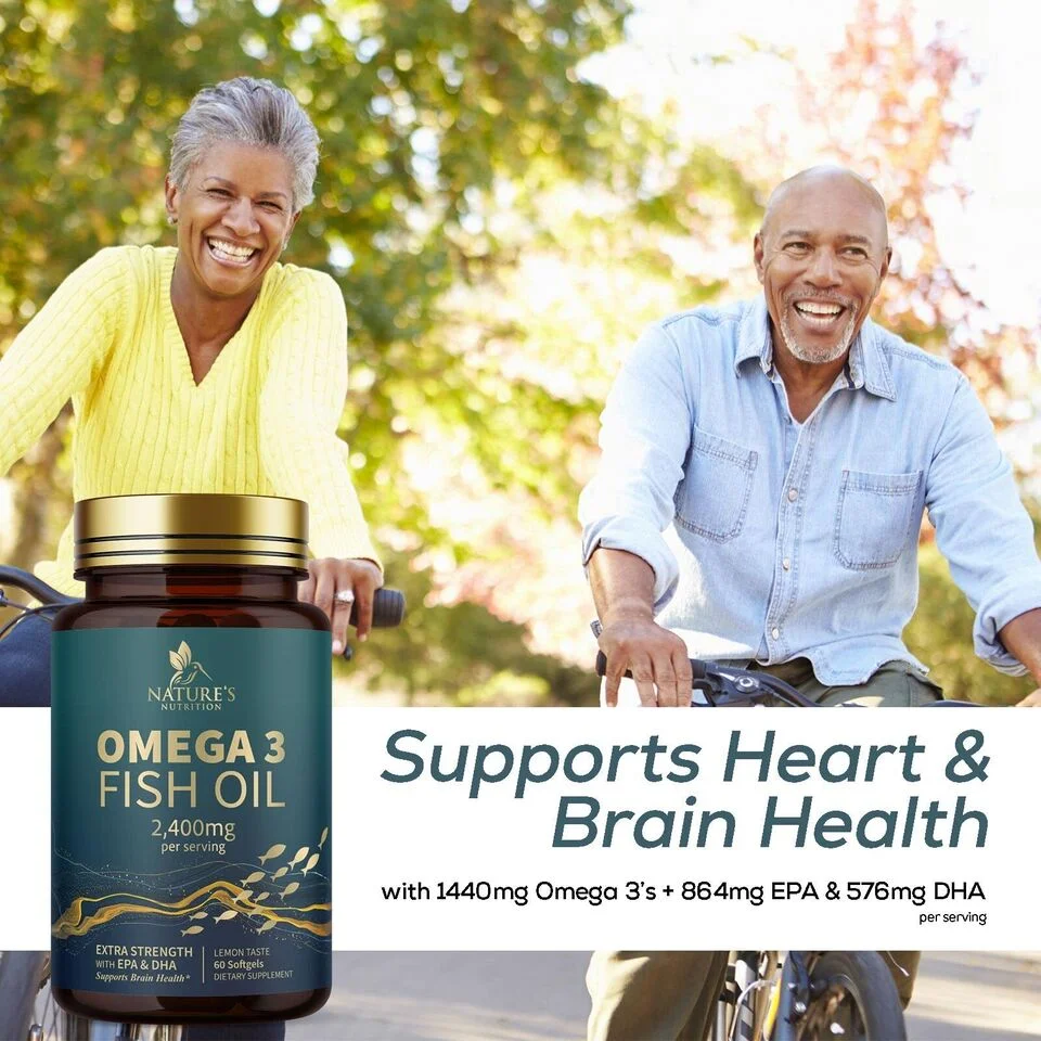 Omega 3 Fish Oil Capsules 3x Strength 2400mg EPA & DHA, Highest Potency - 60 Softgels
