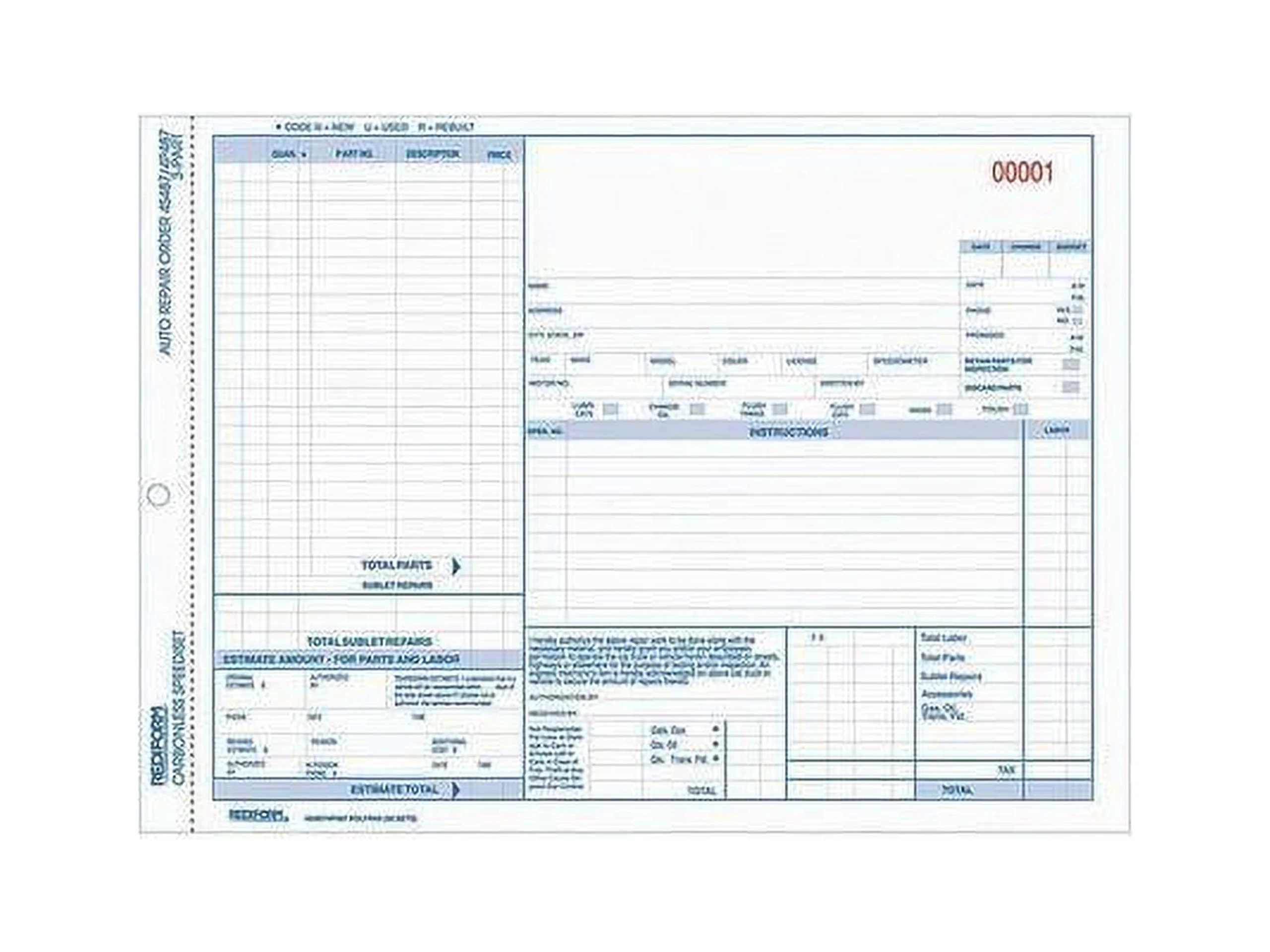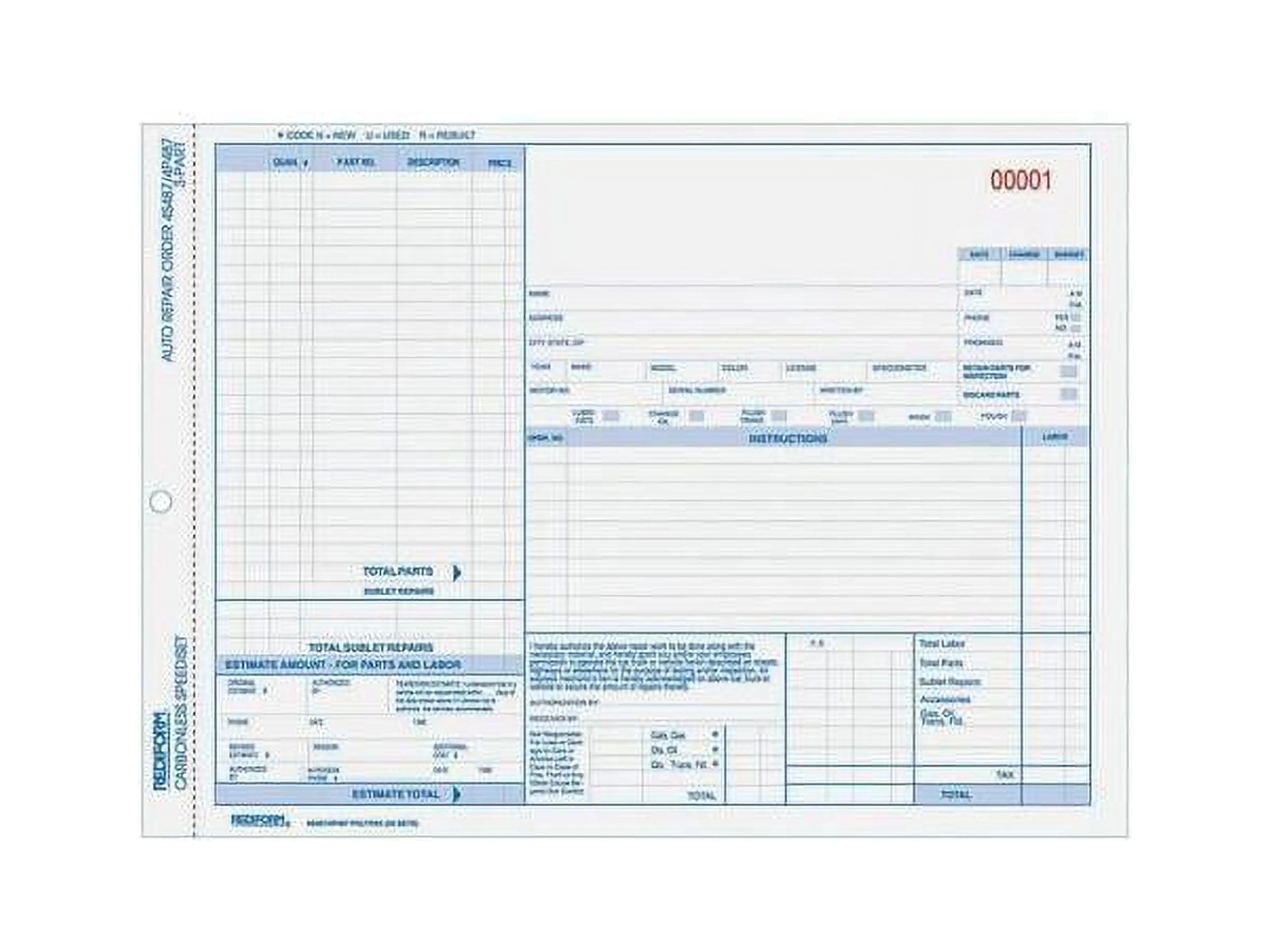 Rediform, RED4P487, 3-Part Auto Repair Order Forms, 50 / Pack