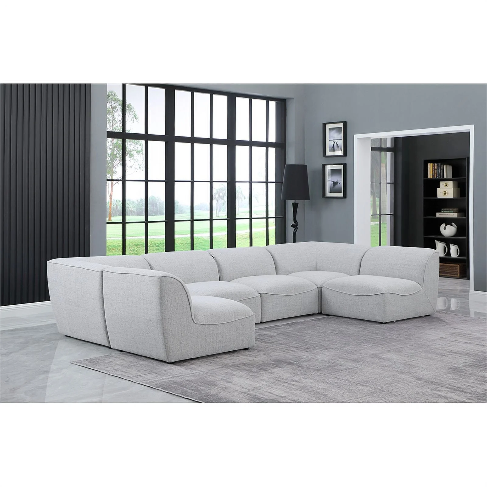 Meridian Furniture Miramar Grey Durable Linen Textured Modular Sectional
