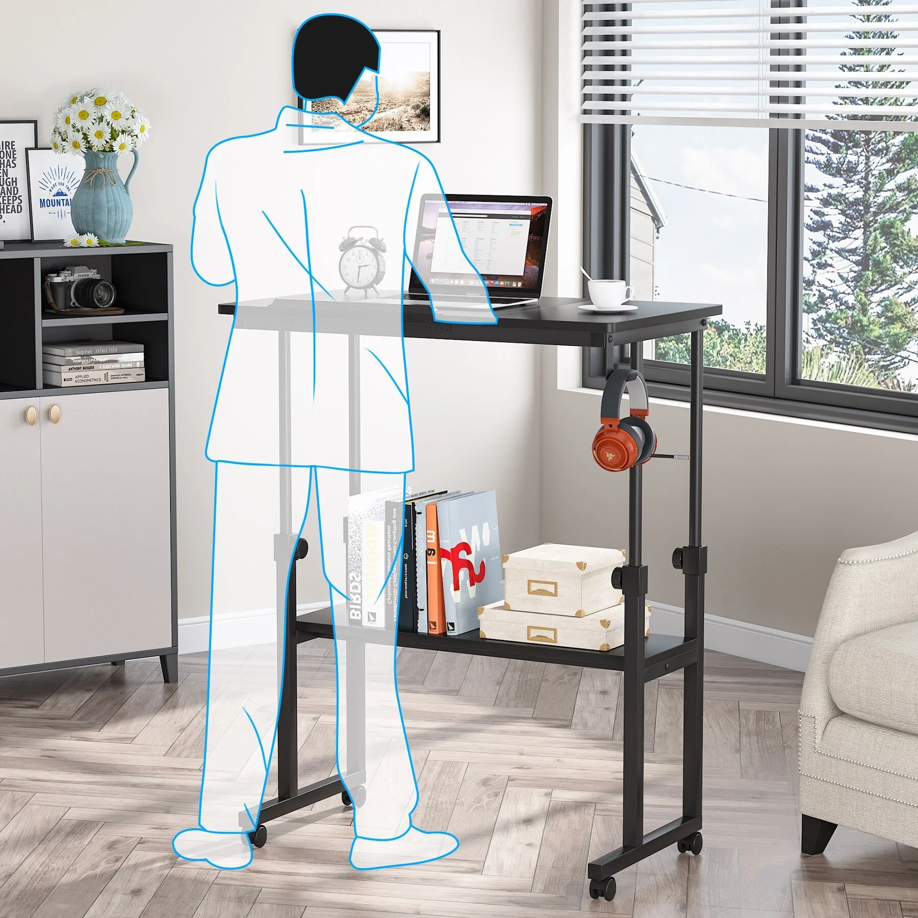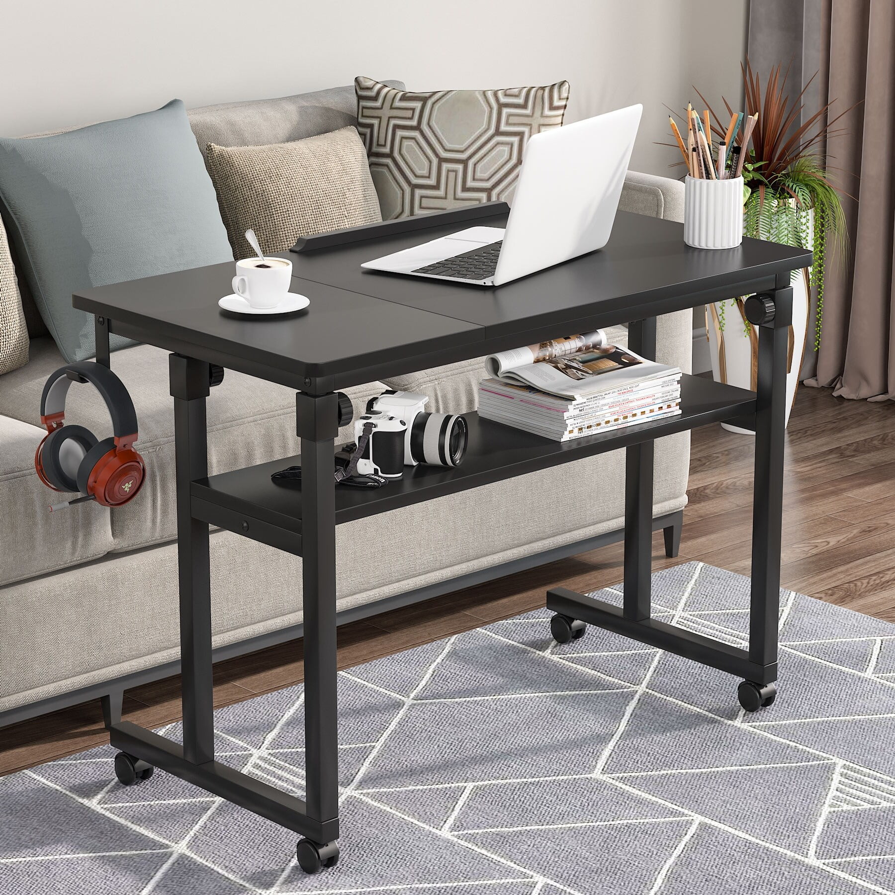 Height Adjustable Portable Desk for Sofa Bed, Standing Laptop Table with Wheels Brown