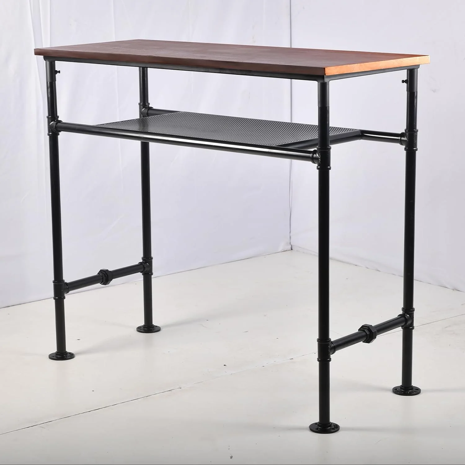 Industrial Rustic 41.3" Height Solid Pine Wood Top Rectangular Pub Bar Table Bar Height Kitchen Dining Room Table with Extra Shelf for Stroage Black