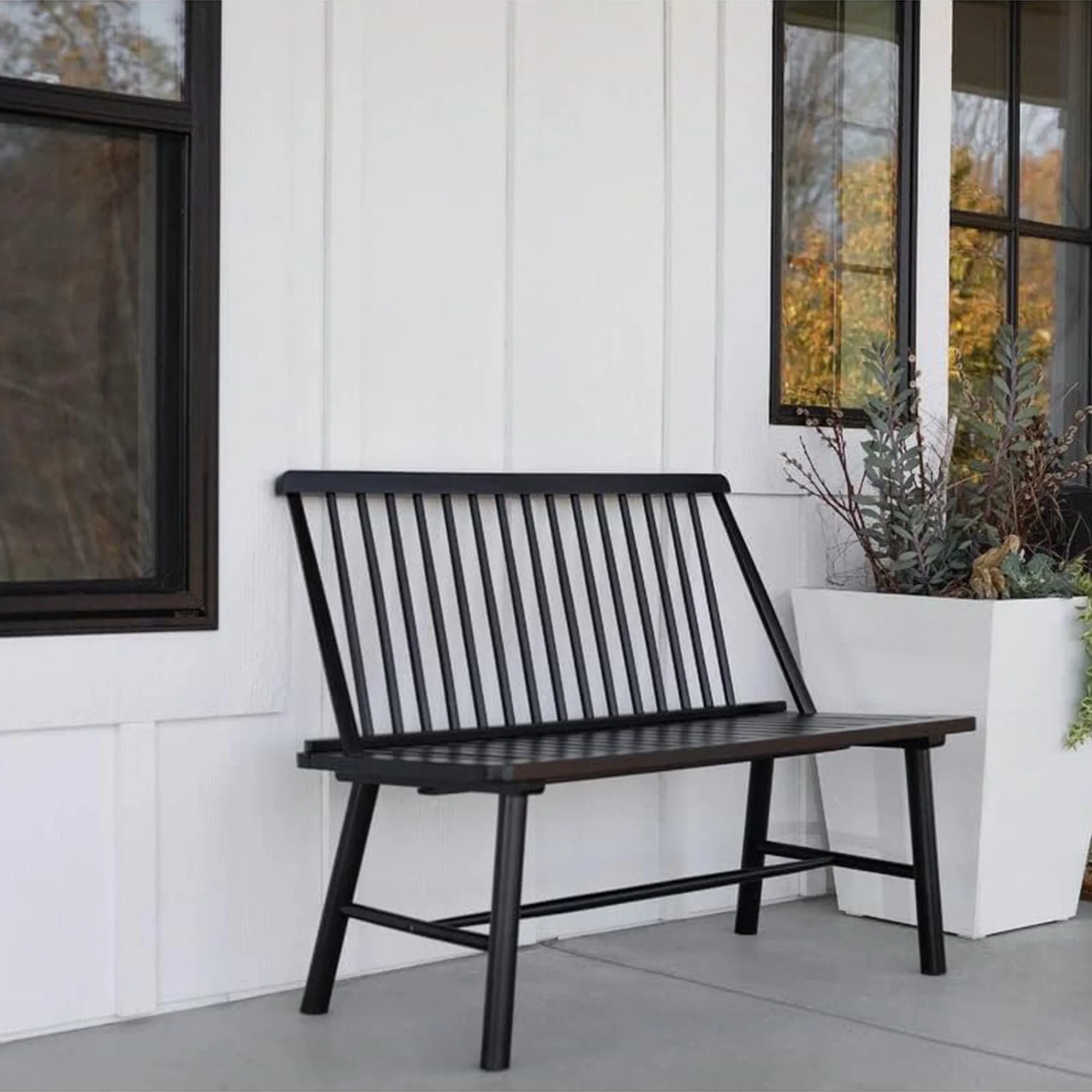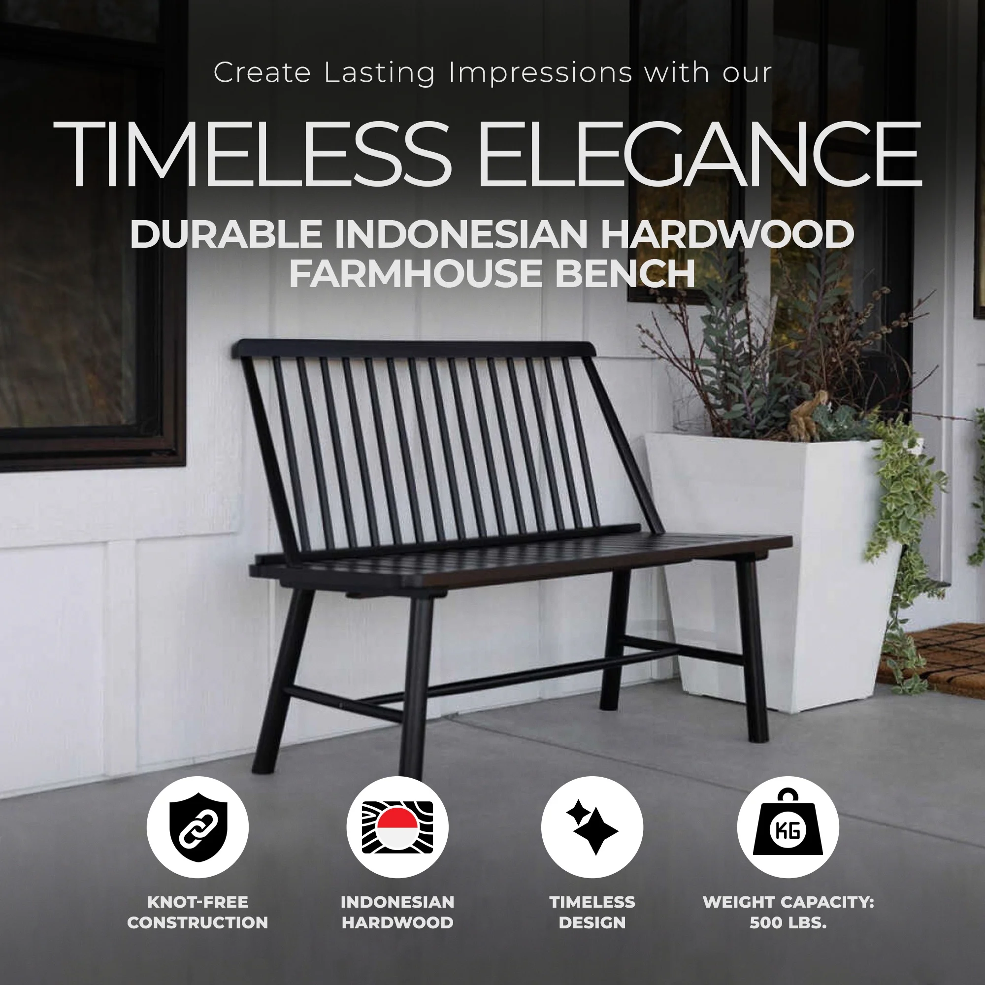 Jack Post Durable Indonesian Hardwood Farmhouse Bench for Patio, Black