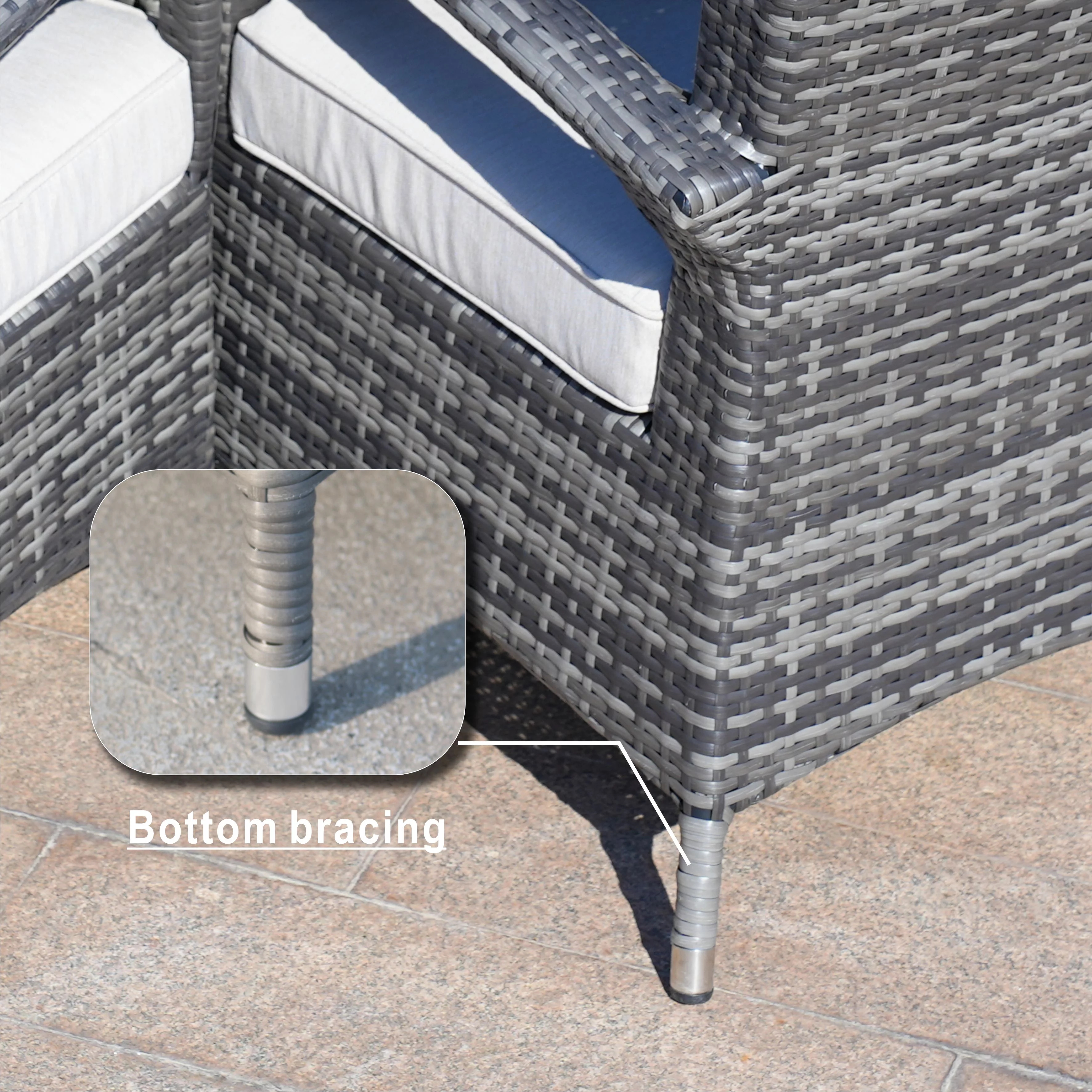 Direct Wicker 7 Piece Patio Dining Set with Rattan Chairs and Cushions, Grey