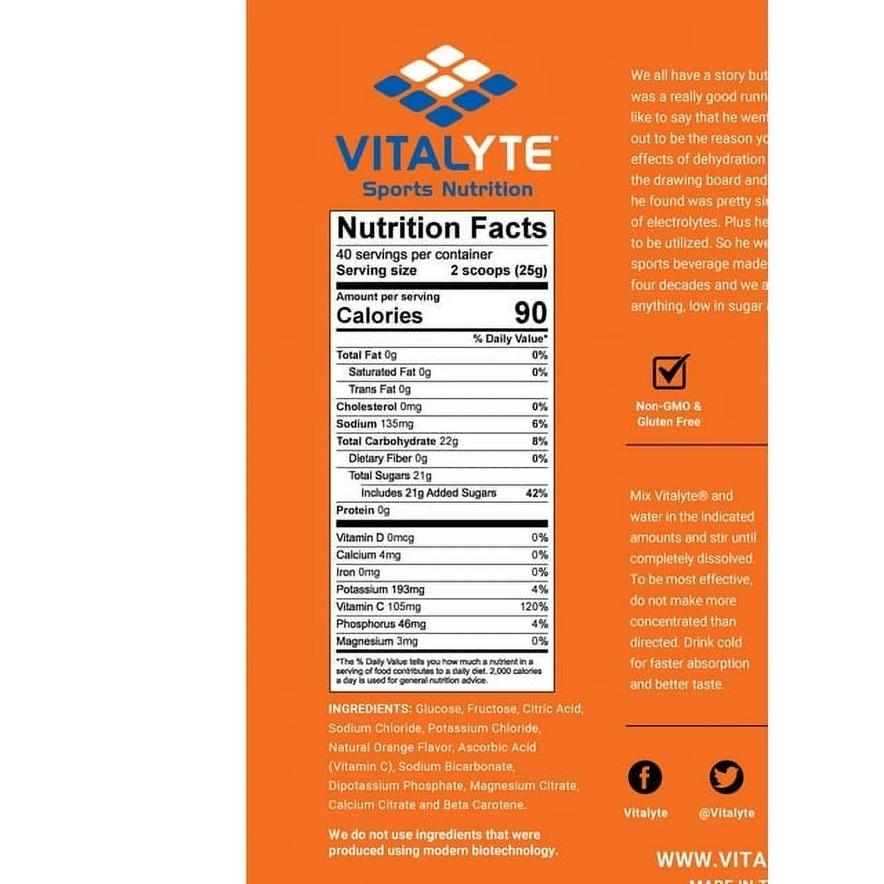 Vitalyte Electrolyte Replacement Powder Drink Mix, 160 16 Ounces per Serving (Orange)