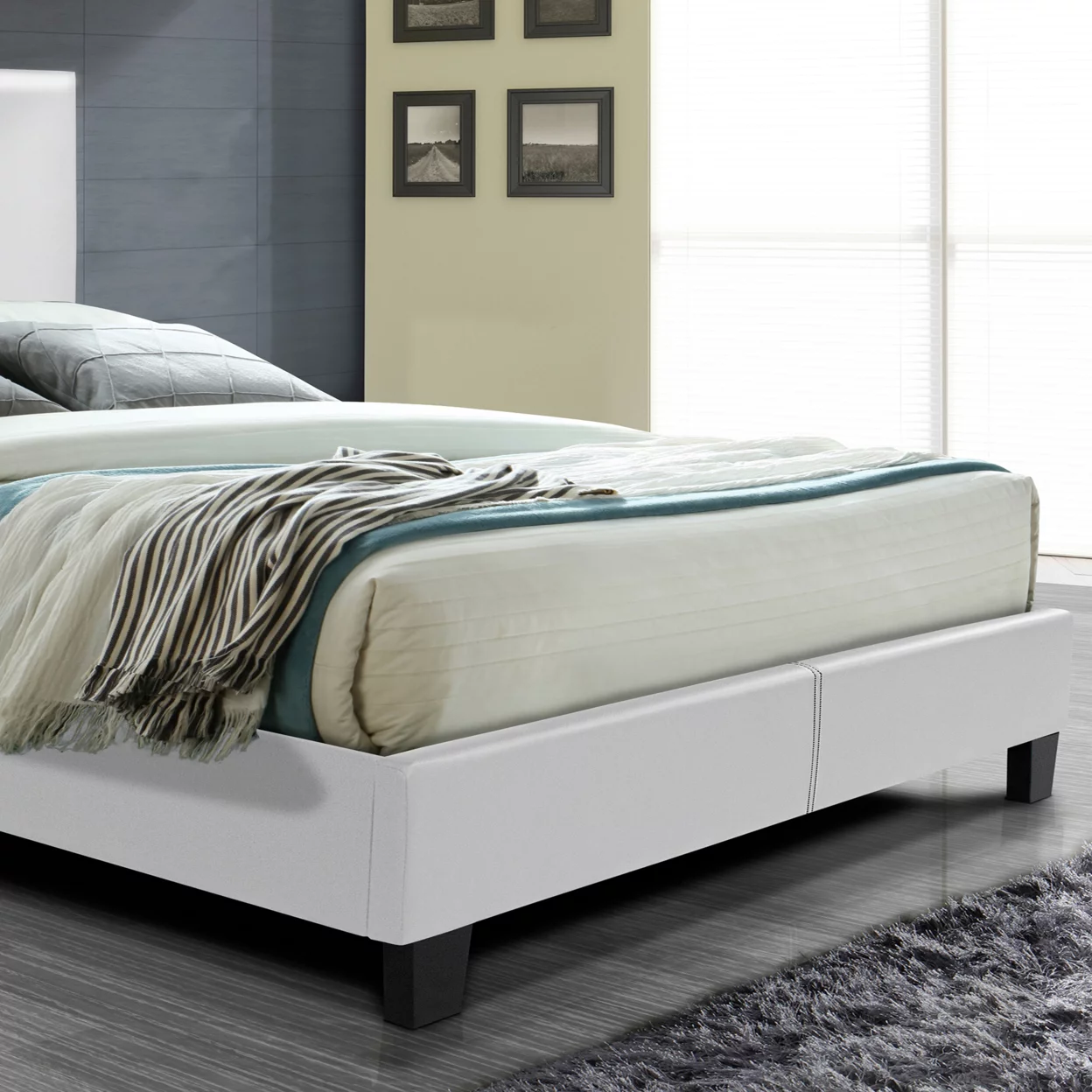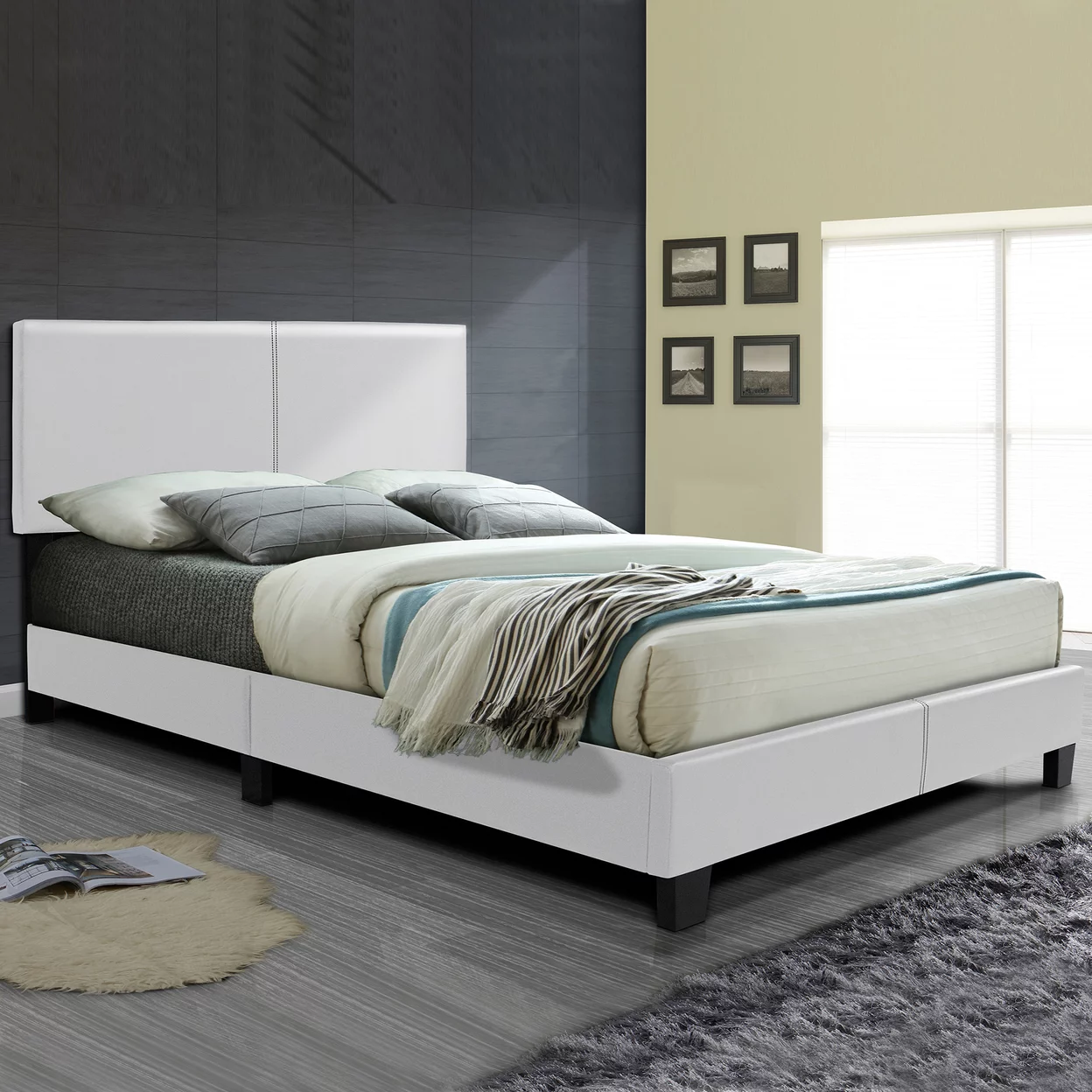 Home Bedroom Furniture Nora Faux Leather Upholstered Full Panel Bed - White