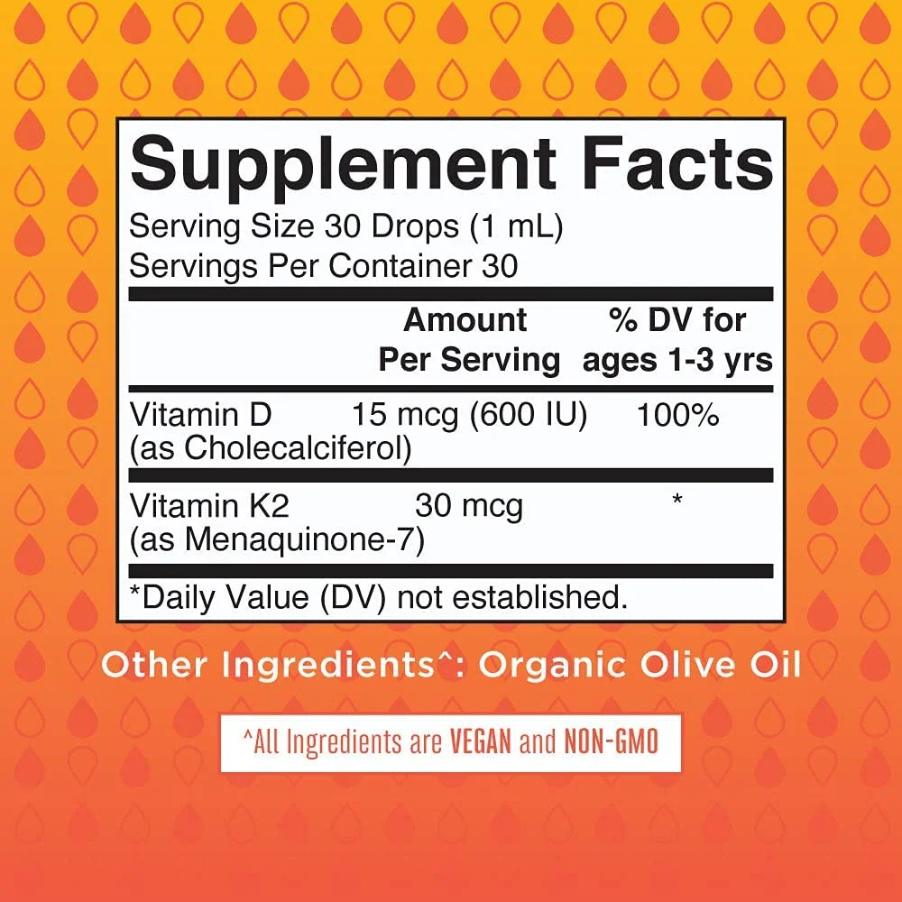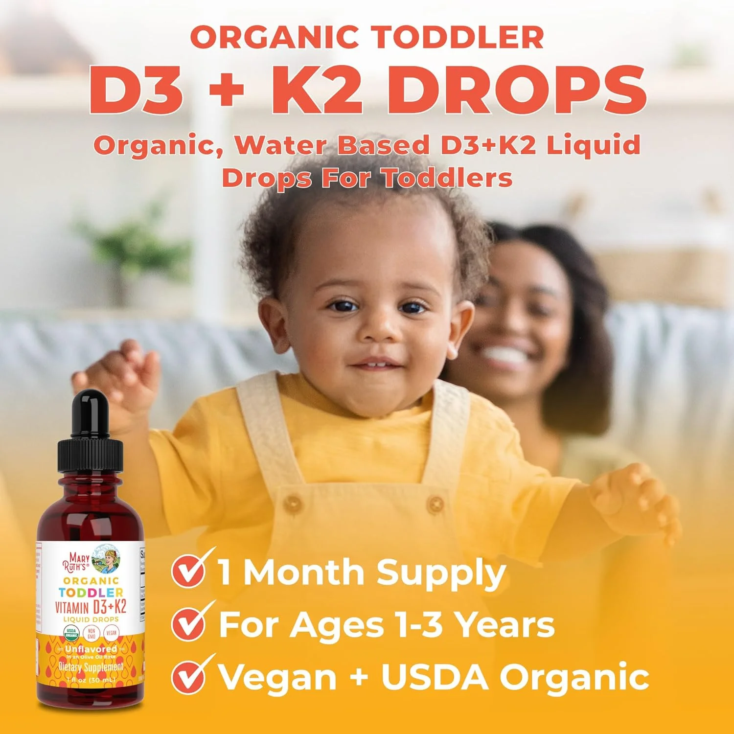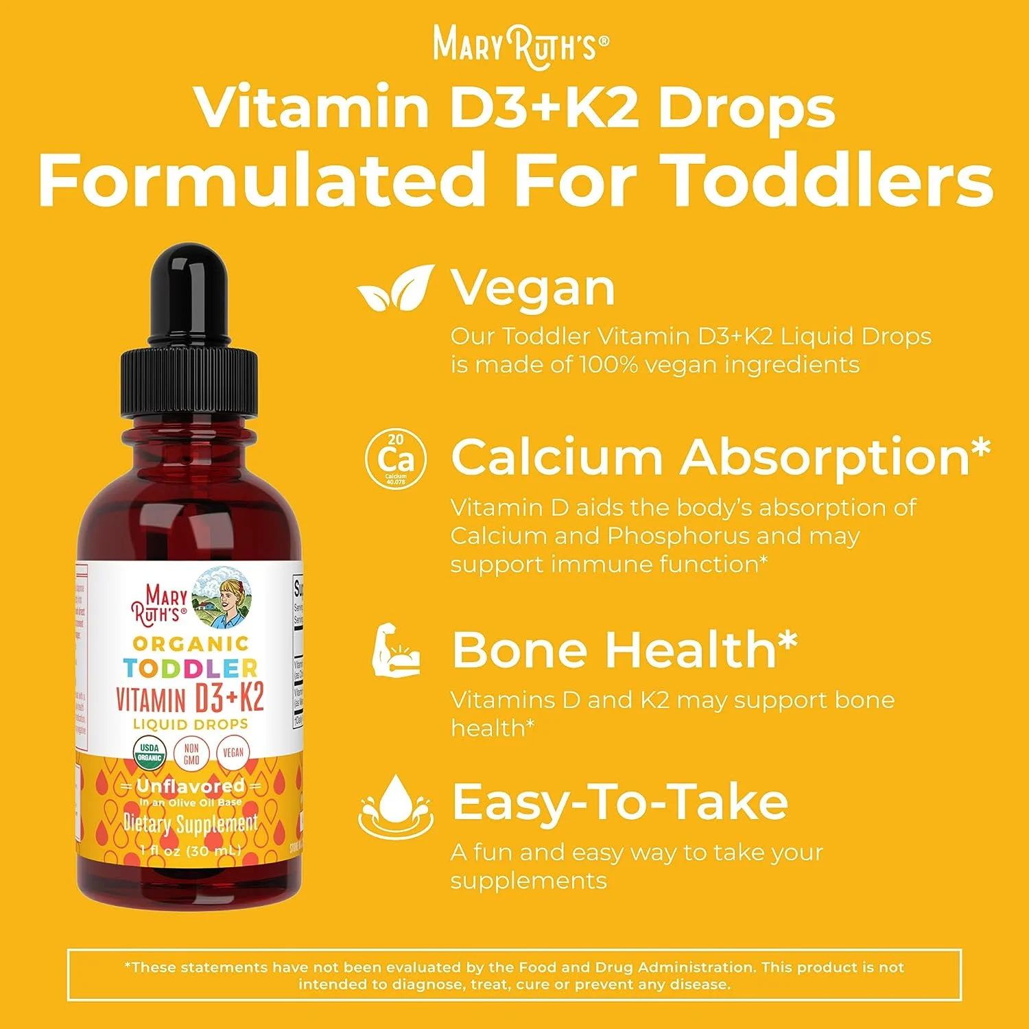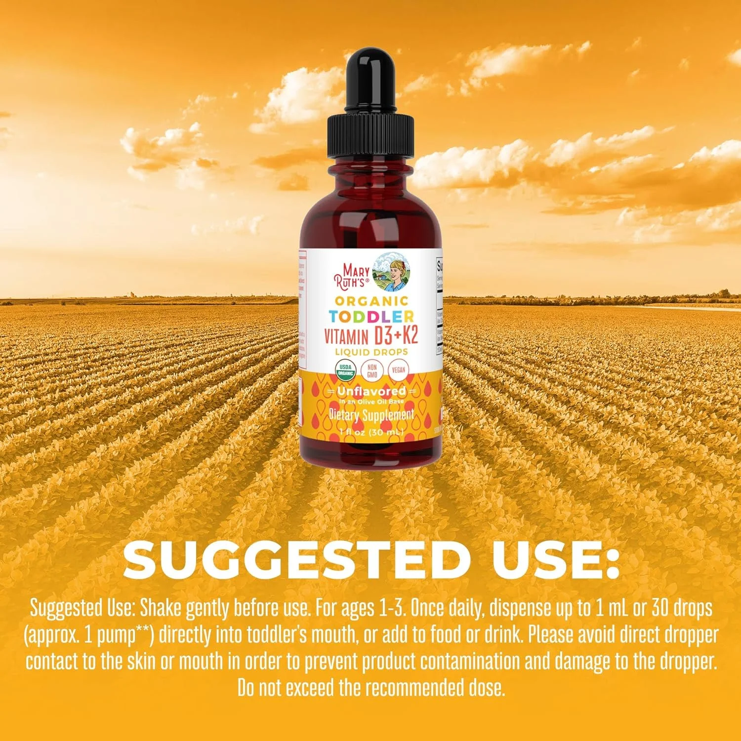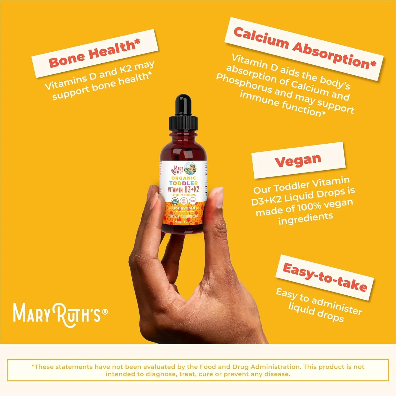 MaryRuth Organics | Vitamin D3+K2 Liquid Drops | Unflavored | Non-GMO, Vegan, Plant-Based | 1 fl oz | Unisex | Overall Wellness |