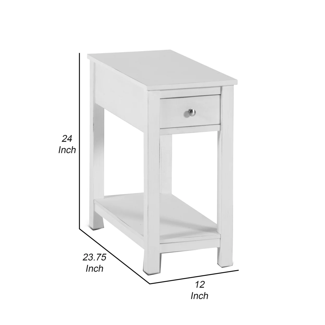 Nili 24 Inch Side End Table, Crisp White Finish, Single Drawer and Shelf- Saltoro Sherpi
