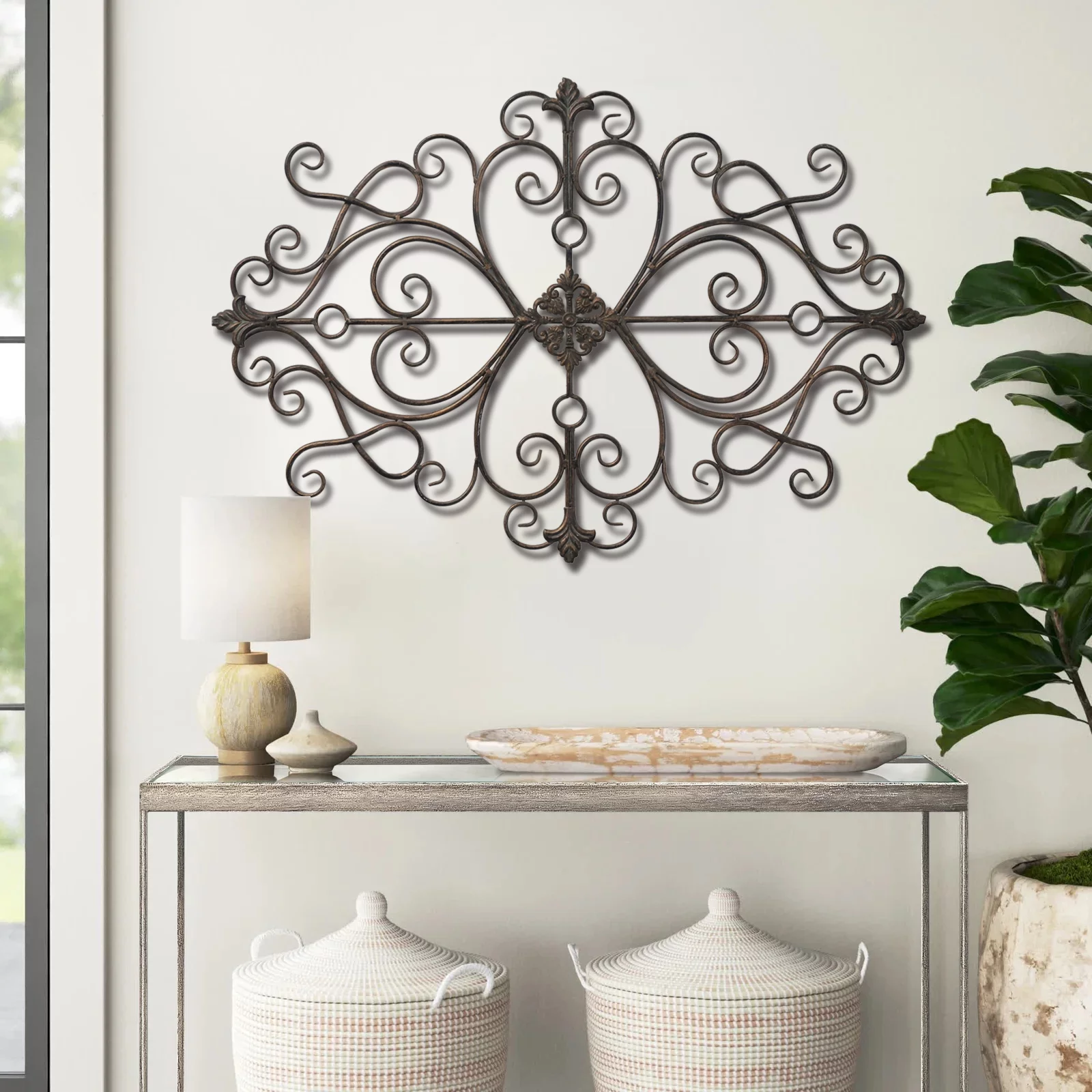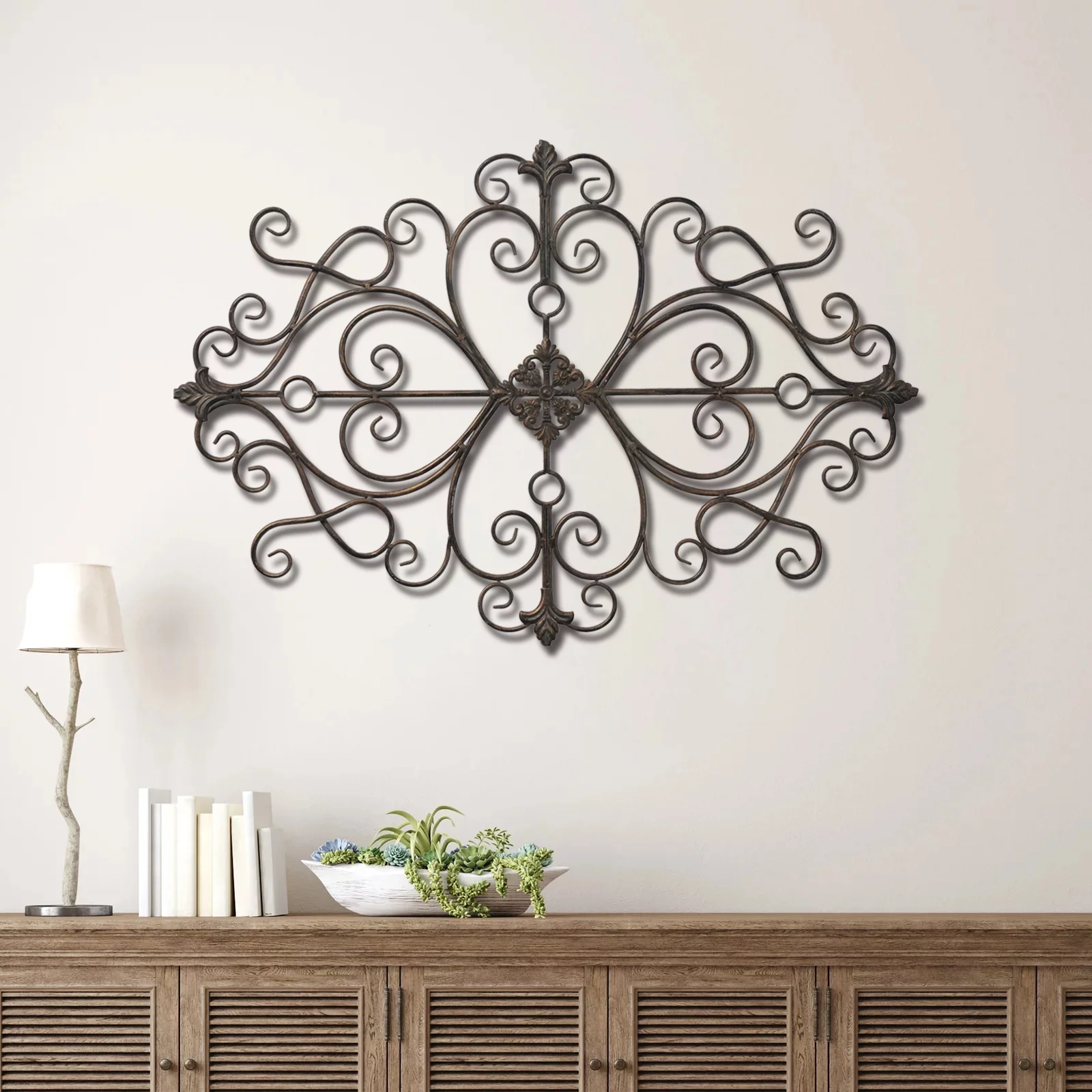 Sintosin Rustic Metal Wall Art Home Decor 36" x 24", Large Antique Wrought Iron Wall Decor, Hanging Traditional Scroll Wall Decor for Bedroom Living Room Fireplace Outdoor
