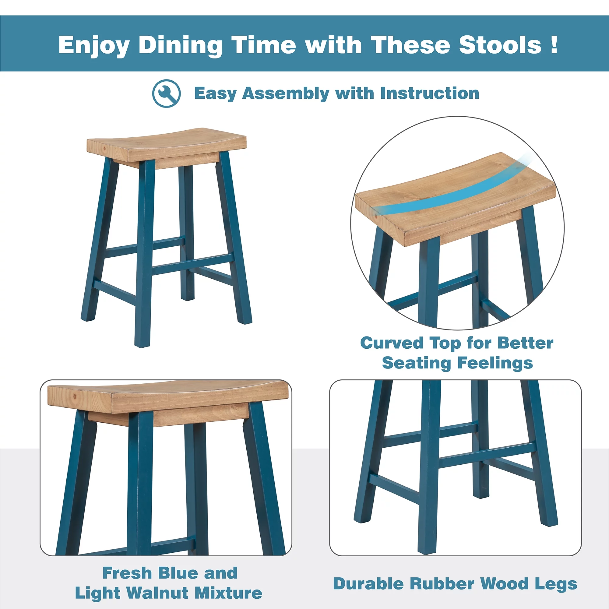 TOPMAX Farmhouse 3-piece Wood Stationary Kitchen Island Set with 2 Seatings, Dining Table Set with Shelves and Wine Rack for Small Places,Blue Frame+White Top