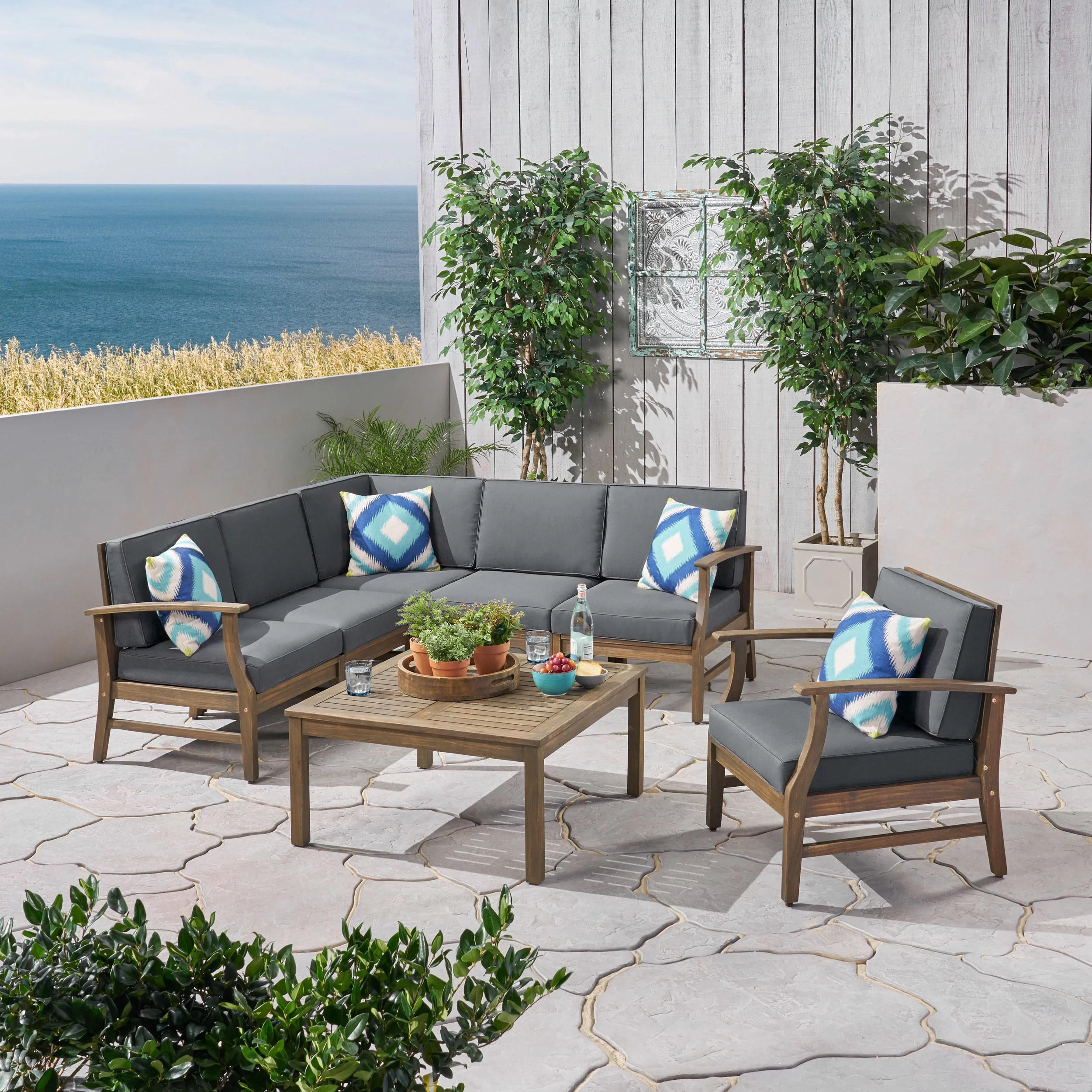 Capri Outdoor 7 Piece Teak Finished Acacia Wood Sofa Set