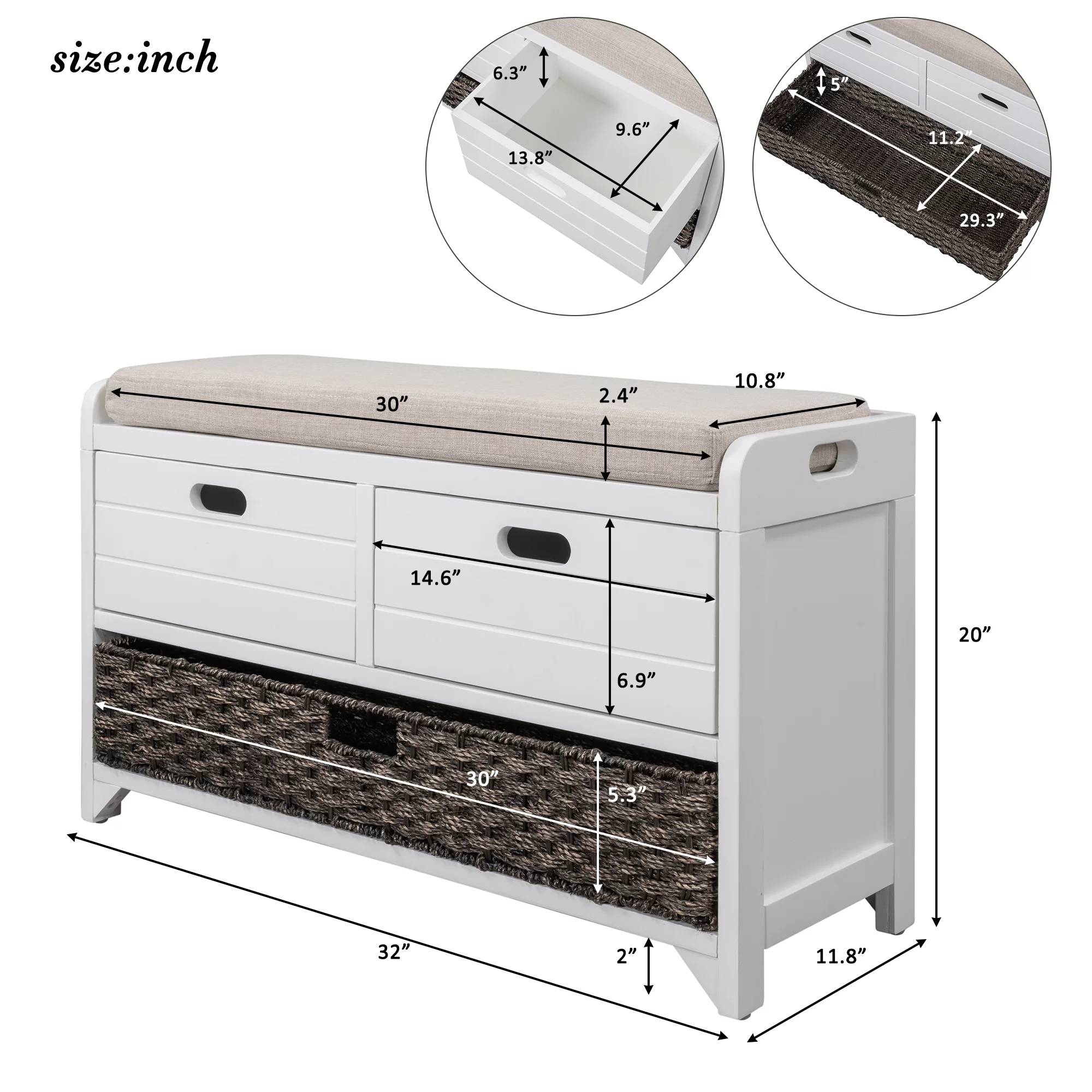 Nestfair White Storage Bench Entryway Bench with Removable Basket and 2 Drawers
