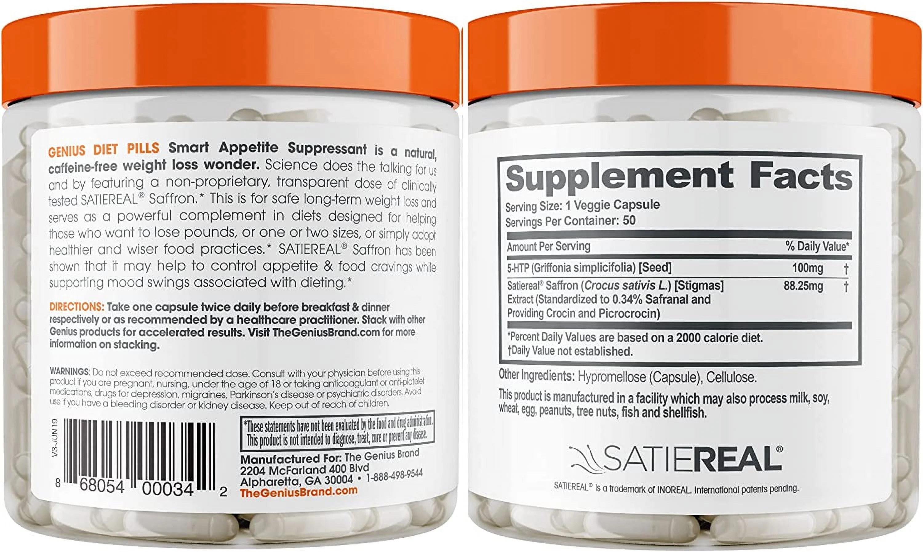 Diet Pill Appetite Suppressant for Weight Loss Fat Burner Thermogenic Supplement, Genius Diet Pills by the Genius Brand