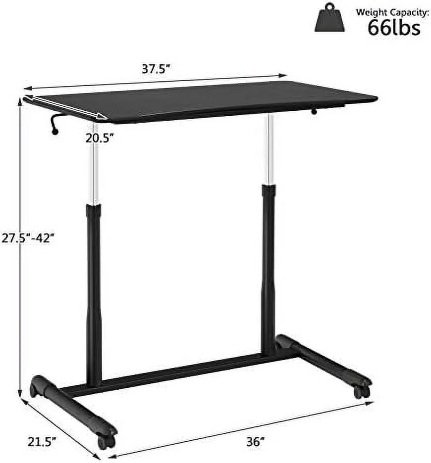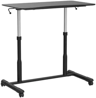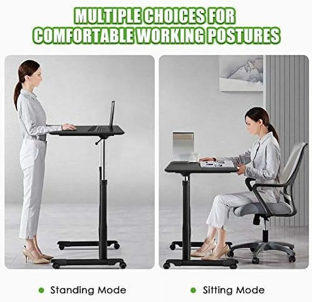 RUNFAYBIU Mobile Standing Desk Computer Desk Height Adjustable Stand Up Desk with 4 Wheels Rolling Compact Standing Desk with Steel Frame MDF PVC Tabletop Ideal for Home Office (Black