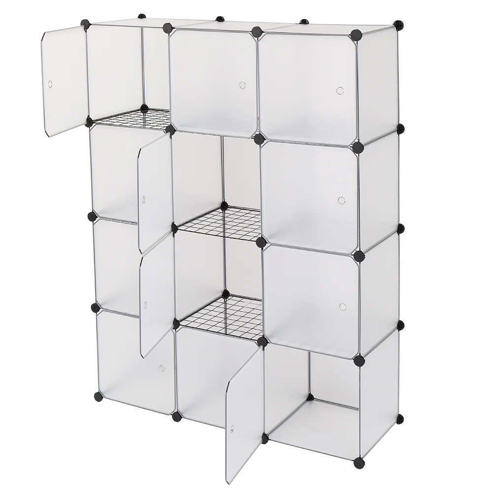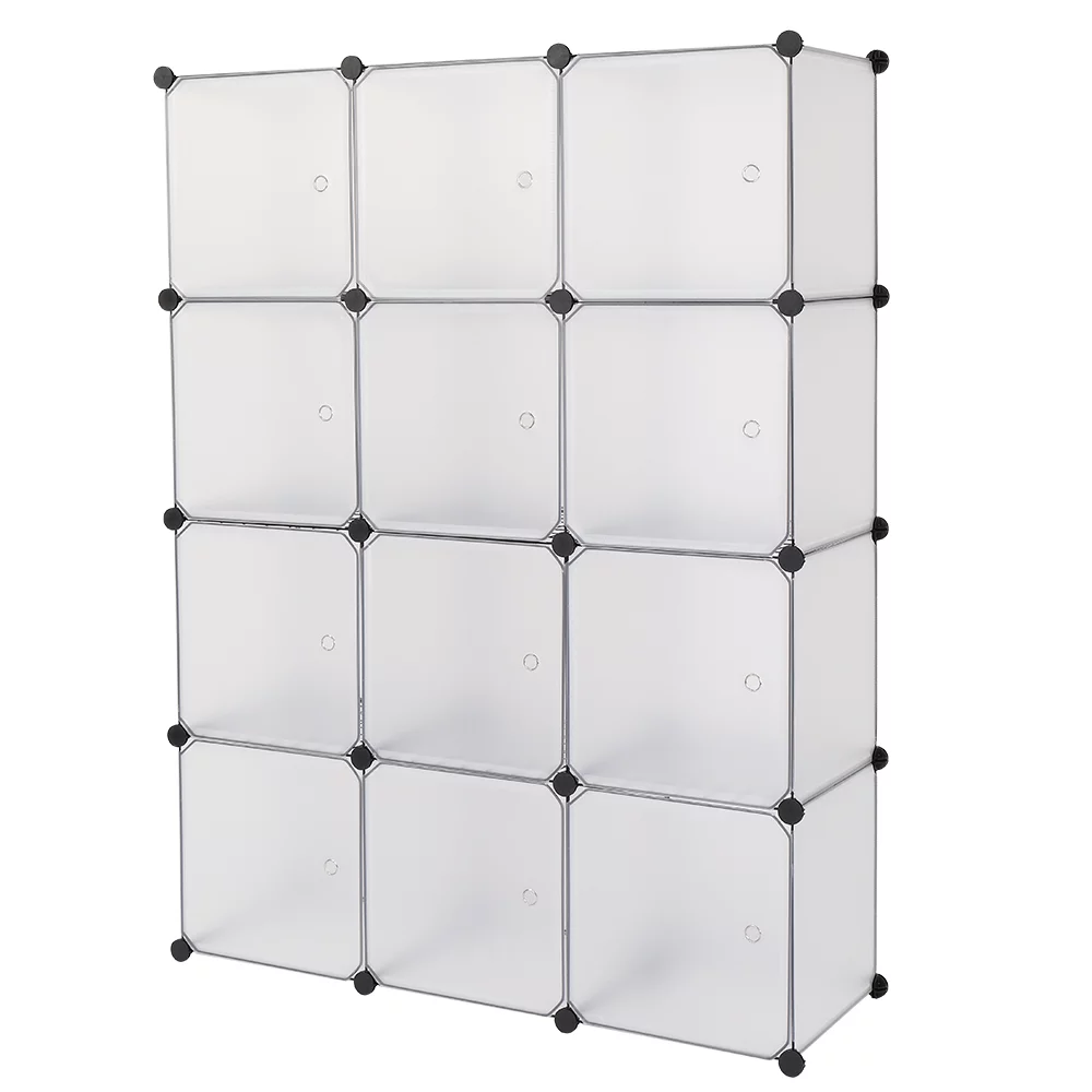 Cube Storage 12-Cube Bookshelf Closet Organizer Storage Shelves Shelf Cubes Organizer Plastic Book Shelf Bookcase DIY Square Closet Cabinet Shelves for Bedroom Office Living Room, White