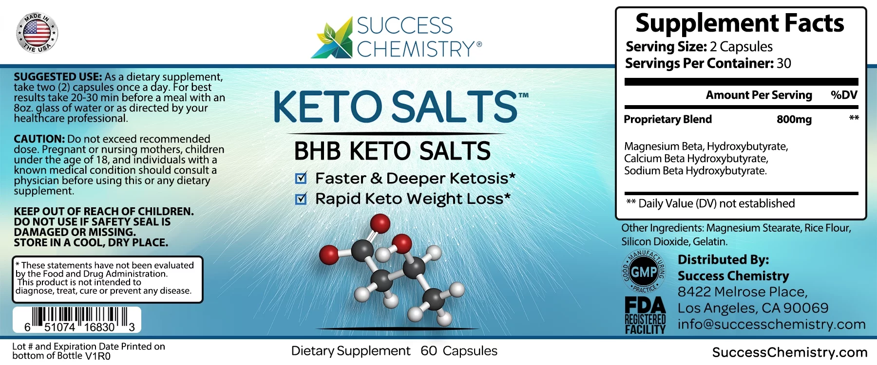 BHB Keto Salts by Success Chemistry®. Keto Core with Minerals. Supplement Increases Energy for Low Carb. Paleo, Ketogenic, Fights Hunger, Fat Burner. Keto Weight-Loss