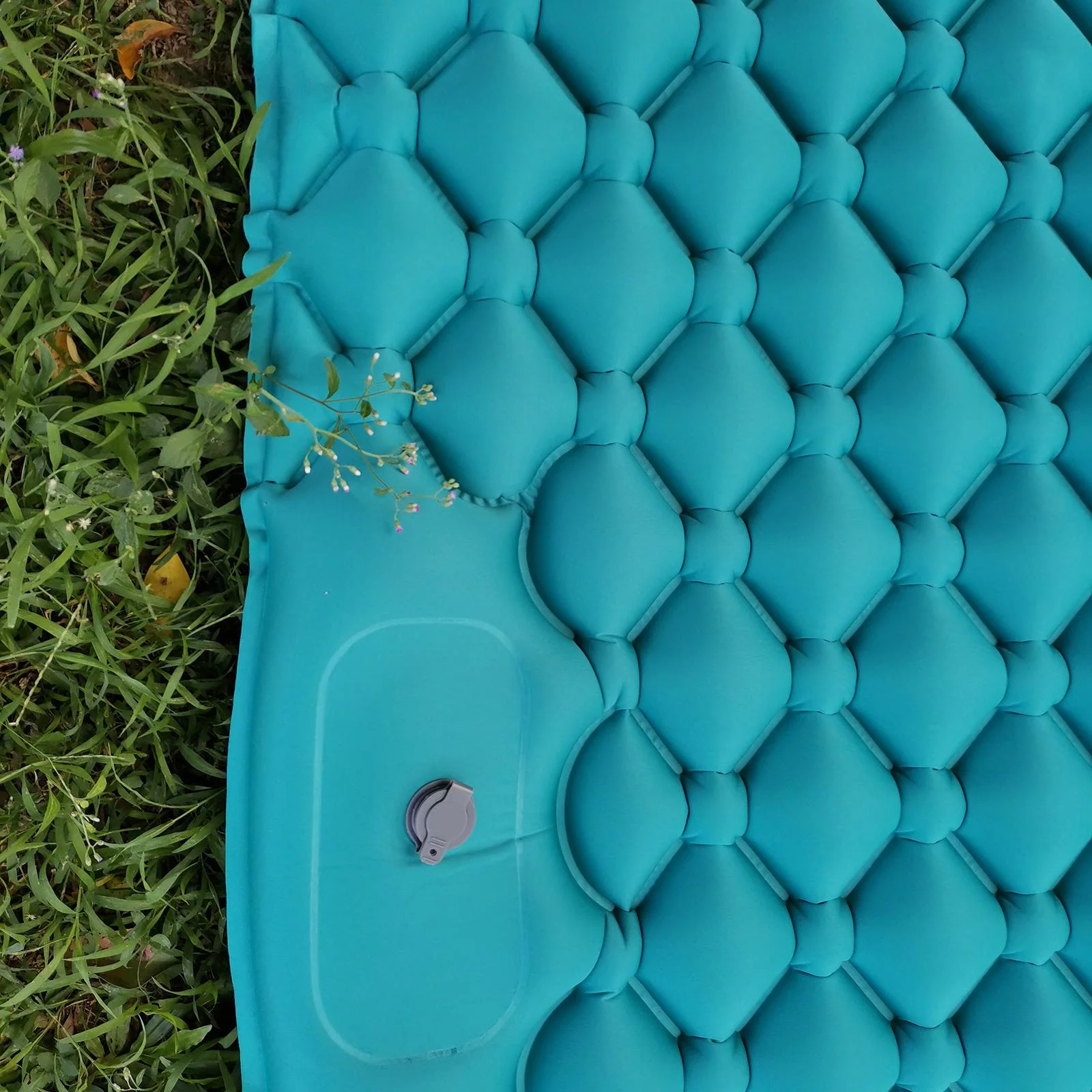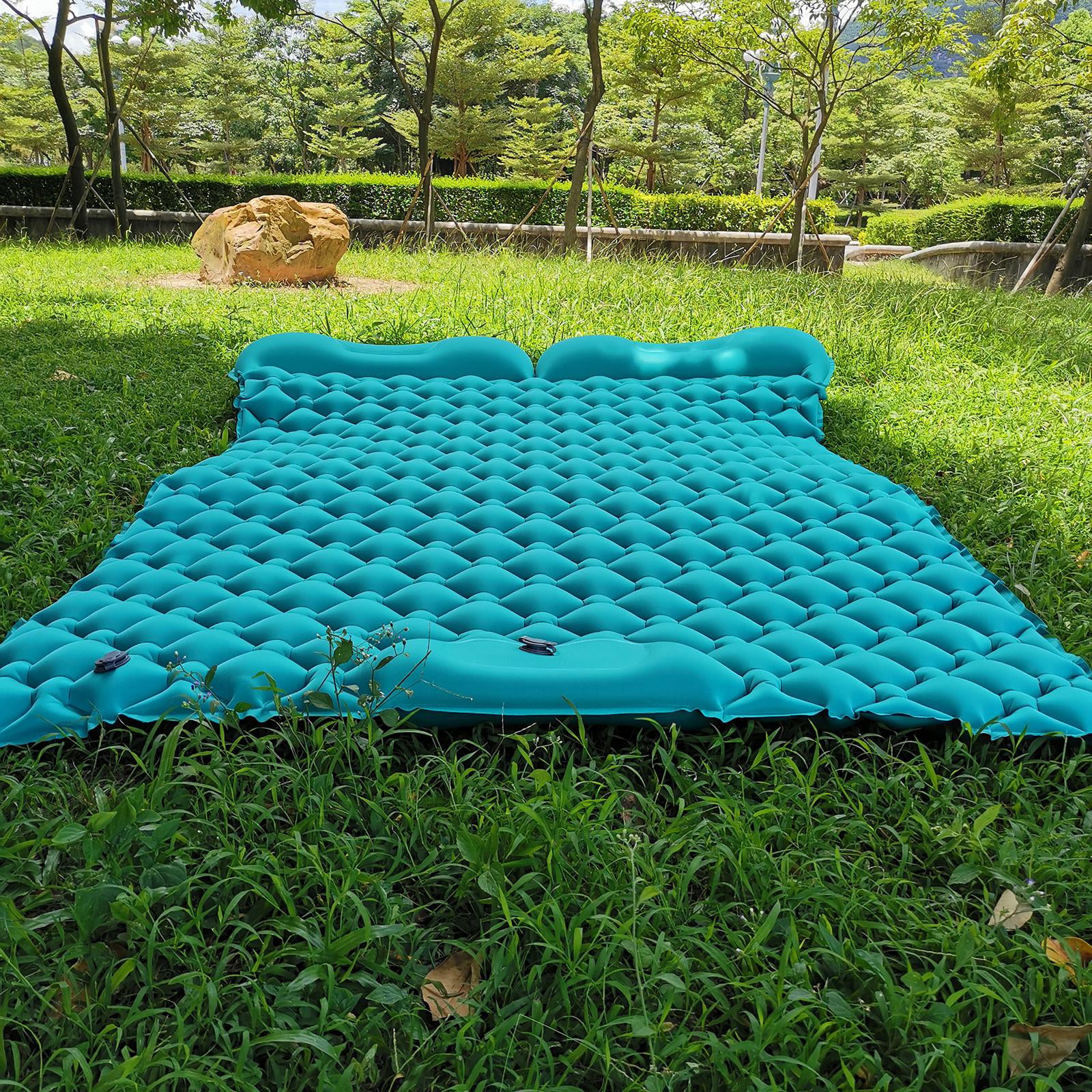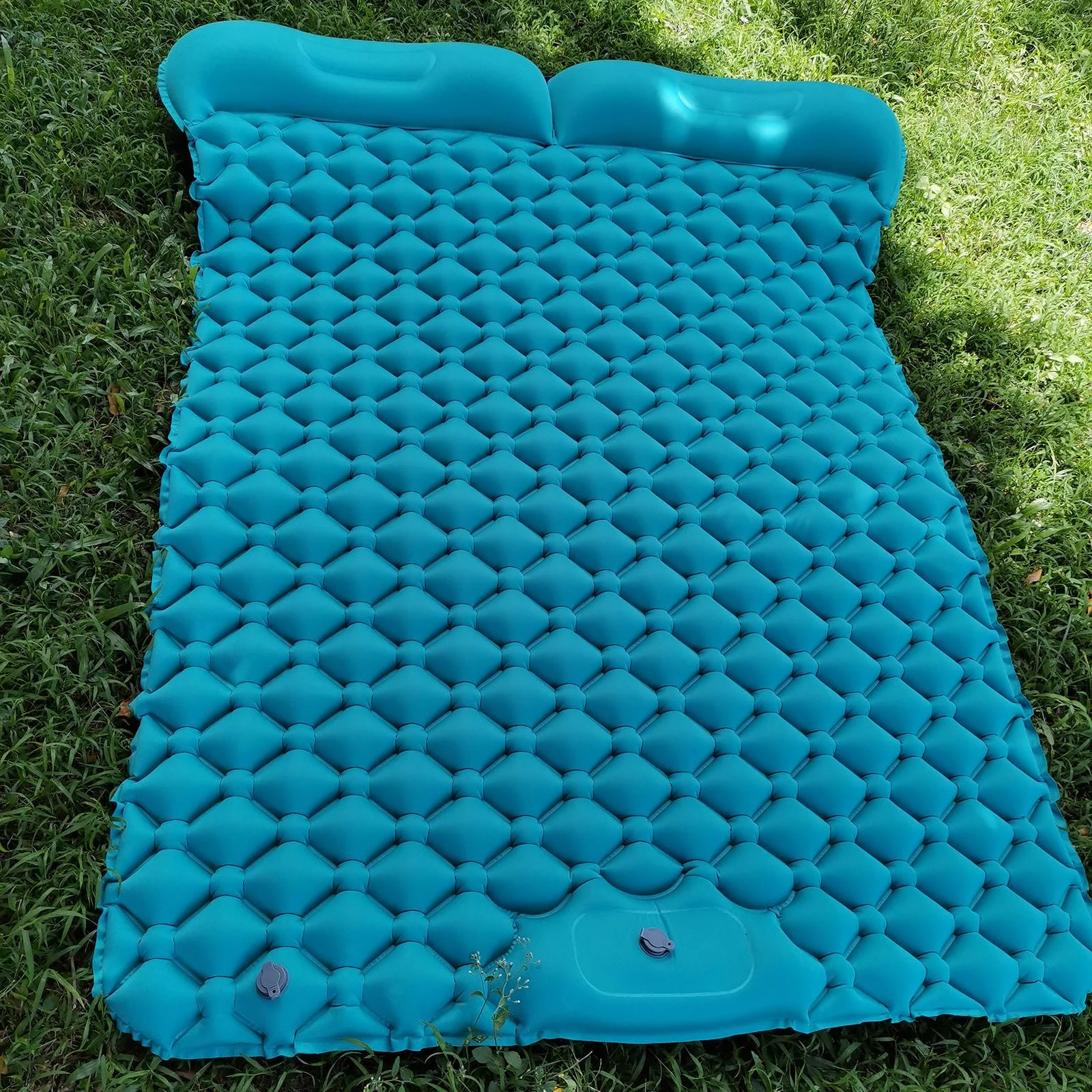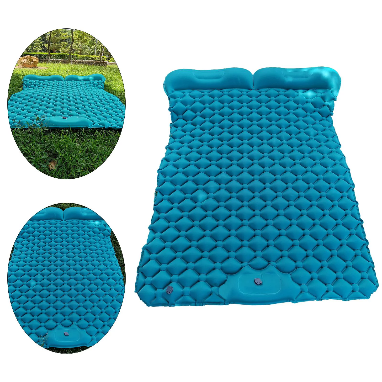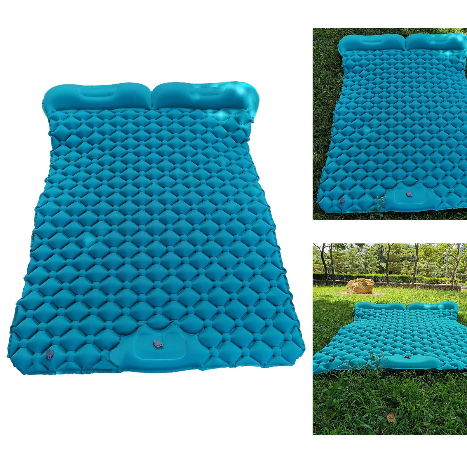 Portable Inflatable 2 Person Camping Sleeping Pad Bed Cushion Double Air Mattress with Pillow for Hiking Self-Driving Tour Sleep Equipment - Blue, 198X120X6cm