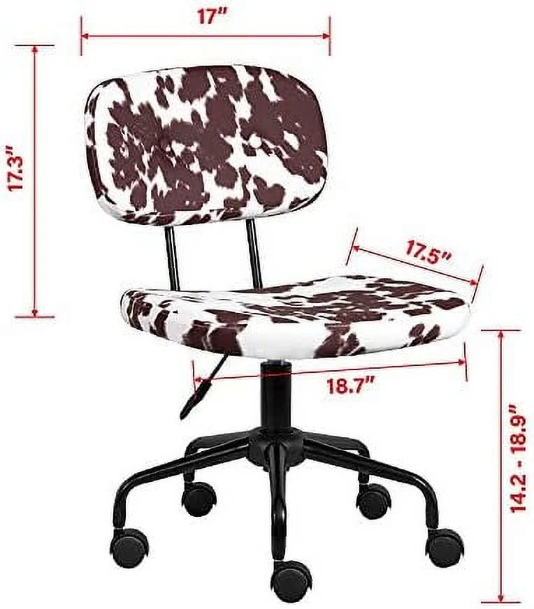 NLIBOOMLife Plush Fabric Cow Office Chair Cute Animal Print Task Chair Industrial Retro Looking Adjustable Height and Swivel Back with Arms
