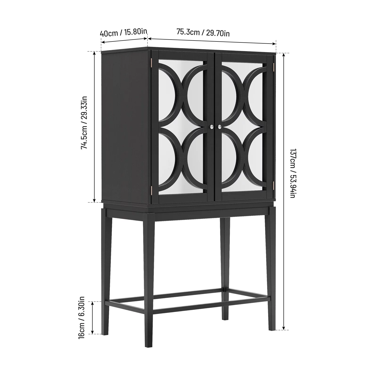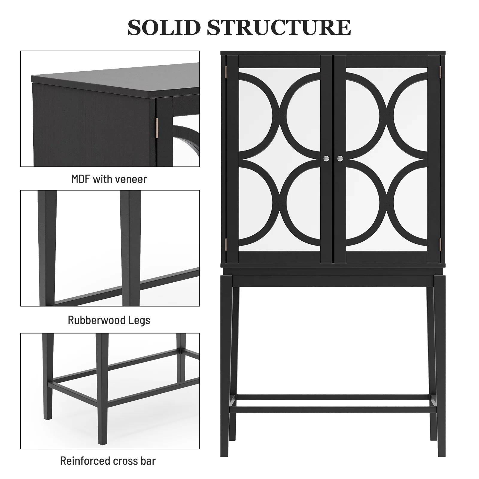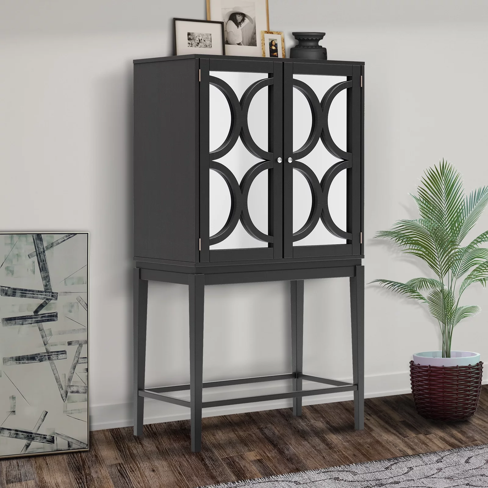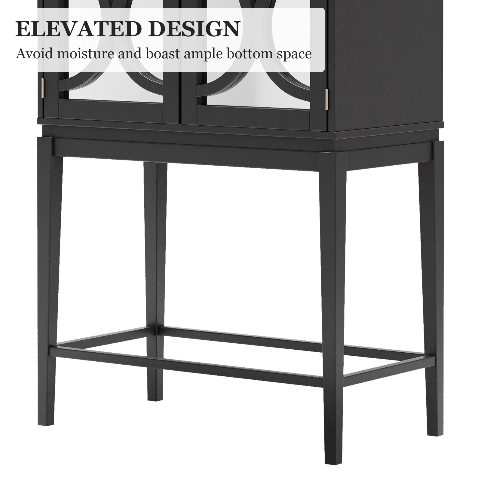 Docooler Cabinet Solid Rubber Wood Rack Double Mirror Door Bar Cabinet Kitchen Organizer with Glass Holder Sideboard for Dining Room