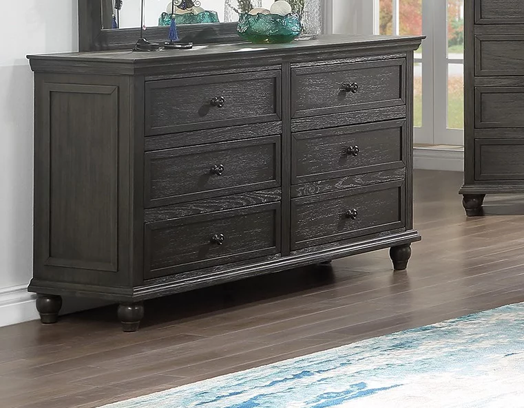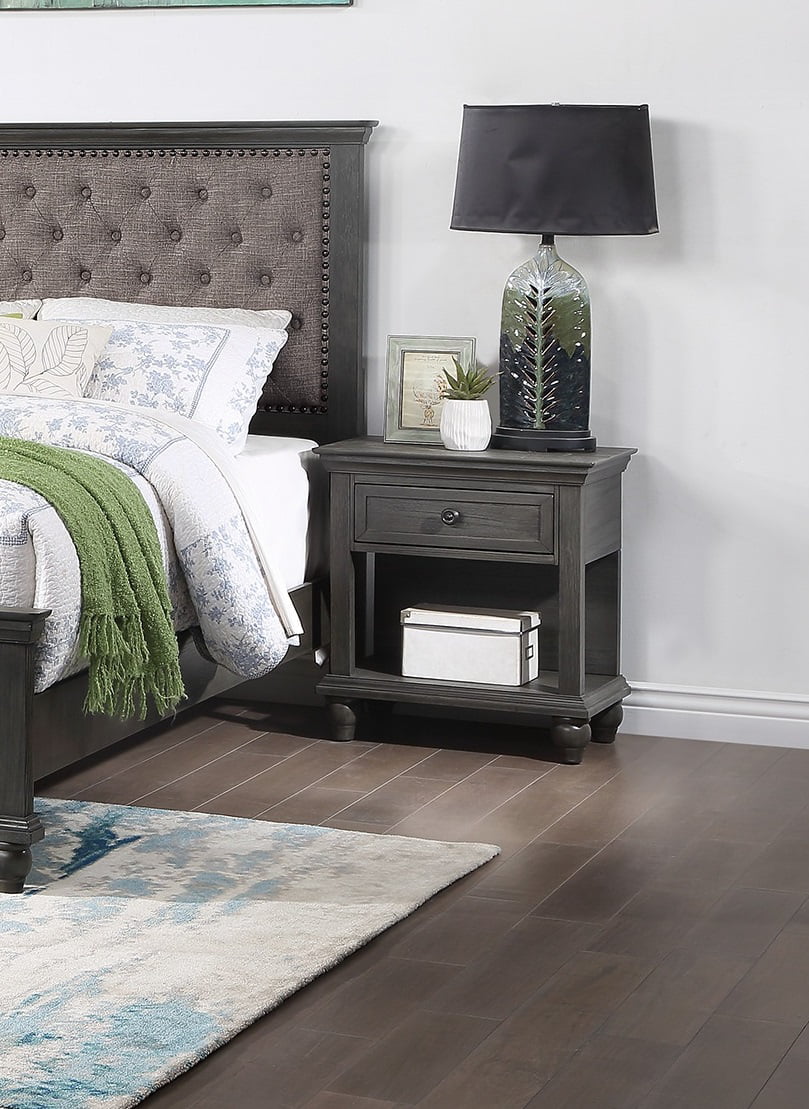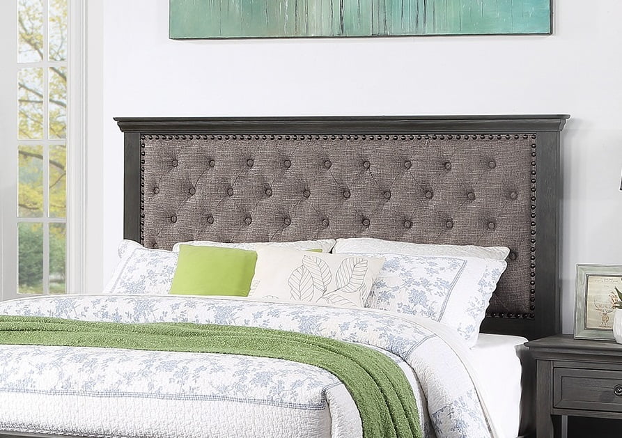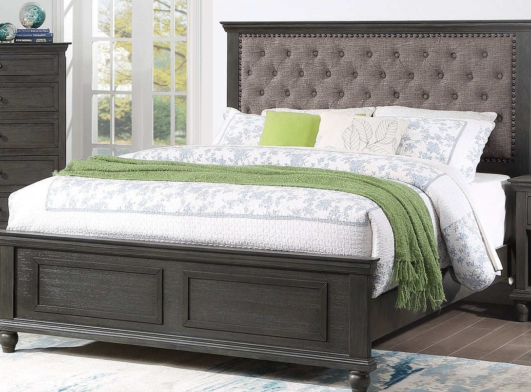 Transitional Style Bedroom Gray Finish 4pc Bedroom Set Eastern King Size Bed Dresser Mirror Nightstand Furniture