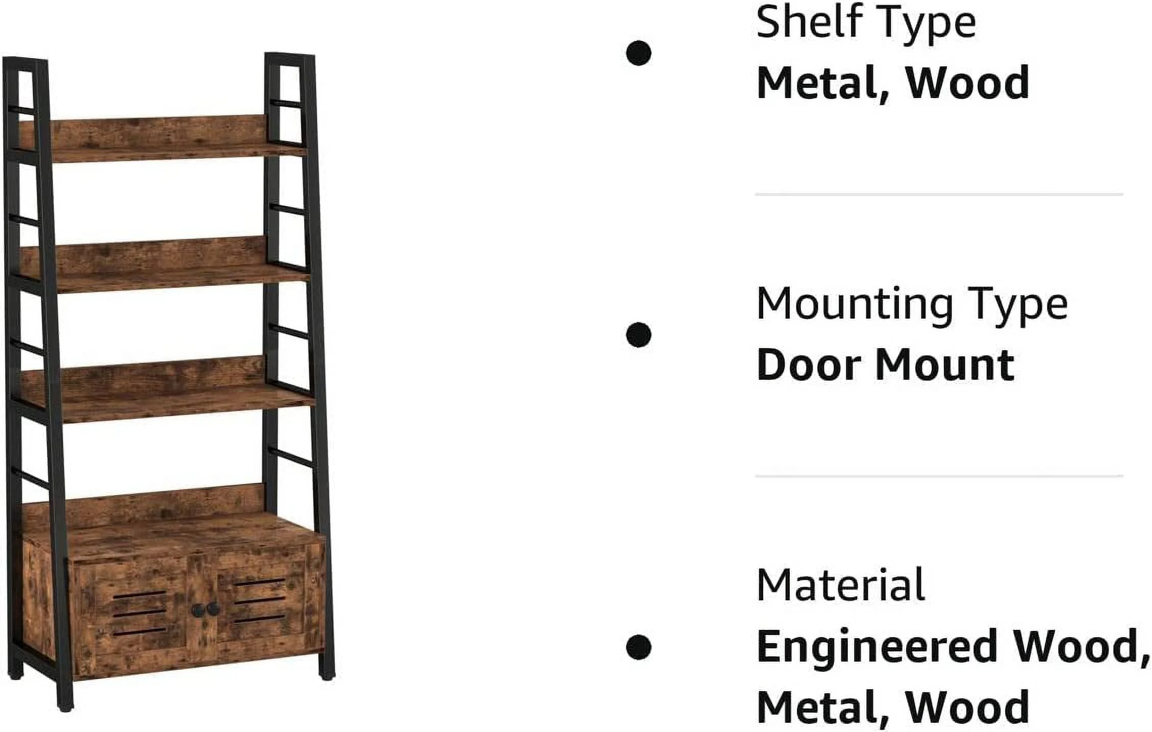 salable IRONCK Bookshelf with Louvered Doors 3-Tier Ladder Shelf with Cabinet Industrial Accent Furniture for Bedroom Living Room Home Office Rustic Brown