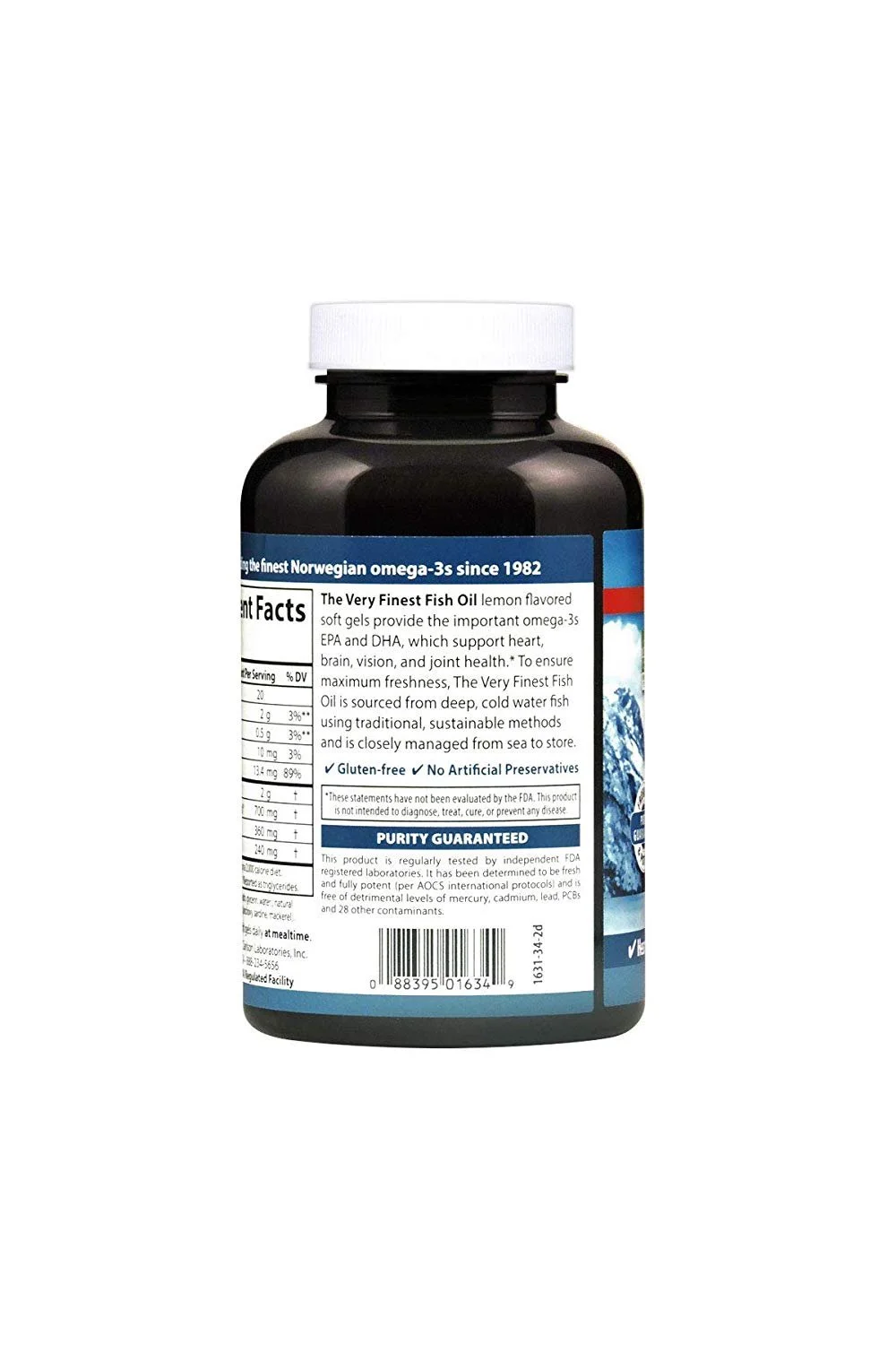 Carlson The Very Finest Fish Oil Softgels, Lemon Flavor, 120 + 30 Ct