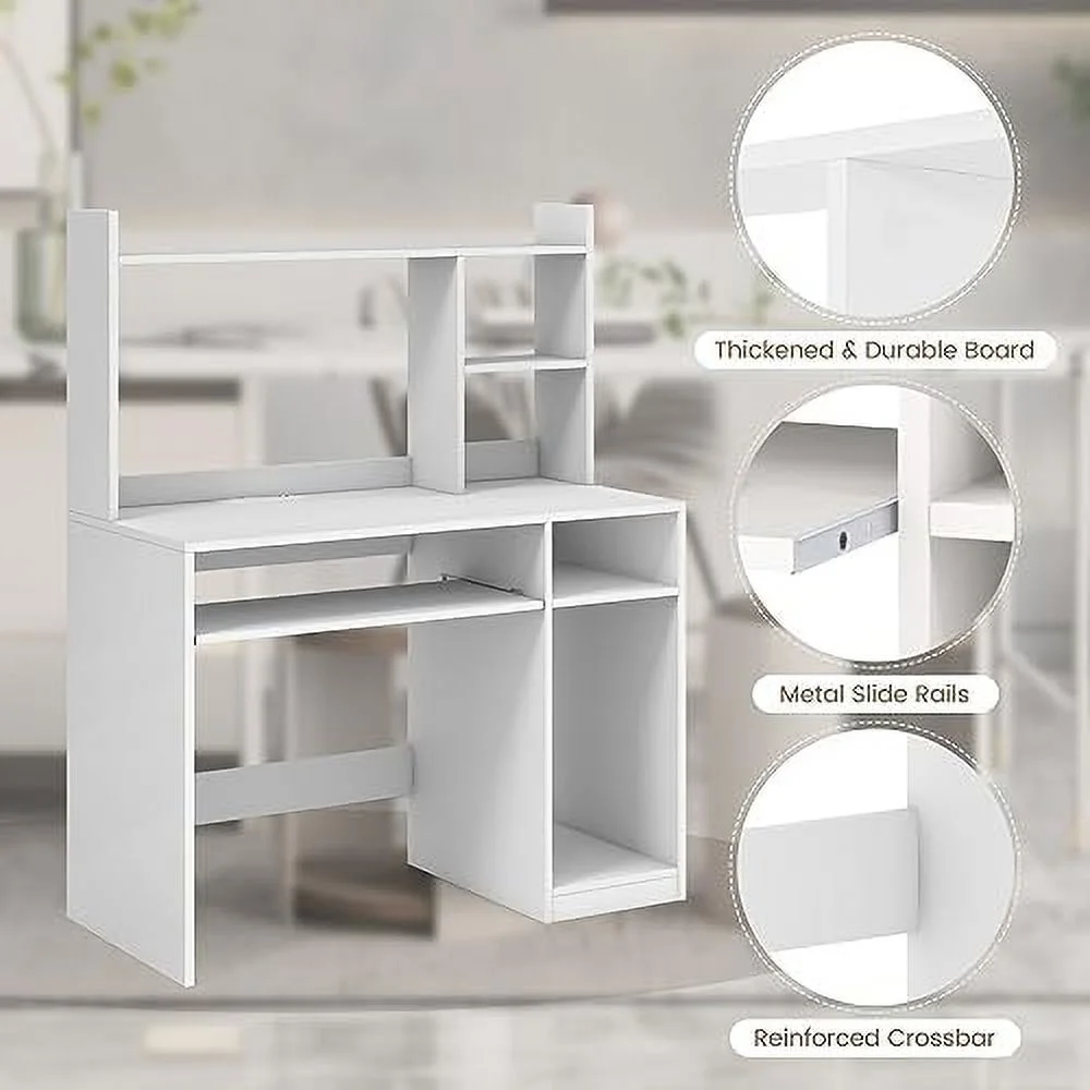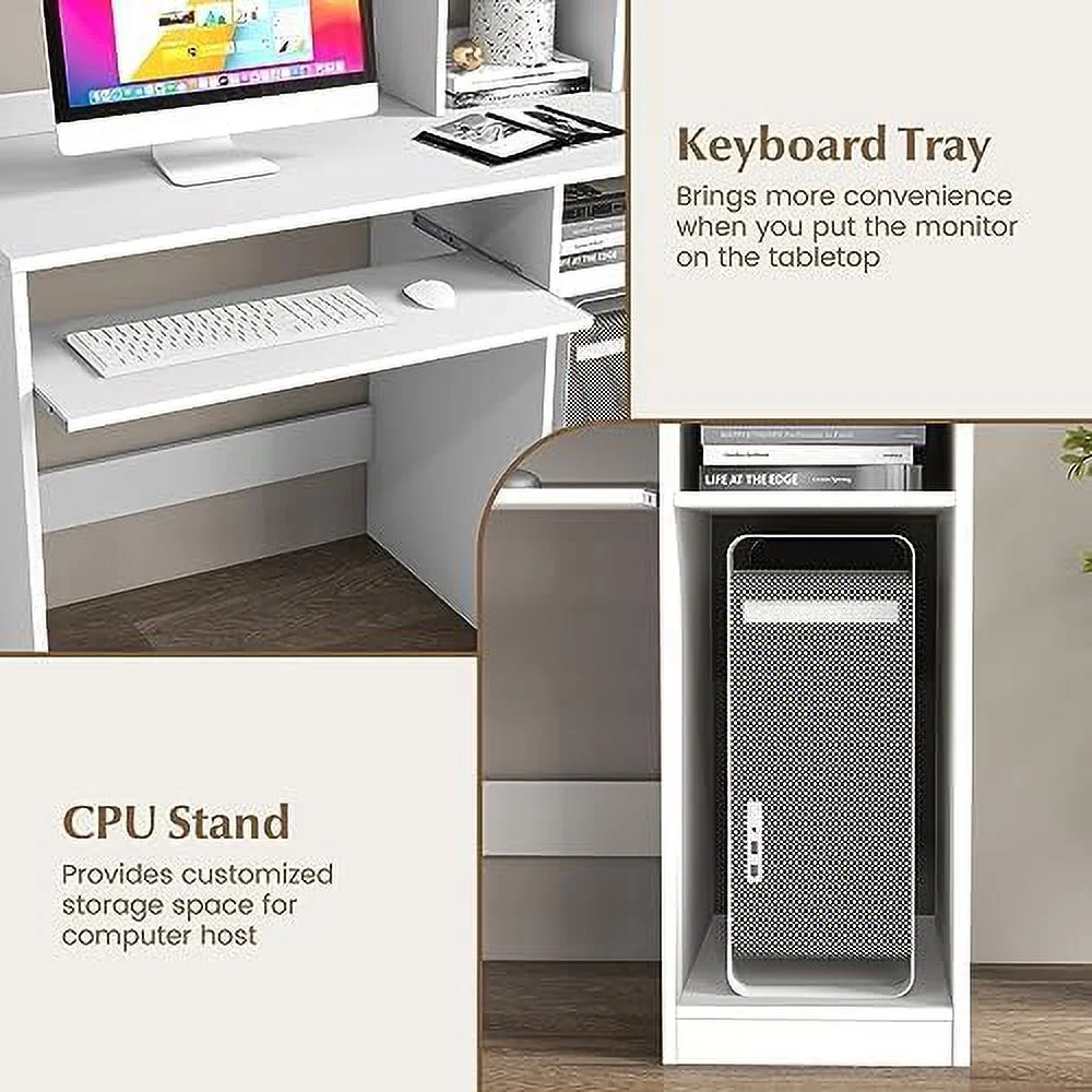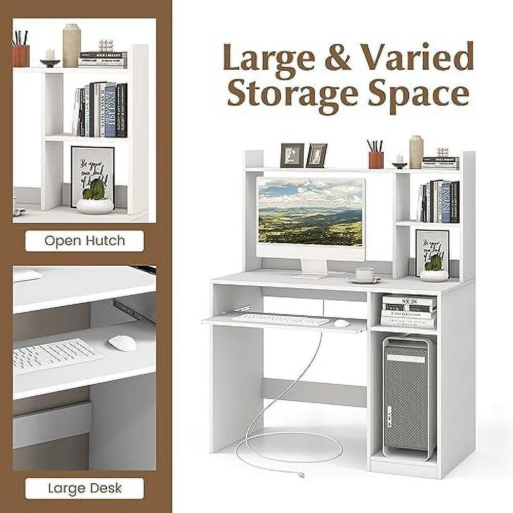 Computer Desk with Hutch Wood Office Desk with Power Outlet Keyboard Tray and CPU Stand Work Desk for Office Corner Writing Desk for Small Spaces Black Desk for Bedroom