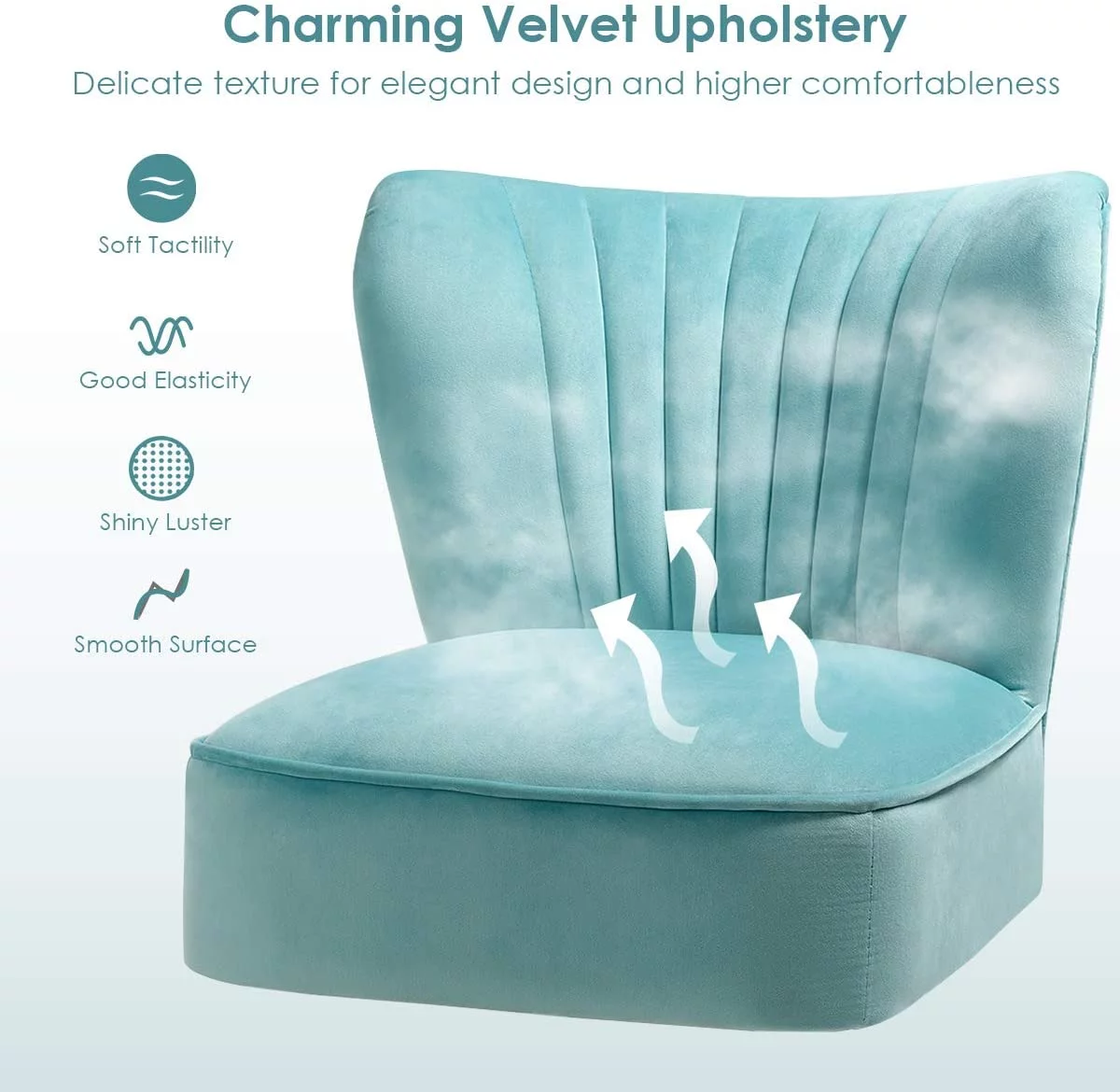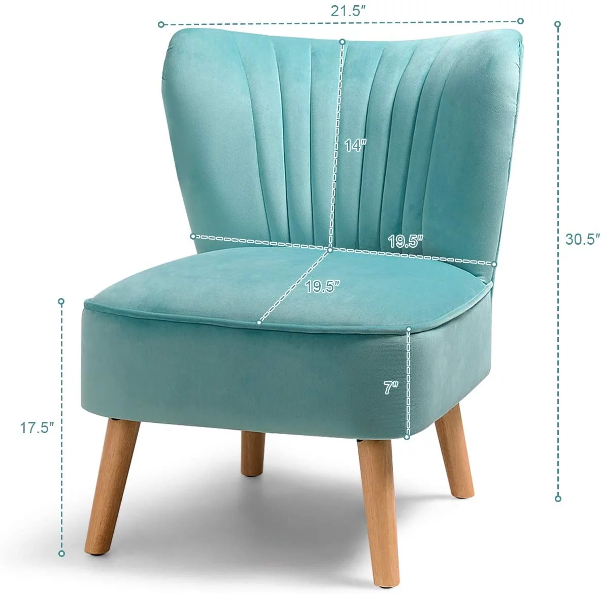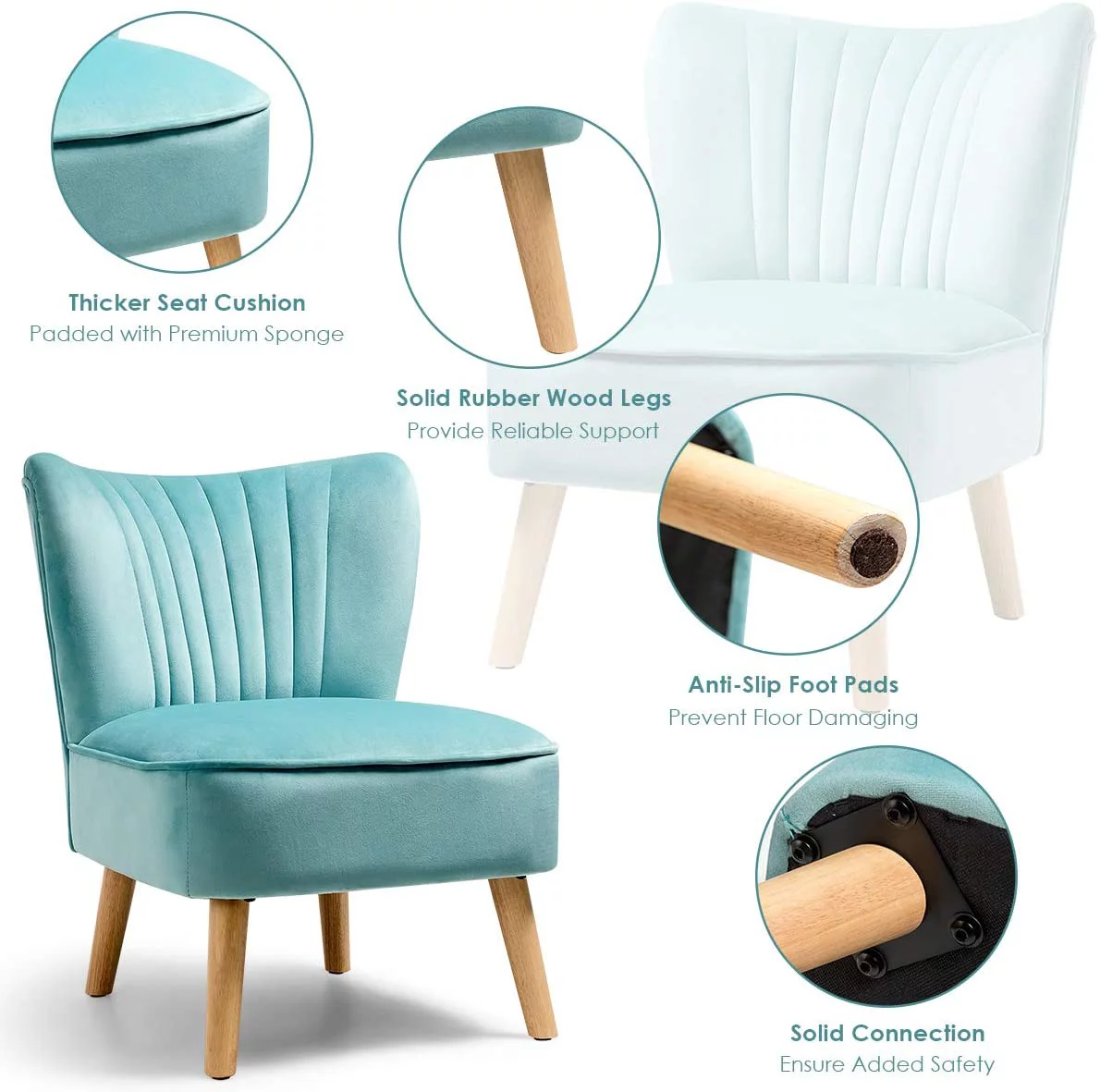 Velvet Accent Chair, Upholstered Modern Sofa Chair w/Wood Legs, Thickly Padded, Small Armless Wingback Club Chairs for Living Room Bedroom Furniture