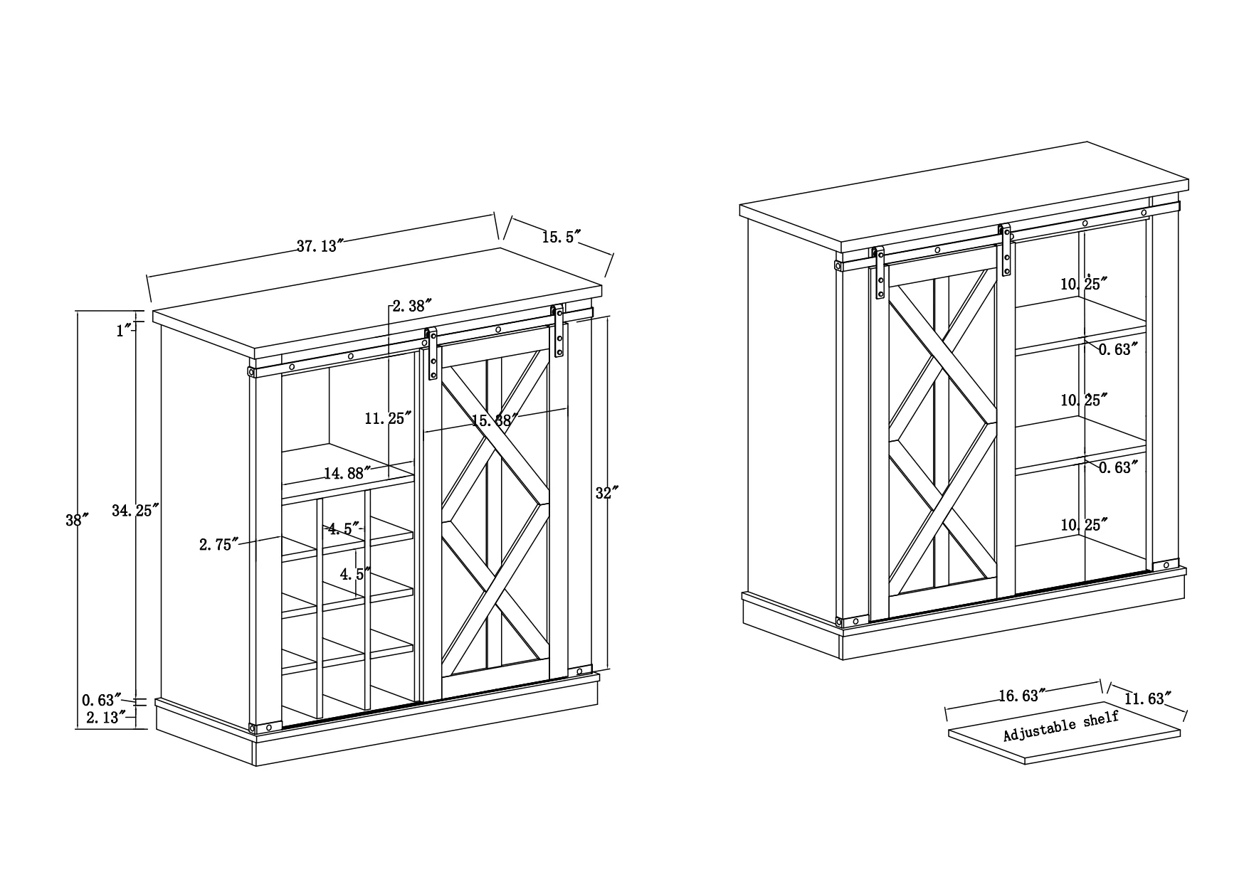 FESTIVO 37" Navy Blue Wood Buffet Bar Cabinet Barn Door with Marbling Pattern Countertop
