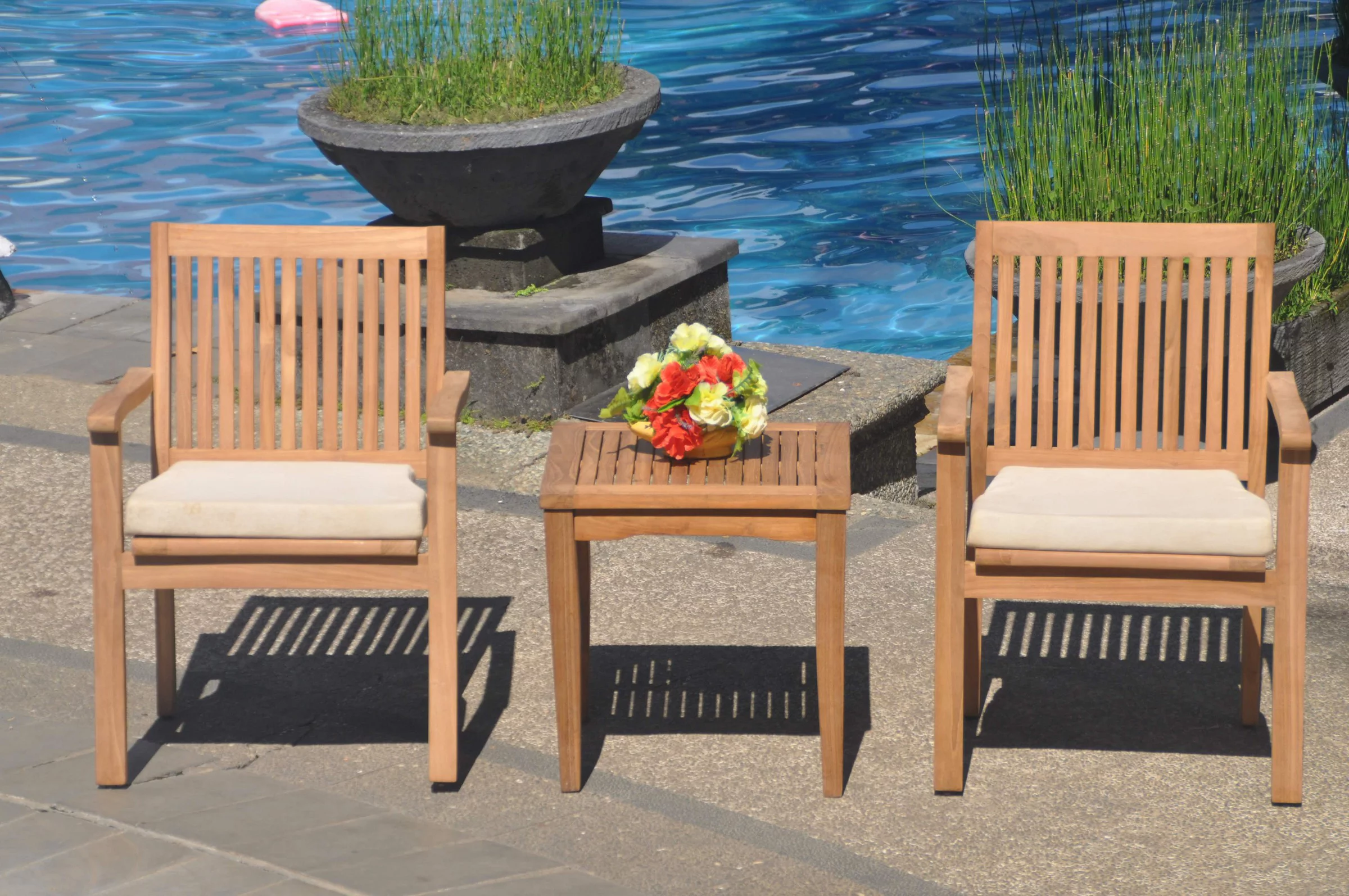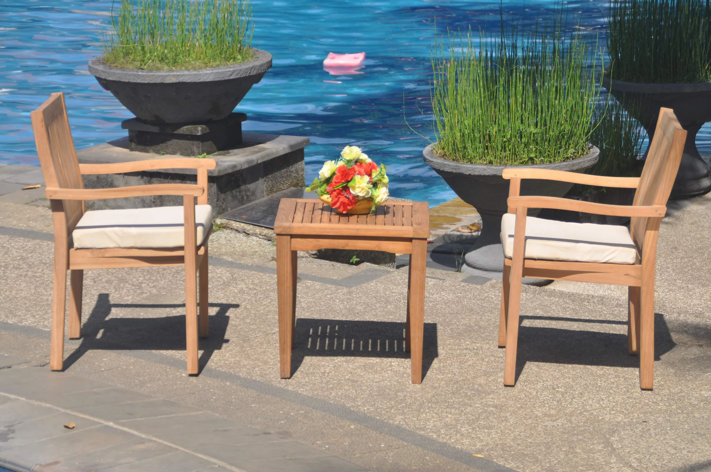 Grade-A Teak Dining Set: 2 Seater 3 Pc: Sack Side Table And 2 Leveb Stacking Arm Chairs Outdoor Patio WholesaleTeak #WMDSWVm