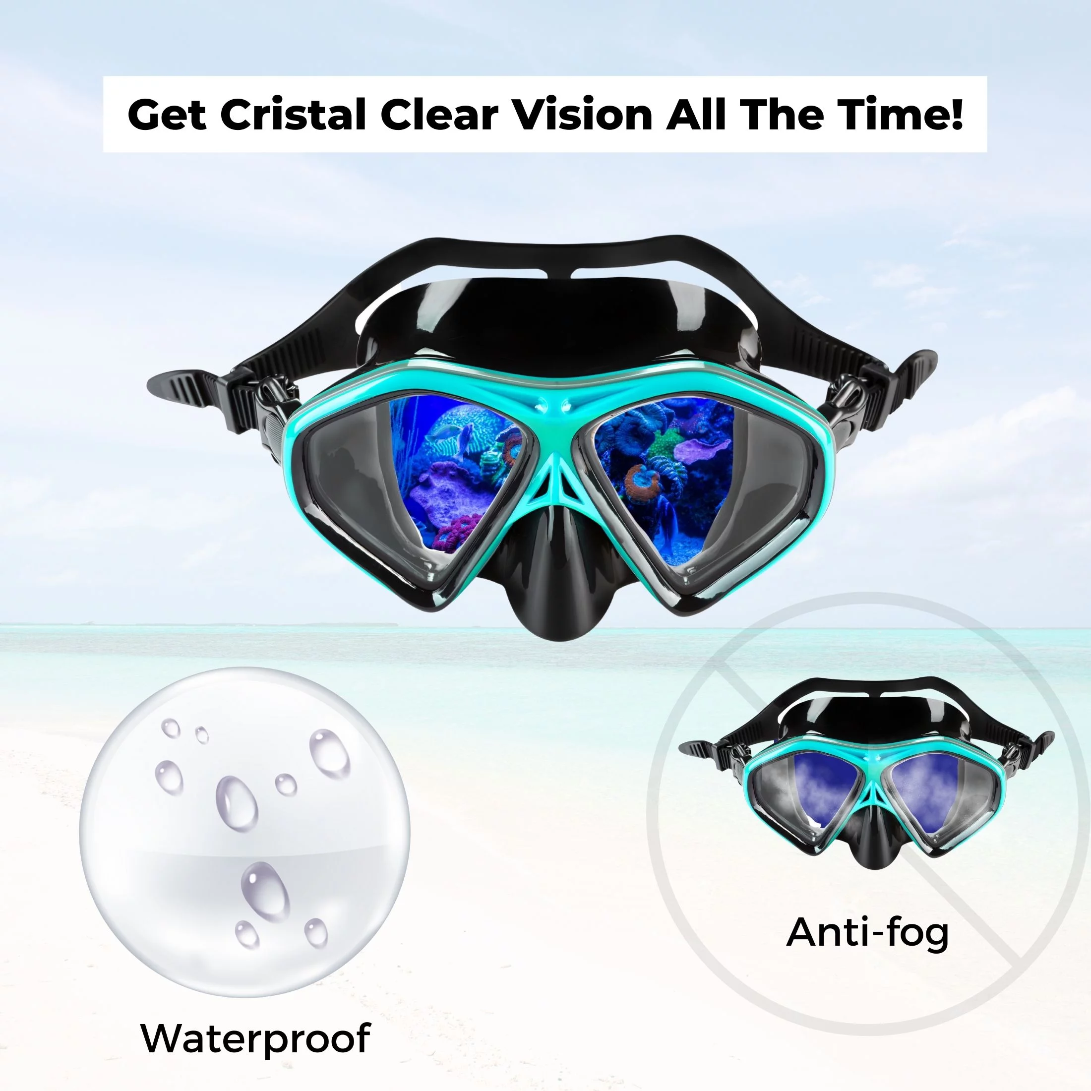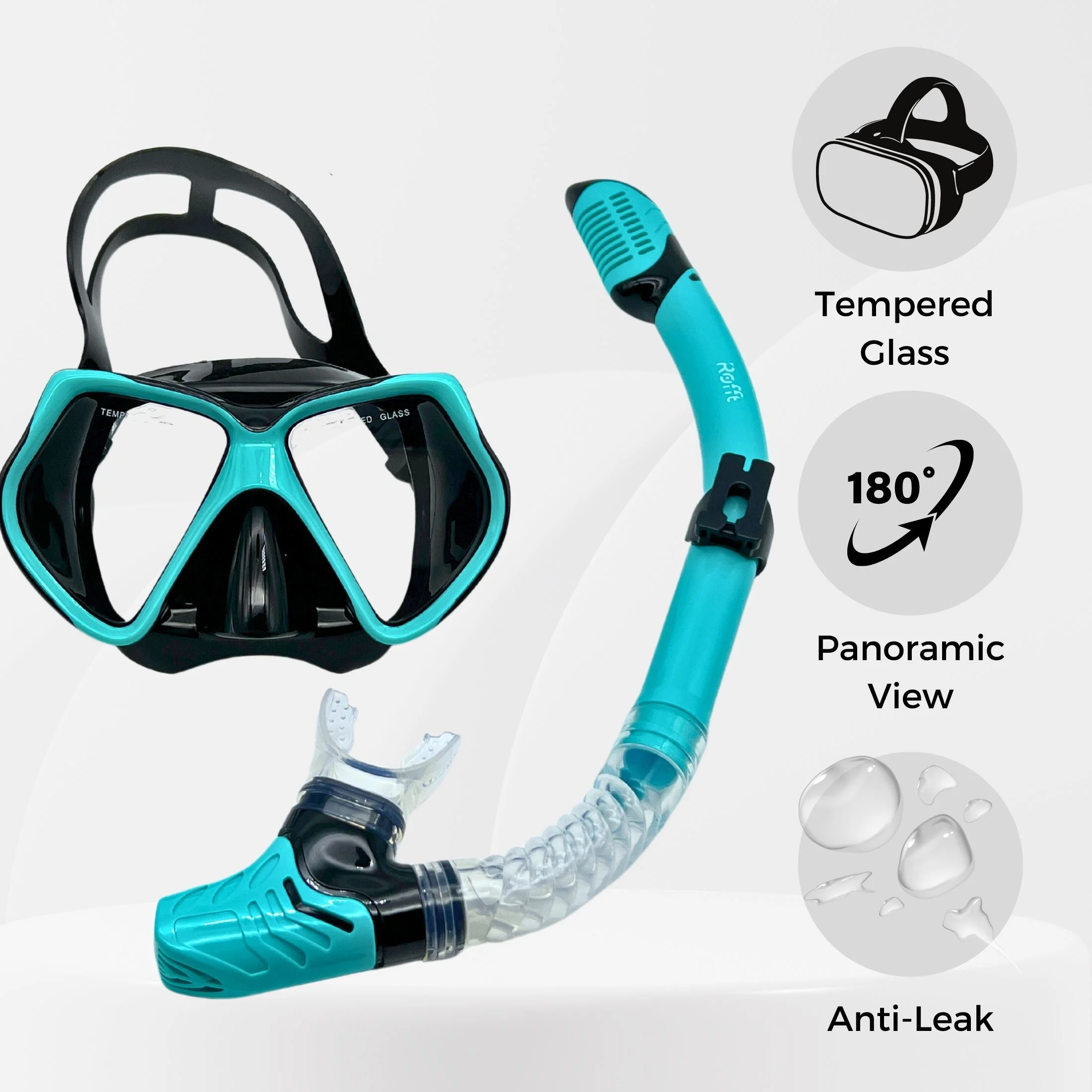 ROFFT Dry top Snorkeling Gear for Adults - Premium Silicon Diving Gear with Tempered Glass Mask Anti-Fog and Transportable Bag