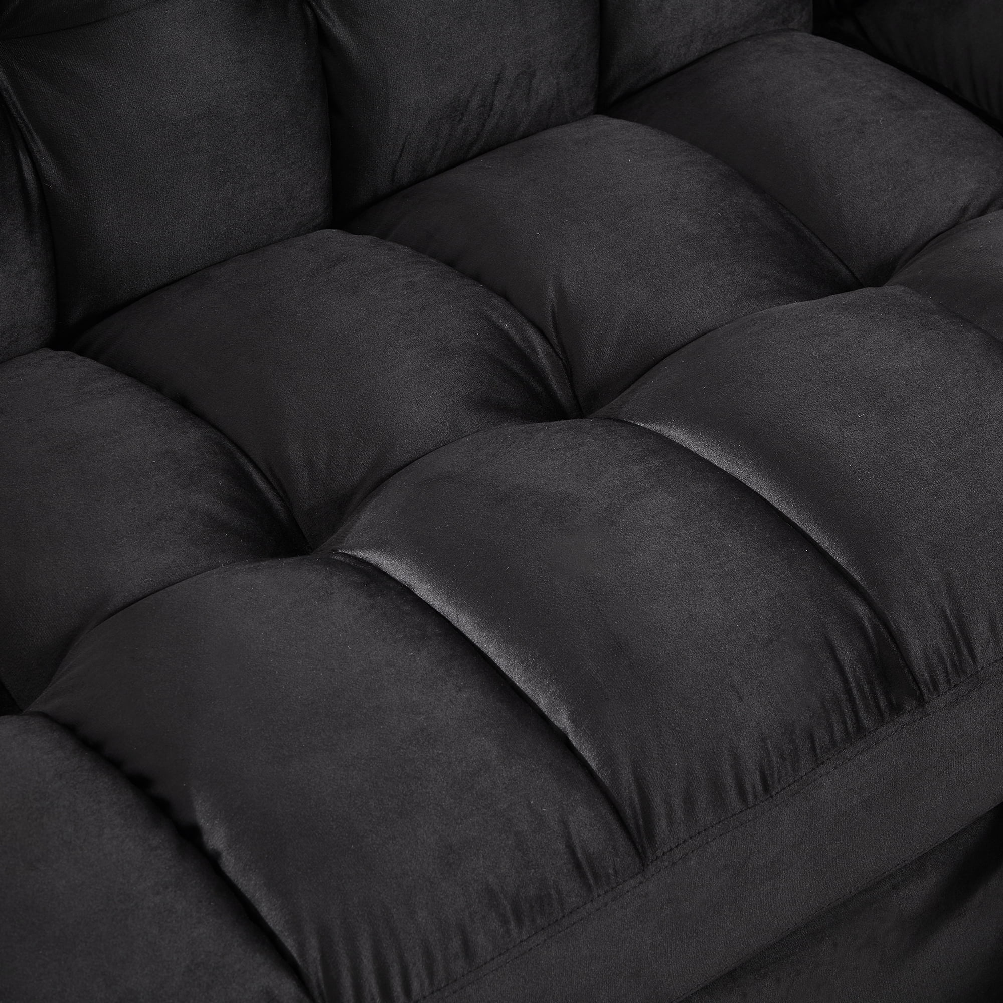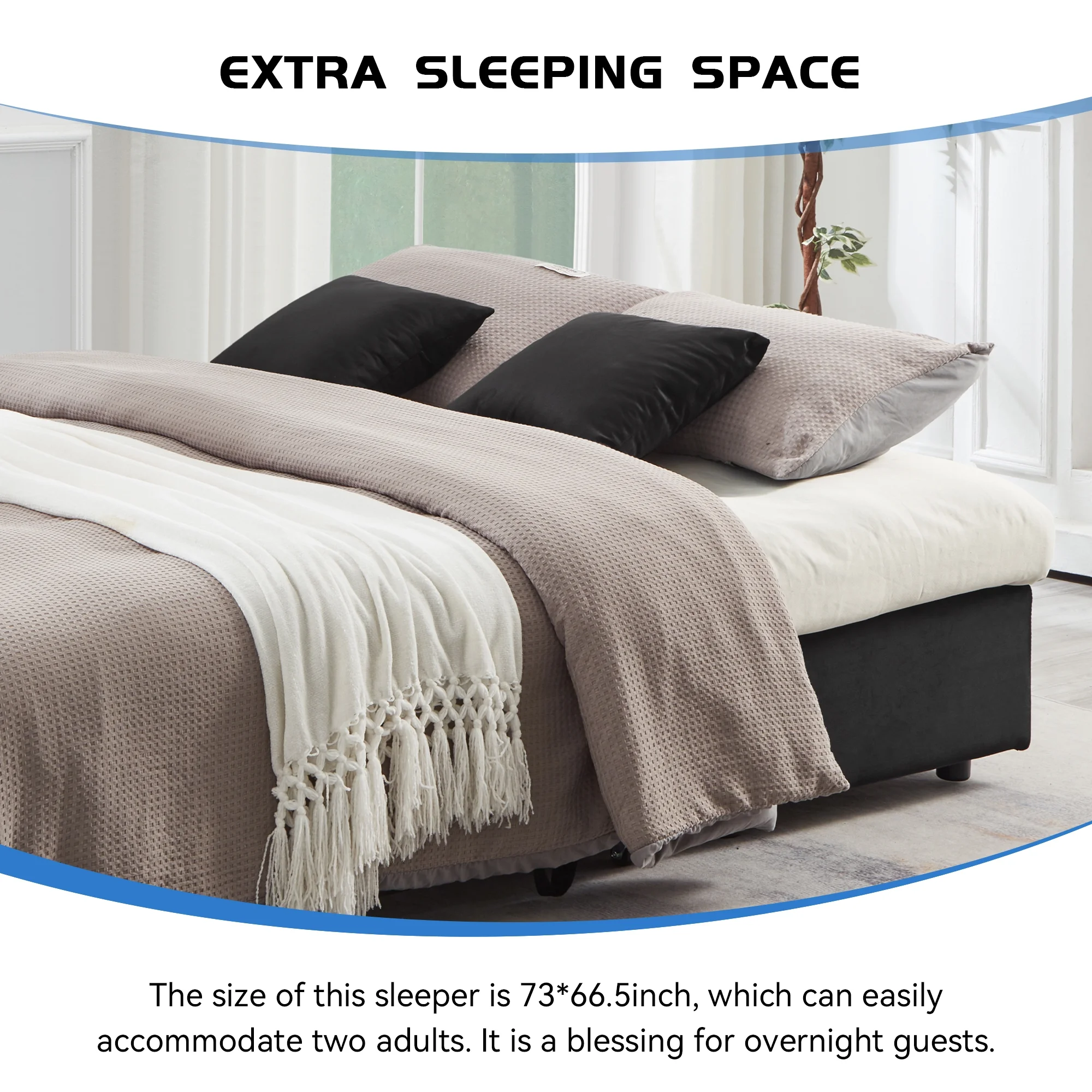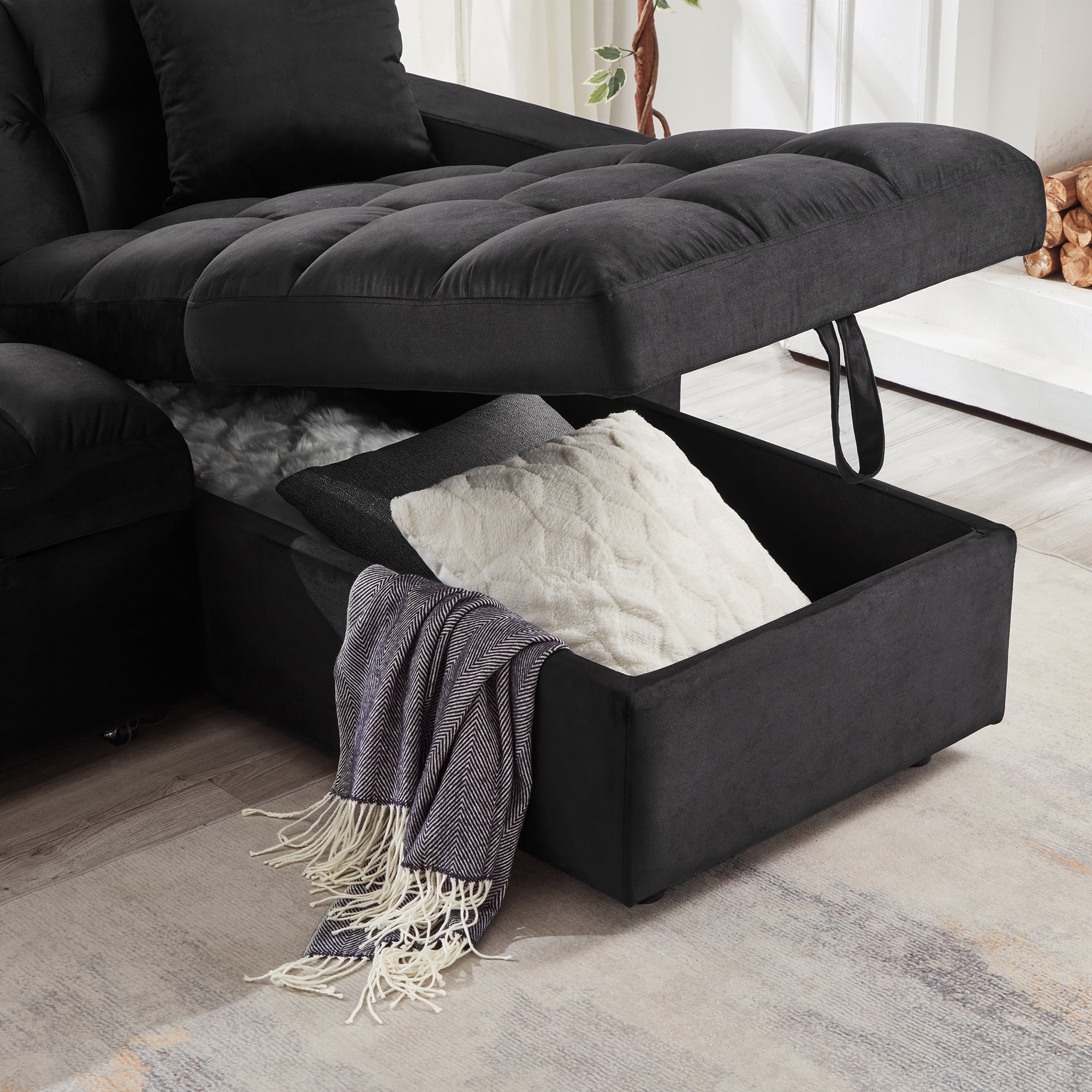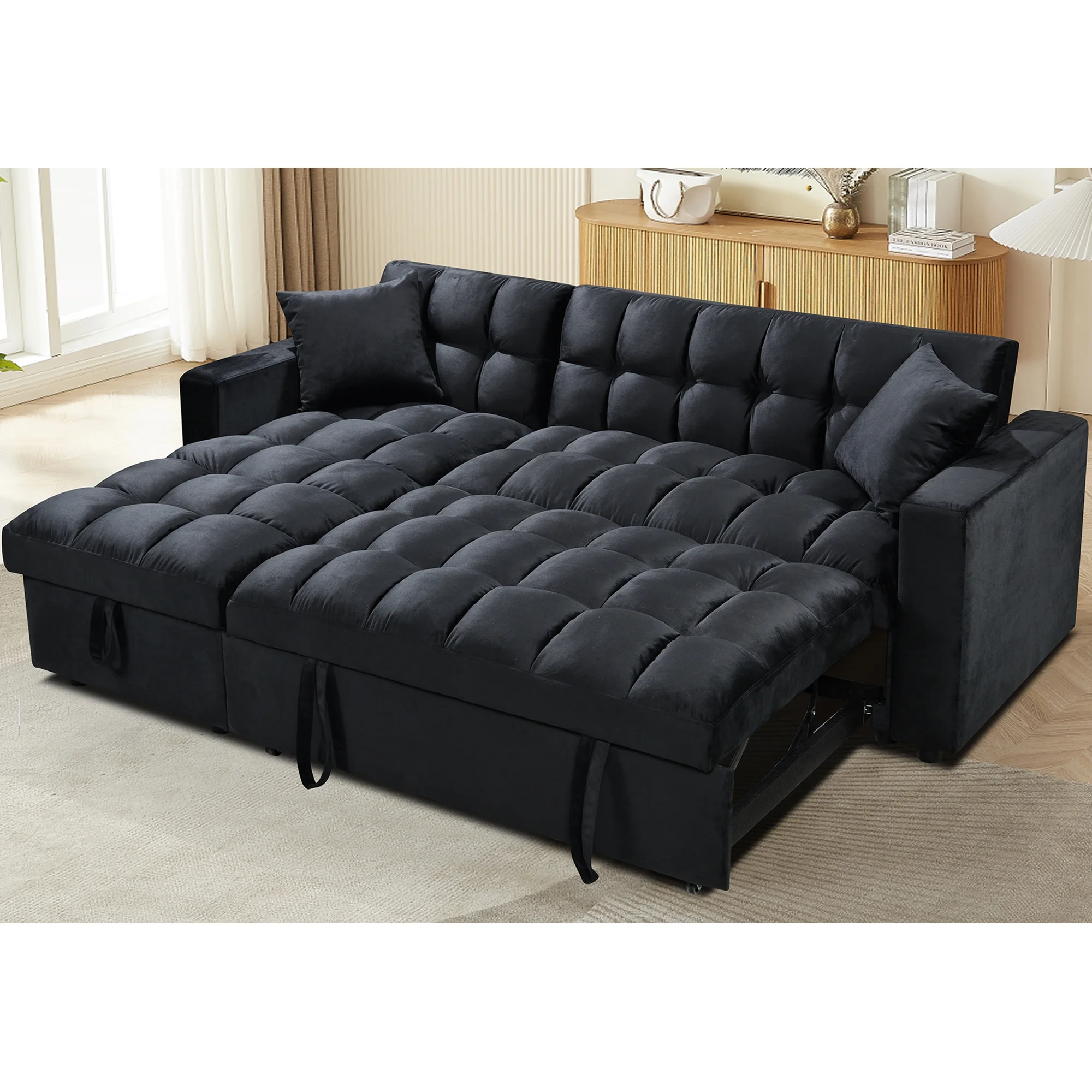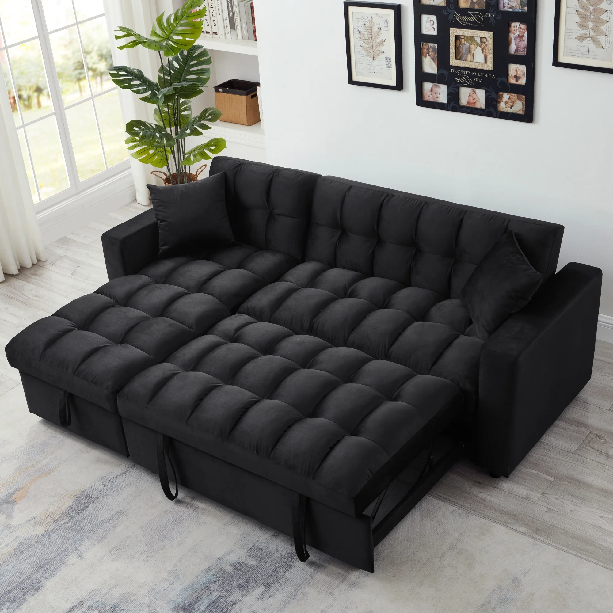 Muumblus 84" Convertible Sofa Bed, Pull Out Sofa Bed, Modern Tufted Sectional Sleeper Sofa with Storage Chaise, L Shaped Sofa Couch for Living Room, Black Velvet