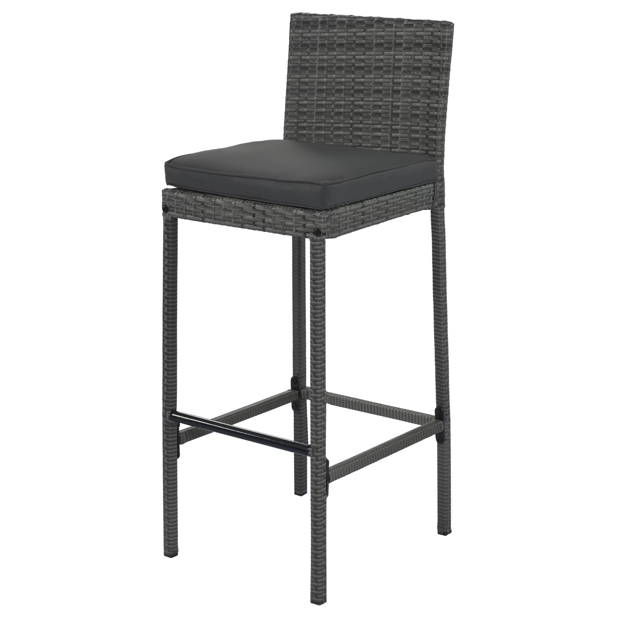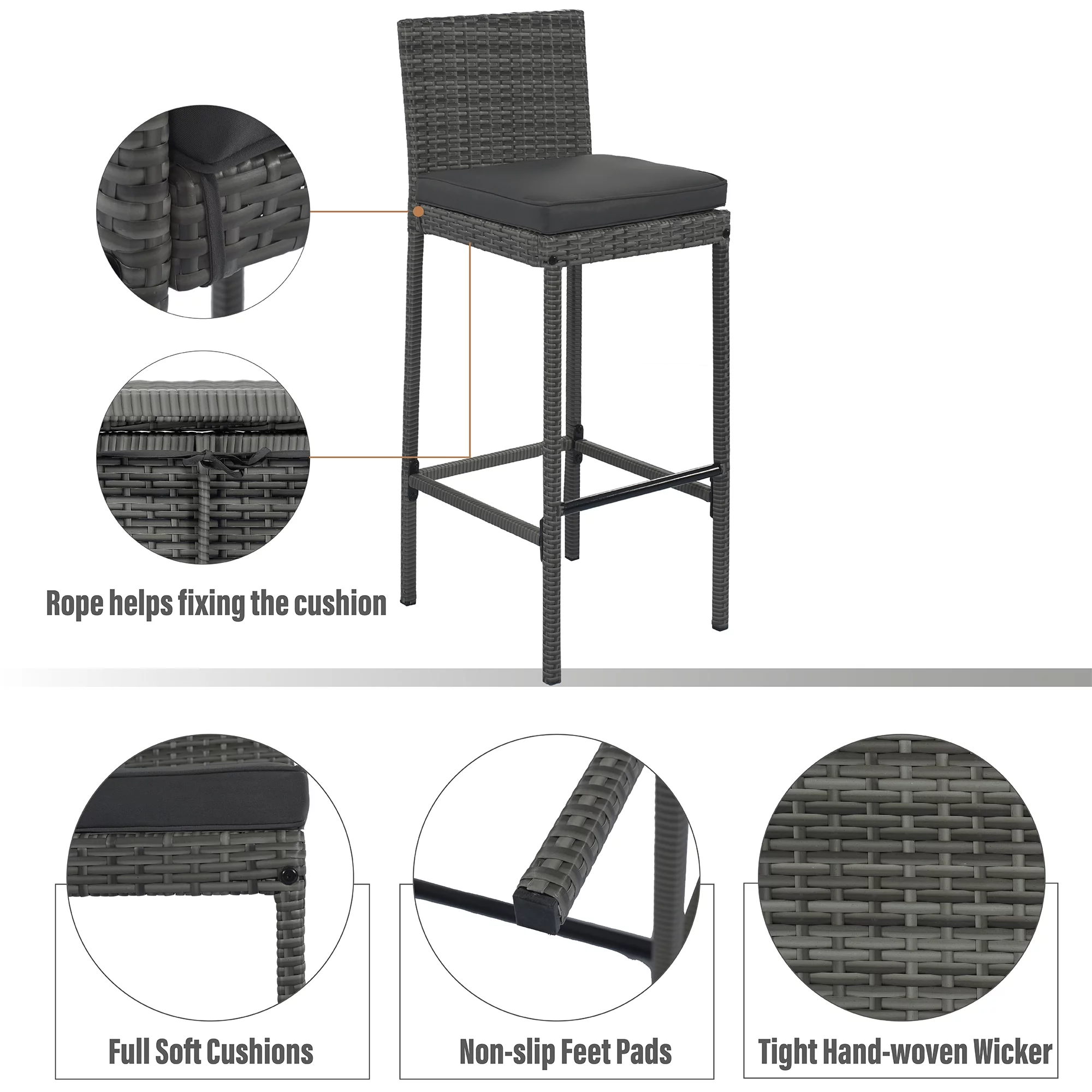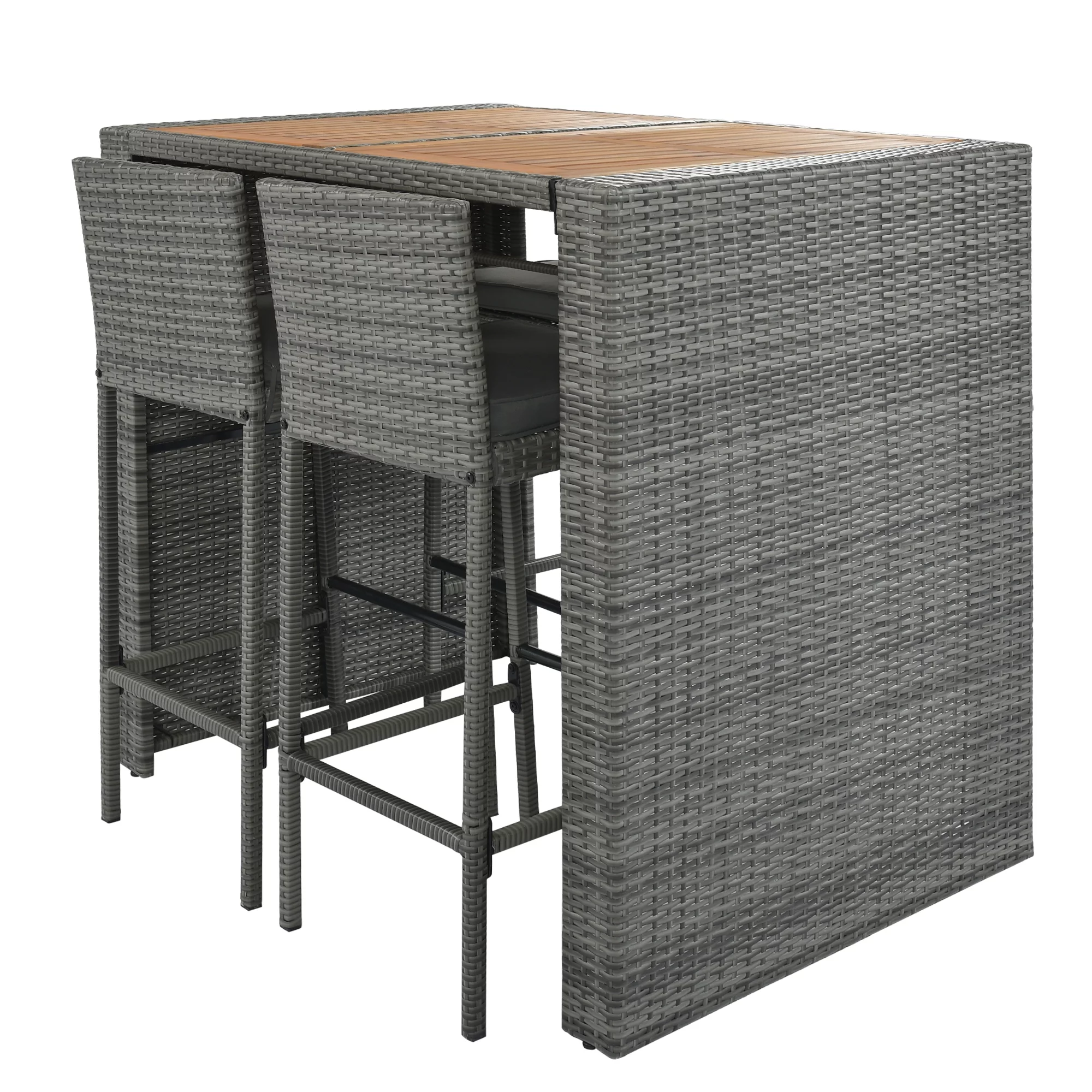 Outdoor Bar Dining Table Set, 5-Pcs Rattan Patio Bistro Sets, Counter Height Table & Cushioned Chairs with Backrest, Gray Wicker Patio Furniture Set for Backyard Porch Poolside