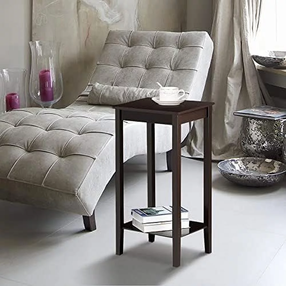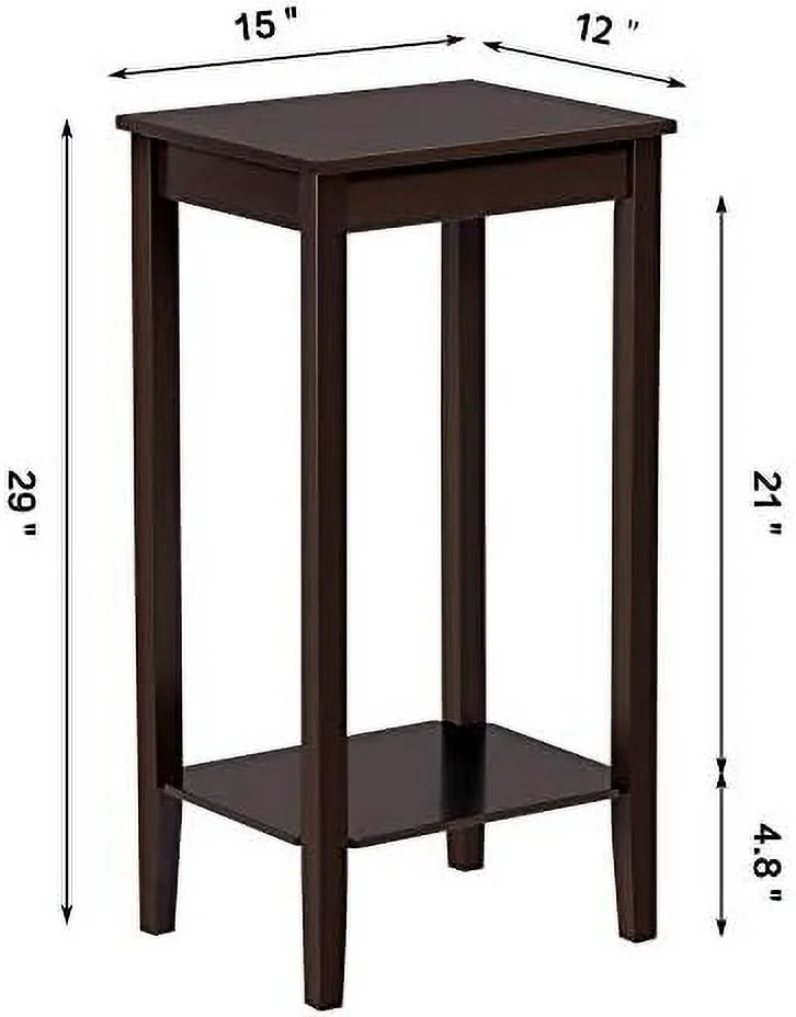 Tall End Table With Storage Shelf And Solid Wood Legs, Sofa Side Table Telephone Table For Living Room/Couch/Hallway/Small Spaces, D12xw15xh29 Inches, Dark Coffee