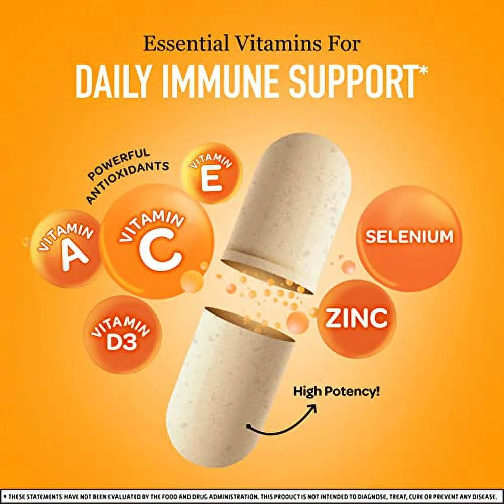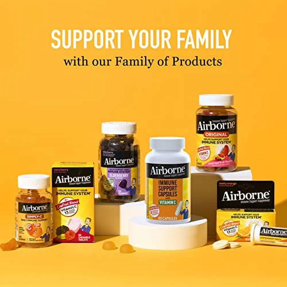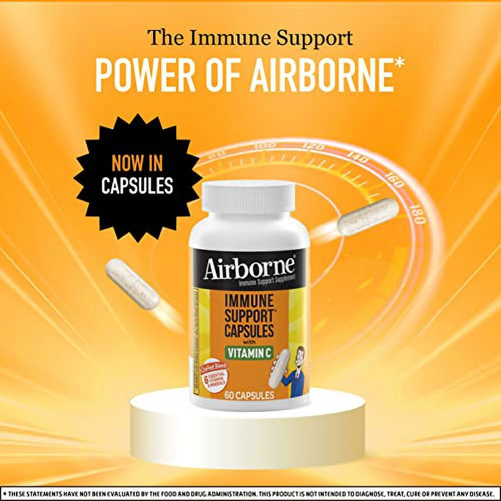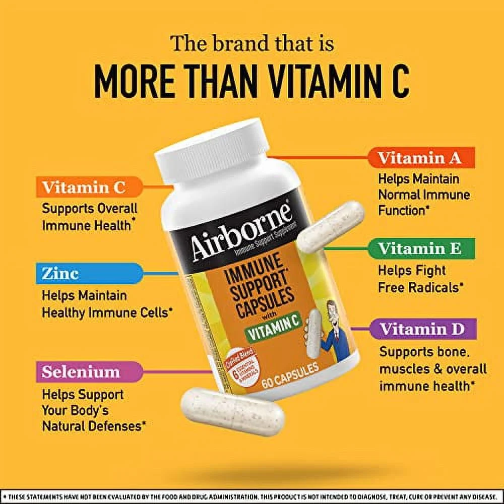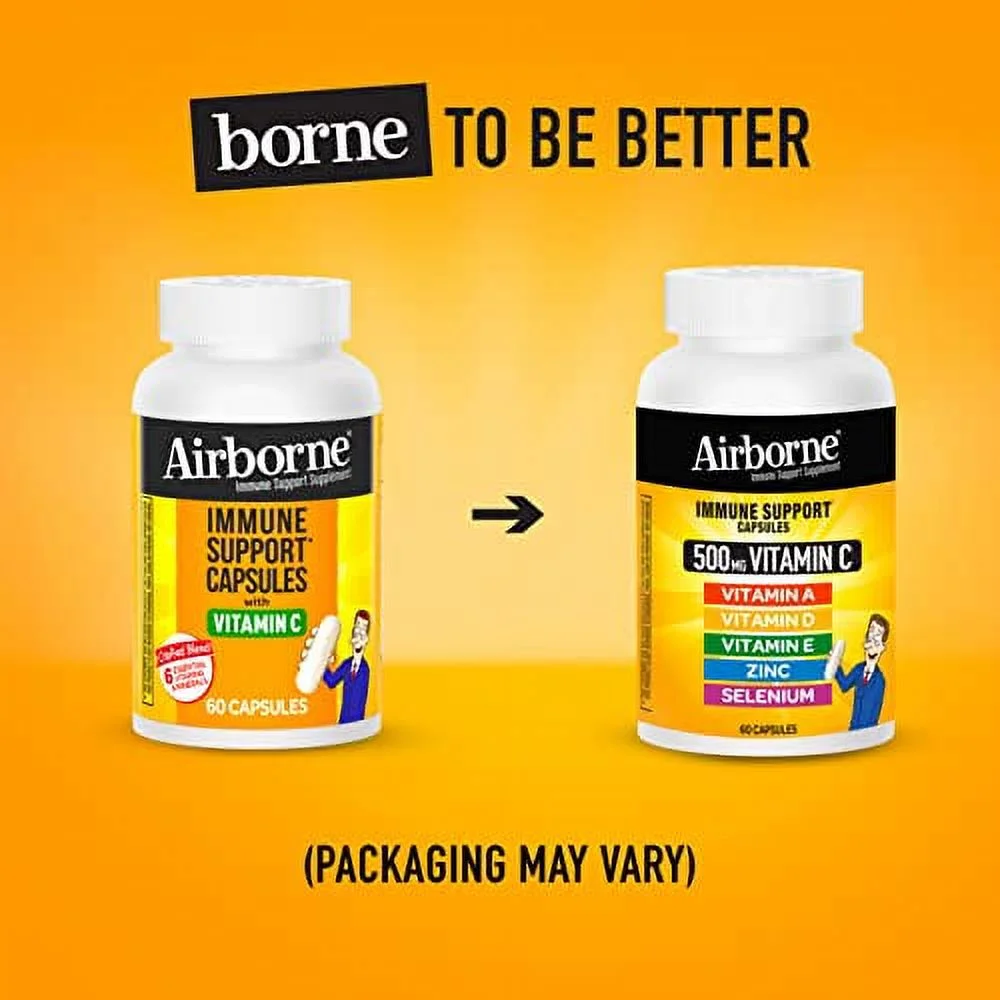 Airborne Vitamin C 500mg Capsules With Zinc & Selenium, Immune Support Supplement For Adults with Powerful Antioxidants Vitamins A C & E + Vitamin D - 60ct Bottle (30 Servings)