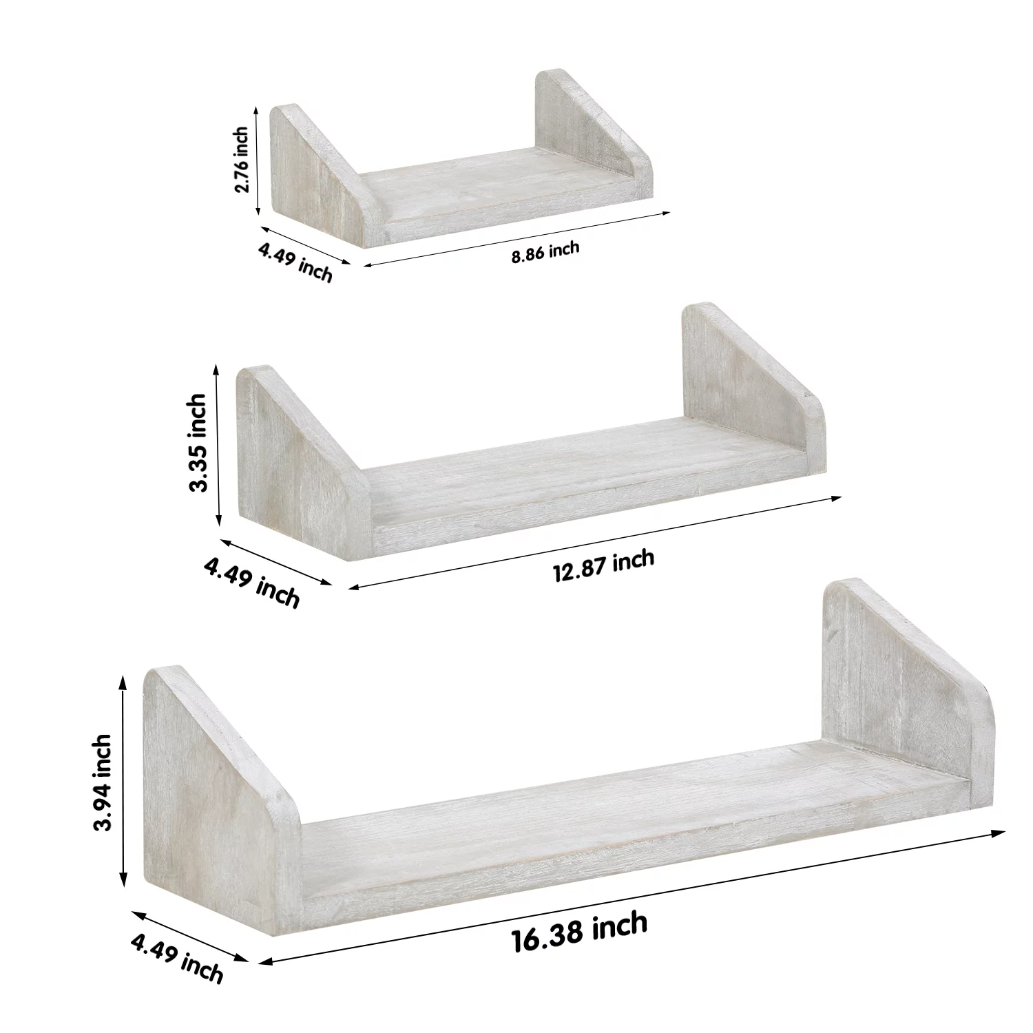 Floating Shelf Wall-Mounted 3-Piece Set, Wooden Shelves For Home And Office Decoration
