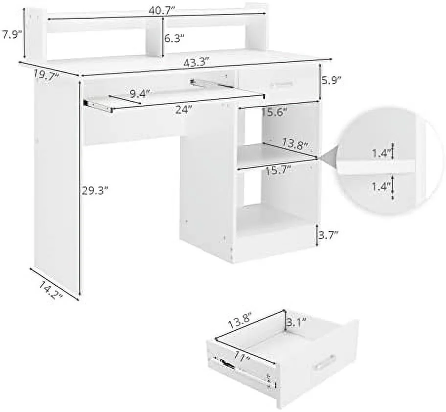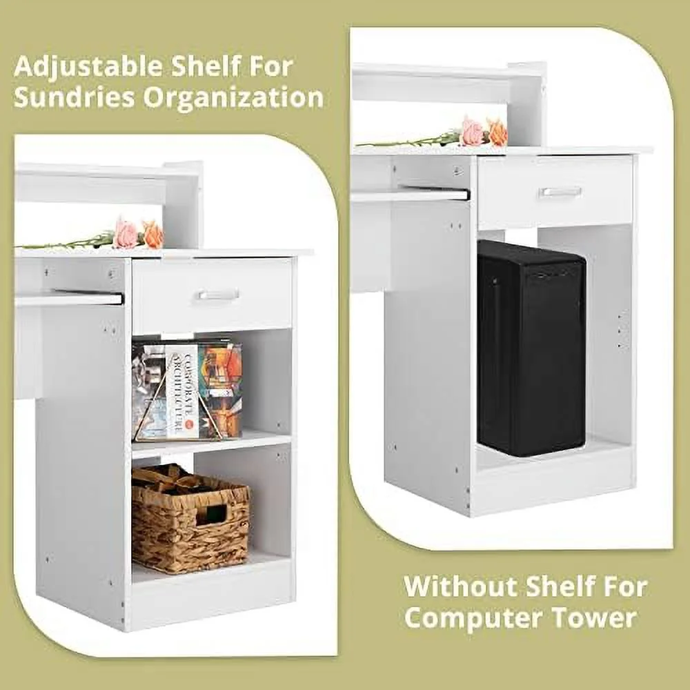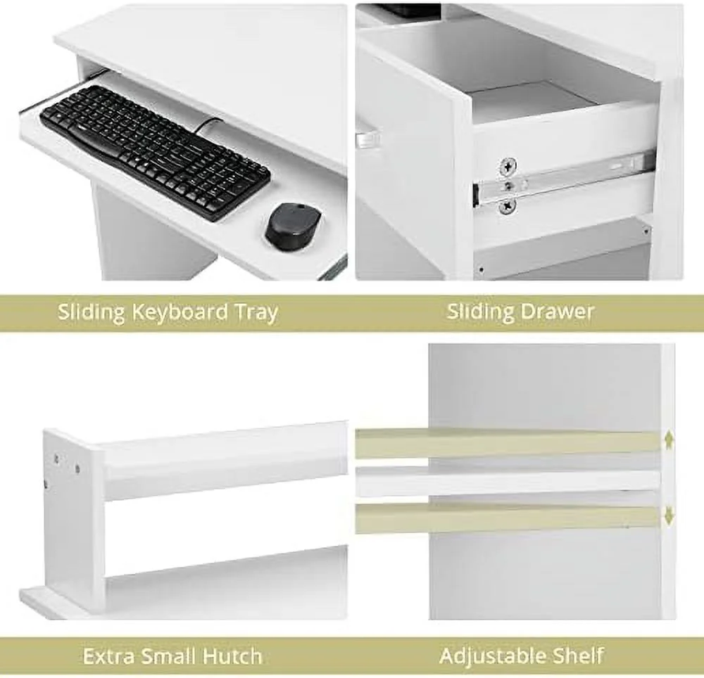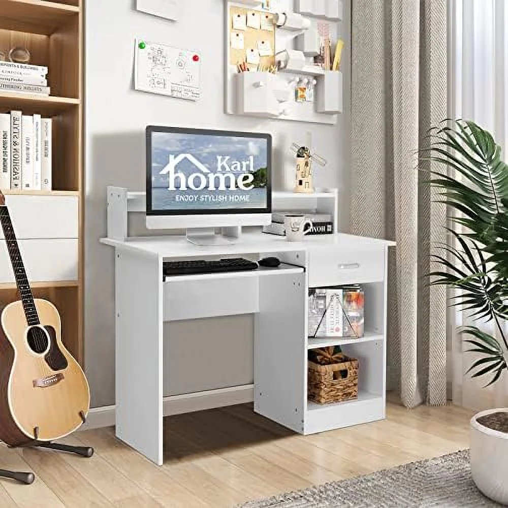Computer Desk Study Writing Desk Wooden Office Workstation PC Laptop Table with Drawer Shelf Keyboard Tray White