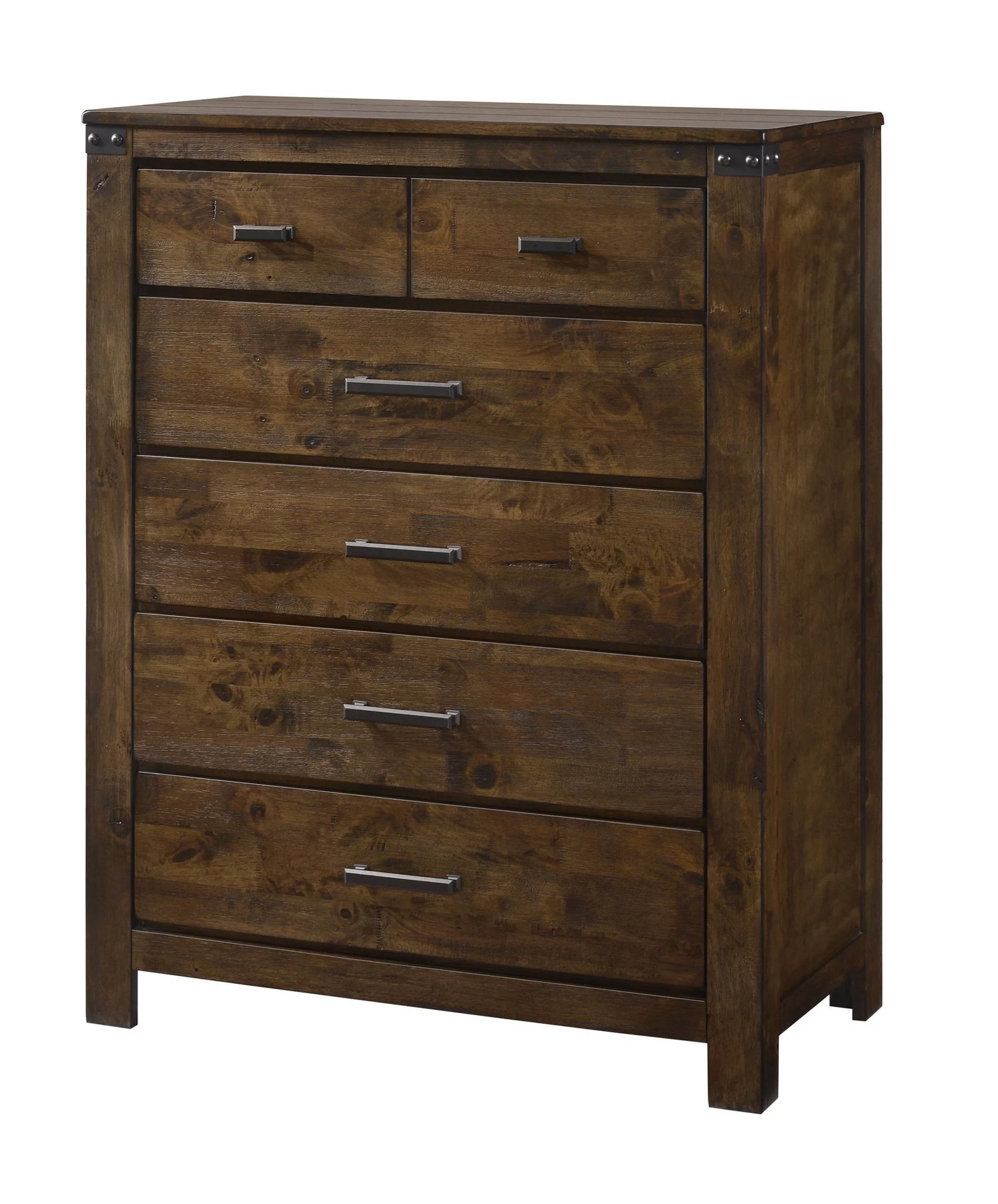 6pc Contemporary Rustic Finish Queen Size Bedroom Set Bed Dresser Mirror Nightstand Chest Wooden Home Furniture