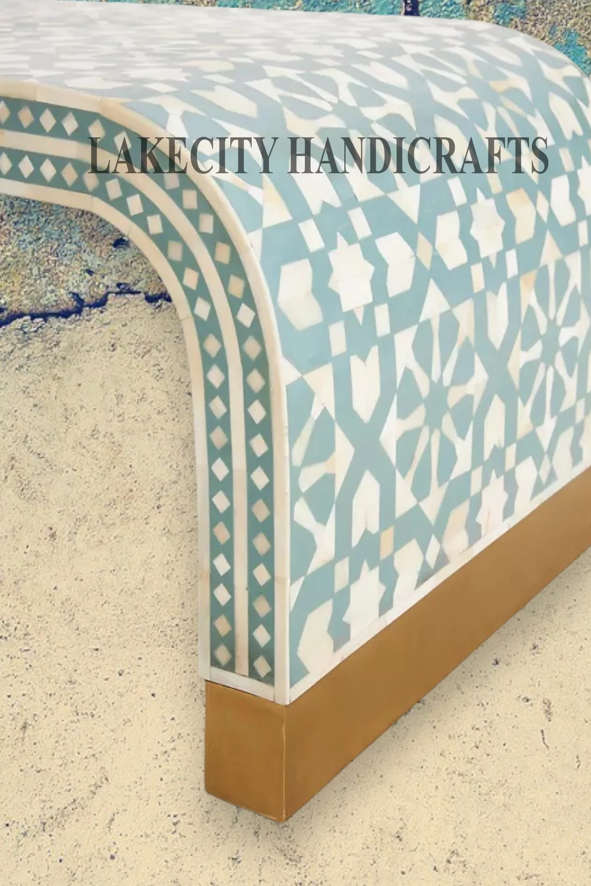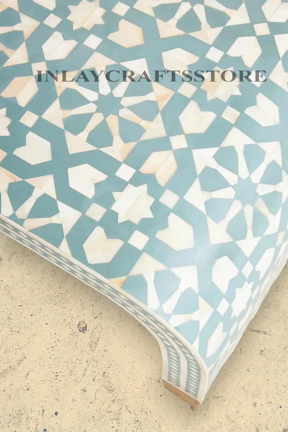 LAKECITY ARTS Bone Inlay Moroccan Design Waterfall Coffee Table Green, Bone Inlay Moroccan Design Waterfall Center Table Green, Bone Inlay Table