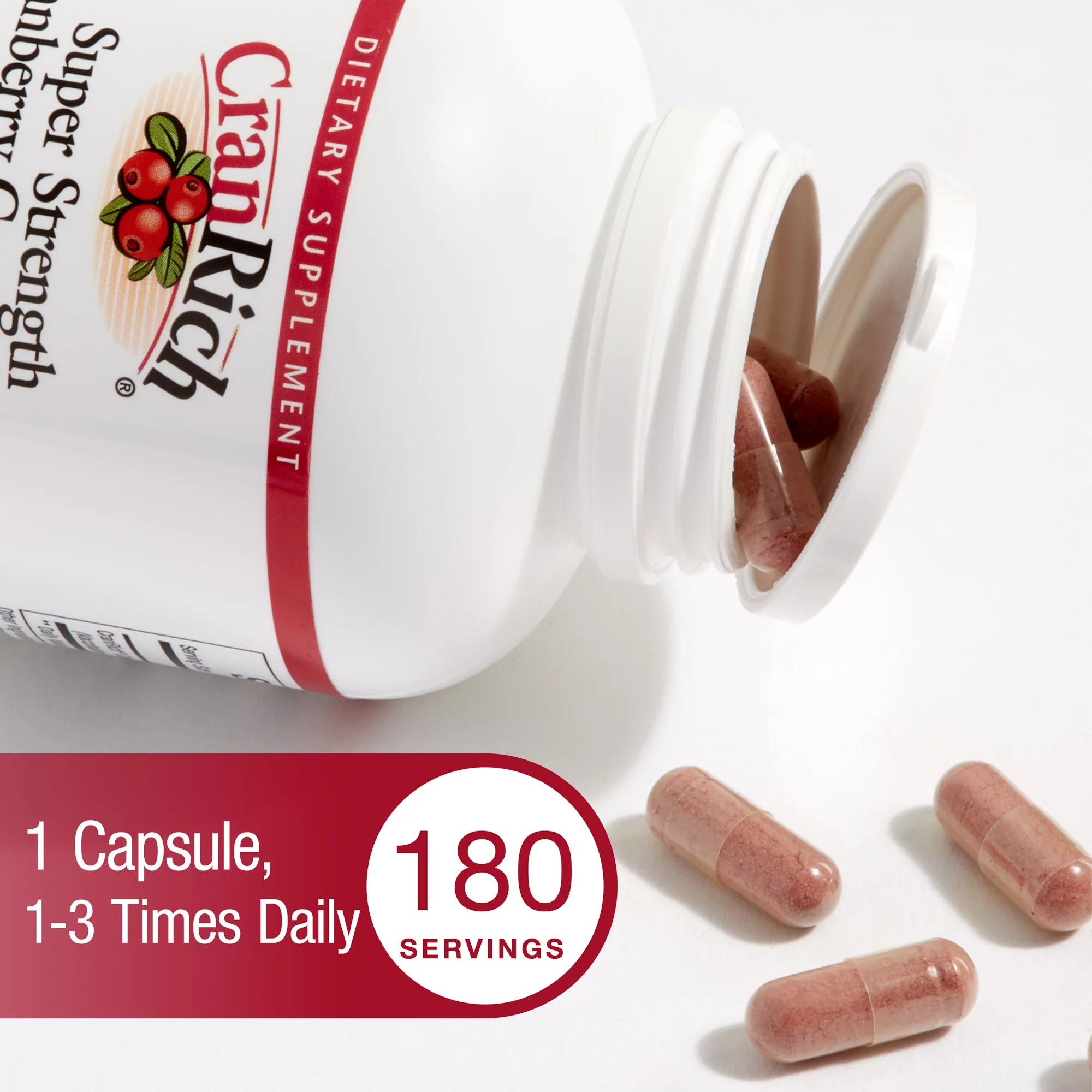 CranRich by Natural Factors, Super Strength Cranberry Concentrate, Antioxidant Supplement for Urinary Tract Support, Non-GMO, 180 Capsules