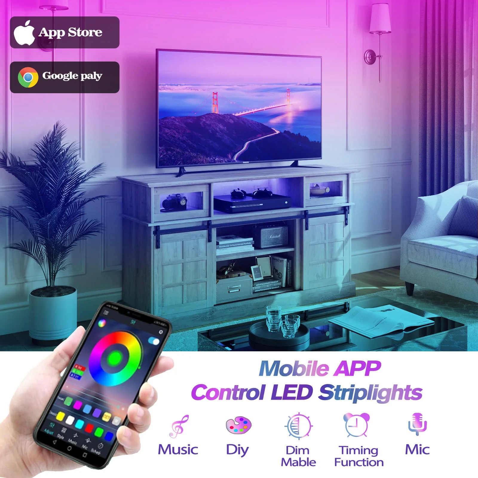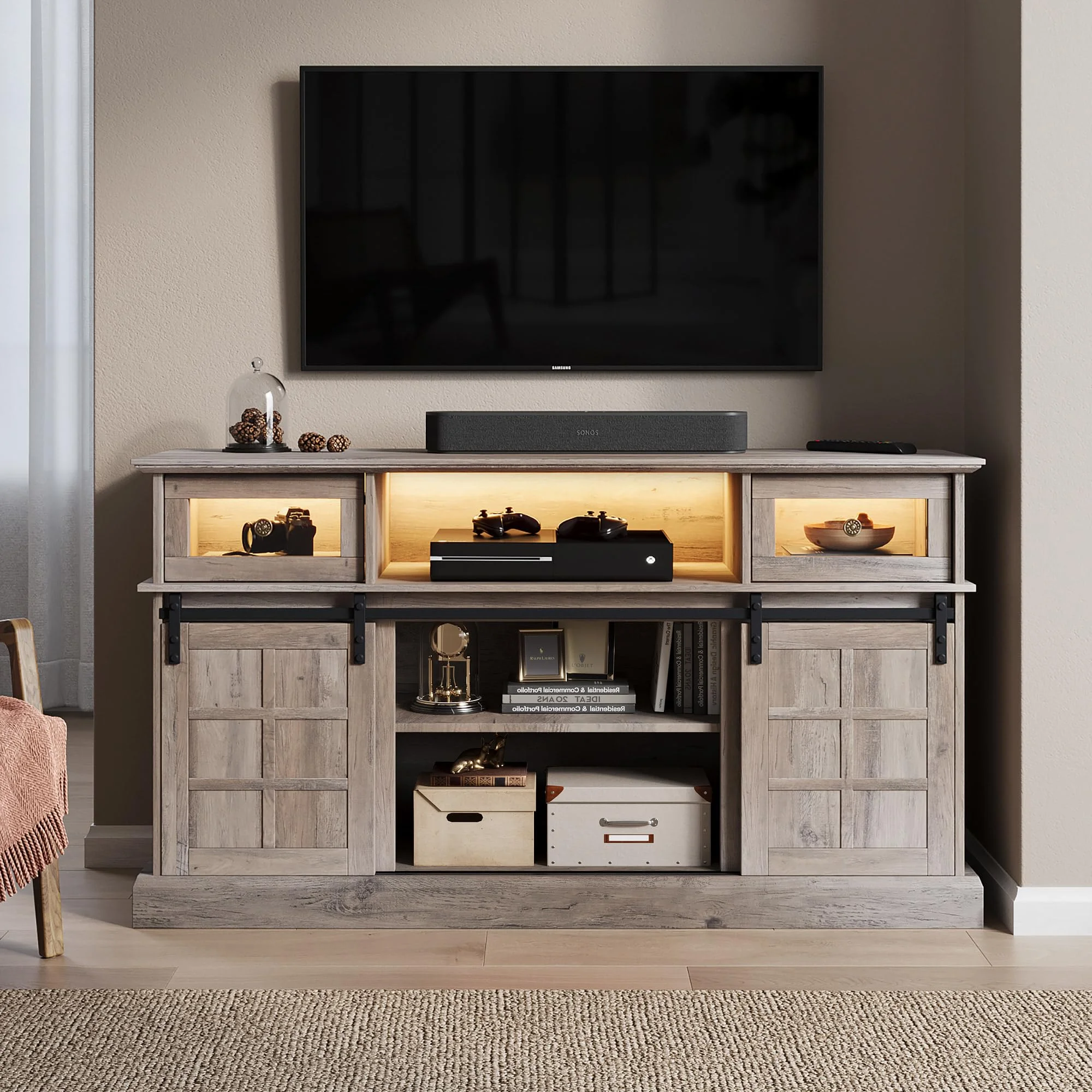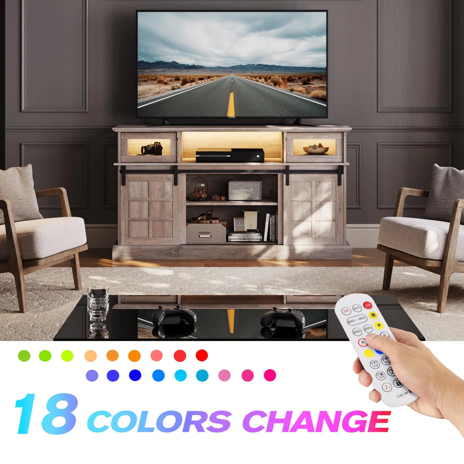 LGHM TV Stand, LED Light Entertainment Center for TVs Up to 65" with Storage Cabinet for Living Room, Bedroom,Gray
