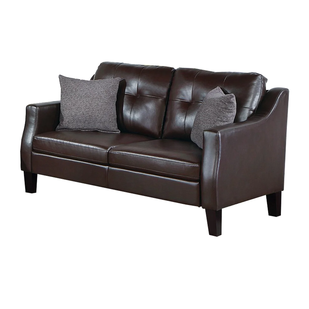 Hera 2 Piece Sofa and Loveseat Set 4 Pillows Classic Brown Faux Leather- Saltoro Sherpi