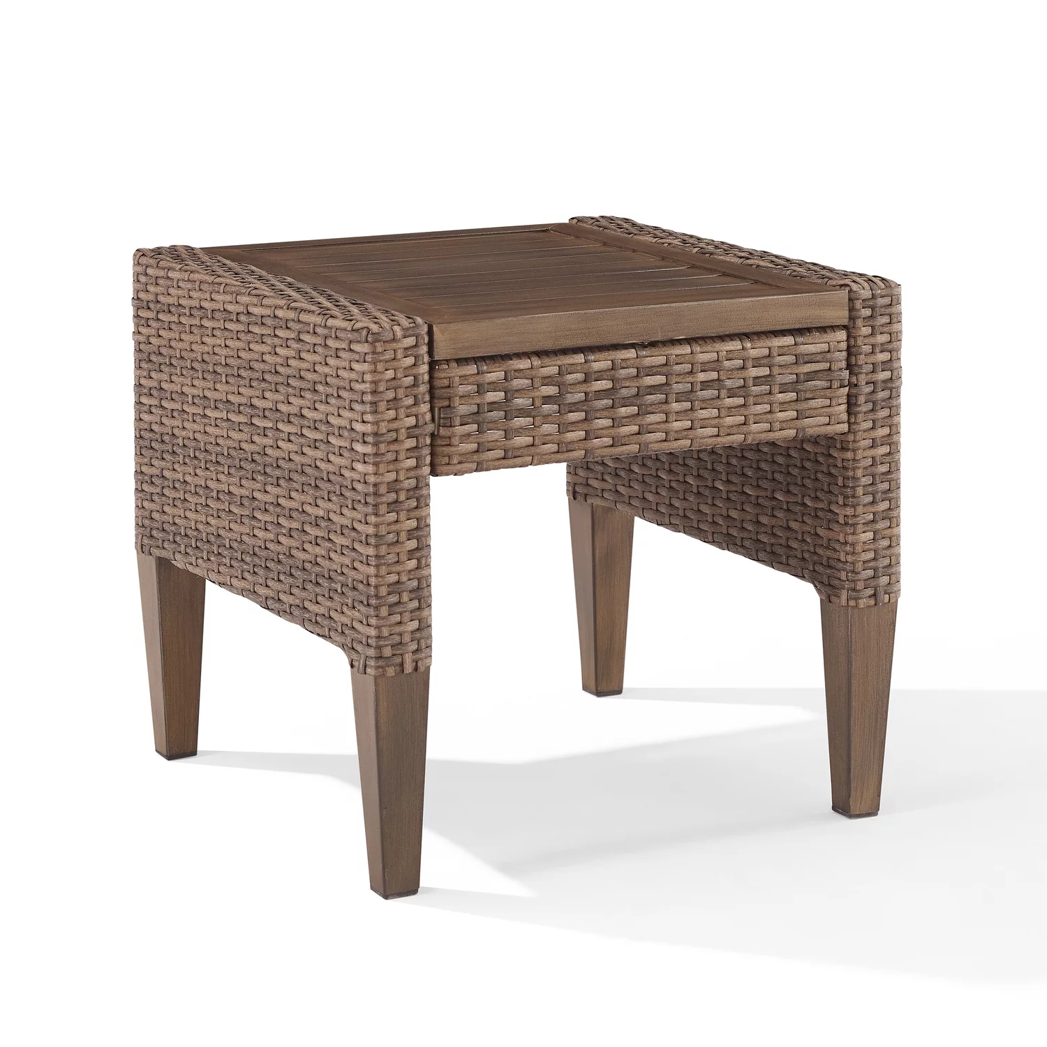 HomeStock Coastal Craftsman Outdoor Wicker Side Table Brown