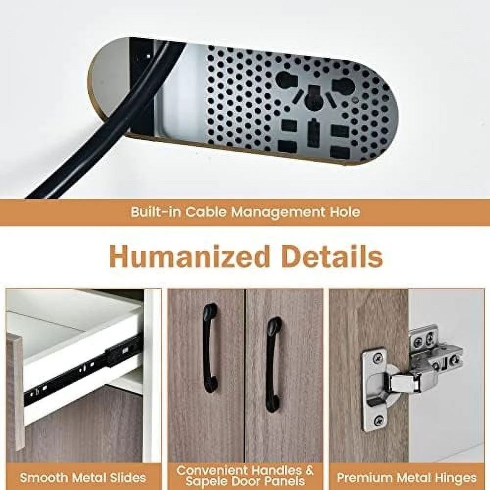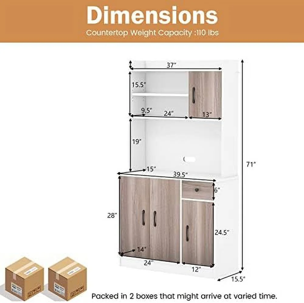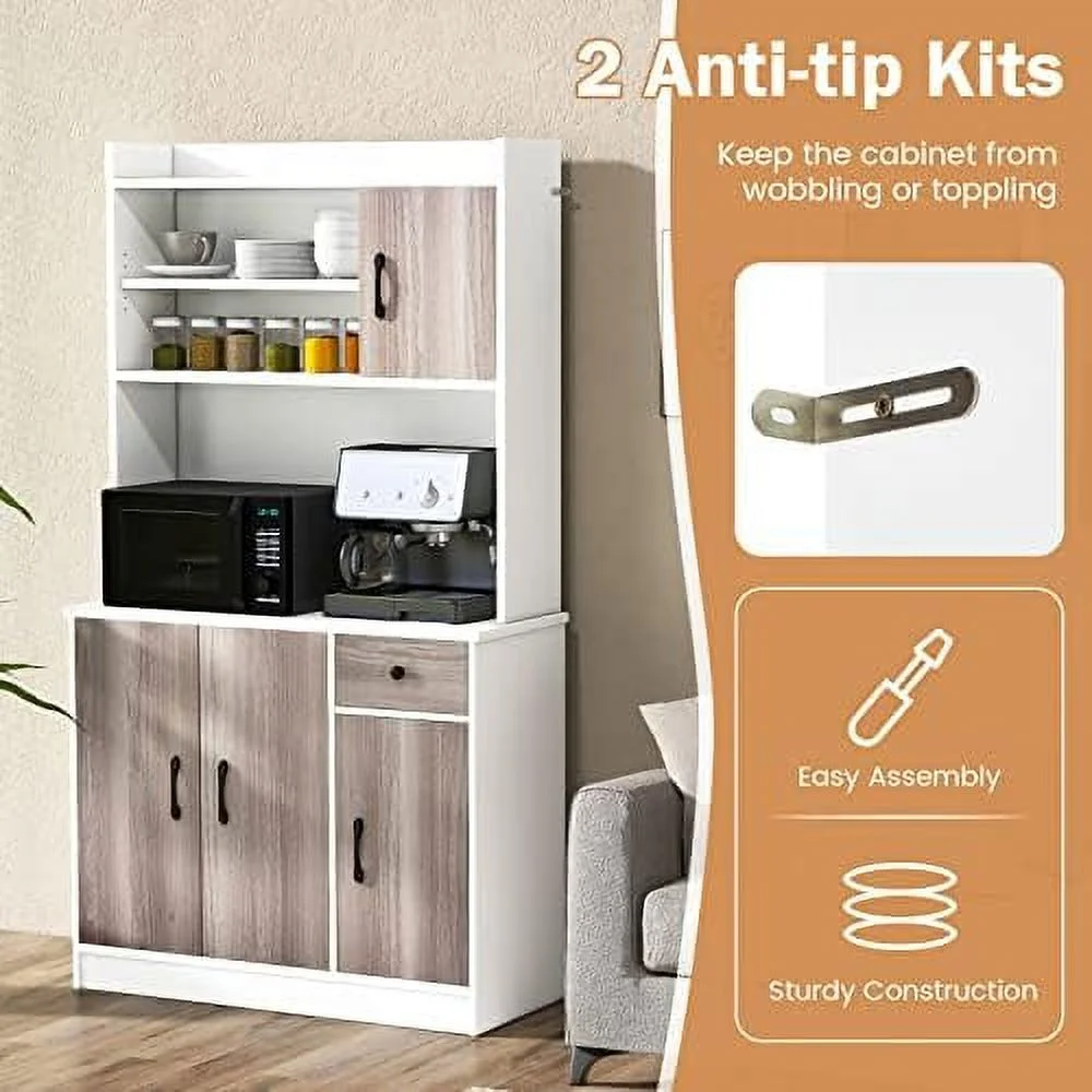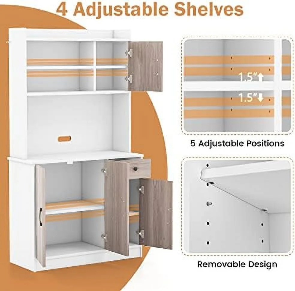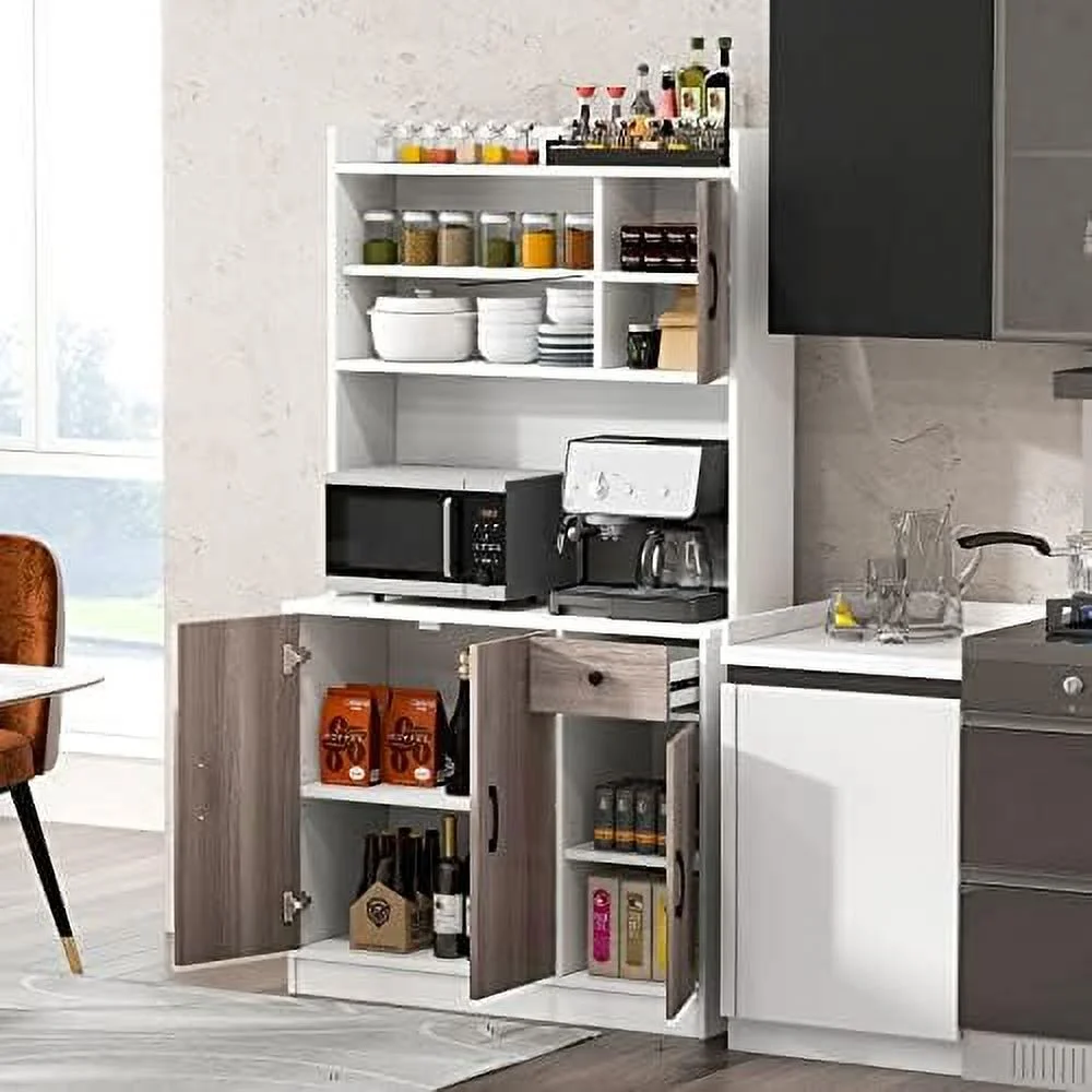CCBIUOMBO Kitchen Pantry Cabinet 71'' Freestanding Microwave Cupboard with 3 Cabinets & Drawer Adjustable Shelves Buffet with Hutch for Living Room Dining Room White