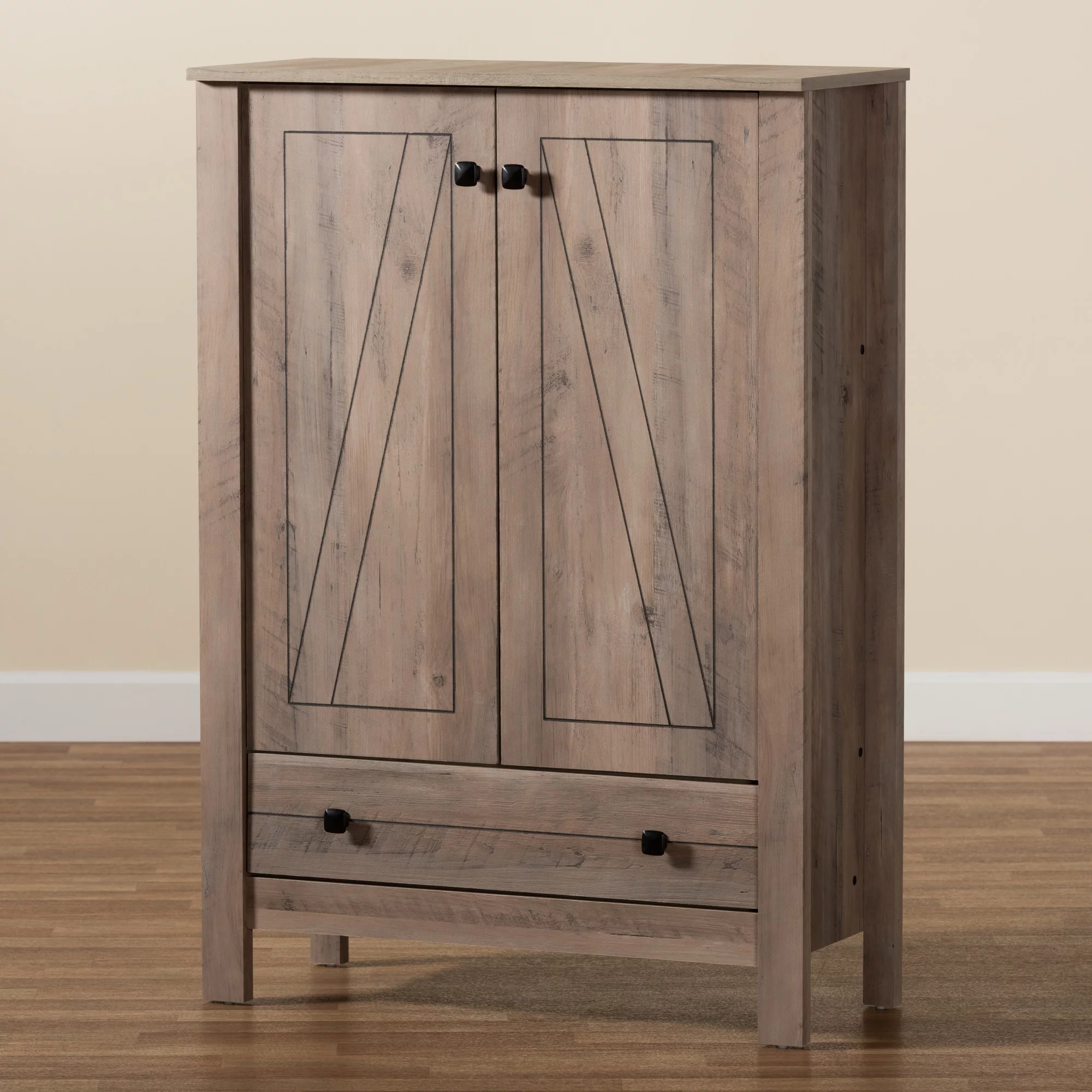 Baxton Studio Derek Modern and Contemporary Transitional Natural Oak Finished Wood 1-Drawer Shoe Cabinet