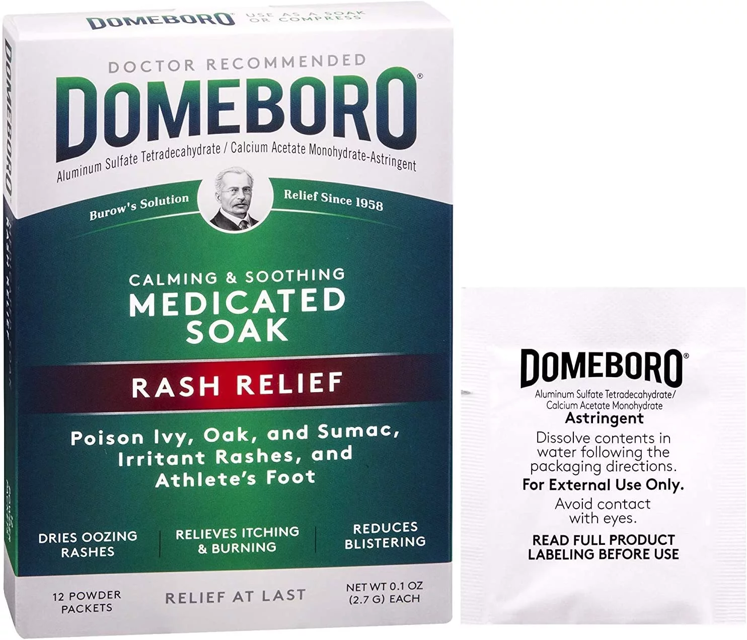 Domeboro Soothing Soak Rash Relief Poweder Packets, 12 ea (Pack of 2)