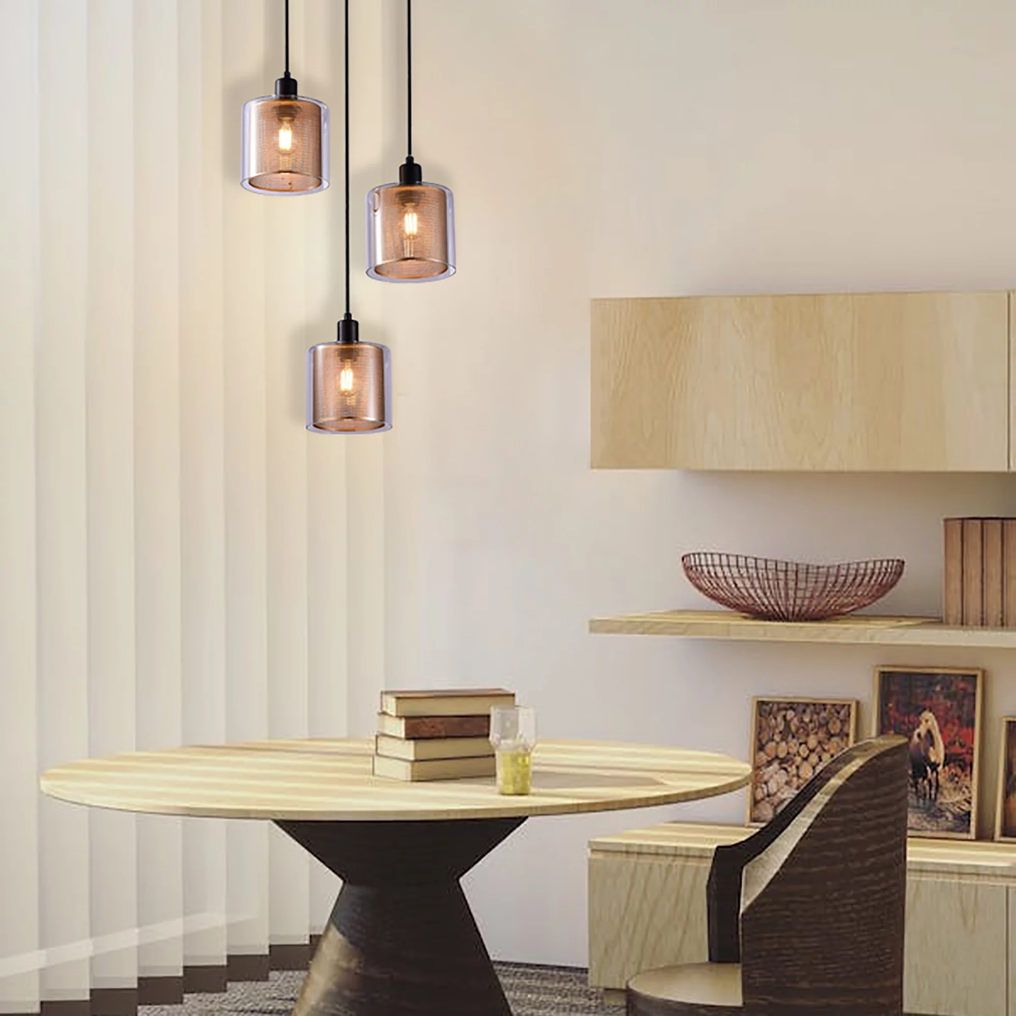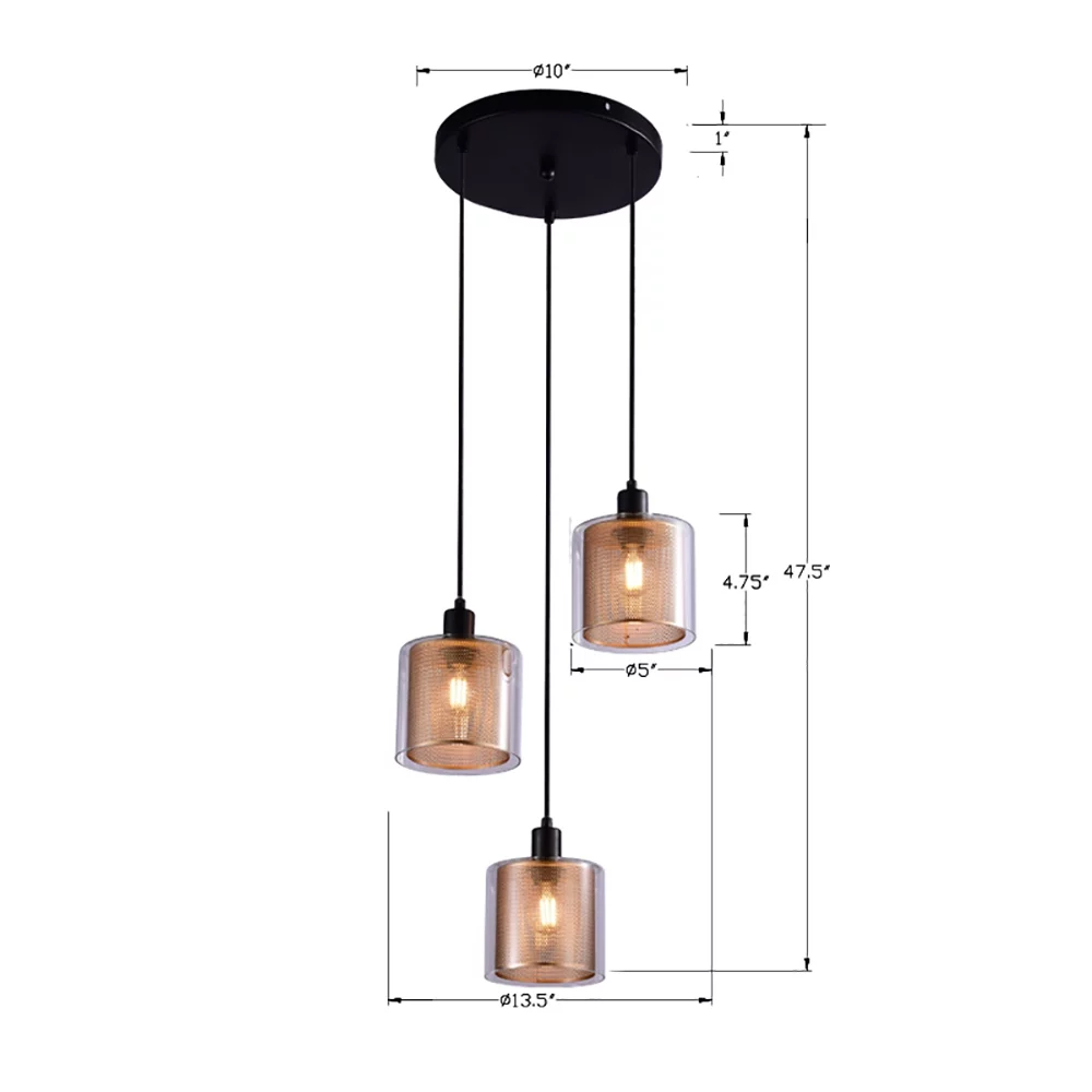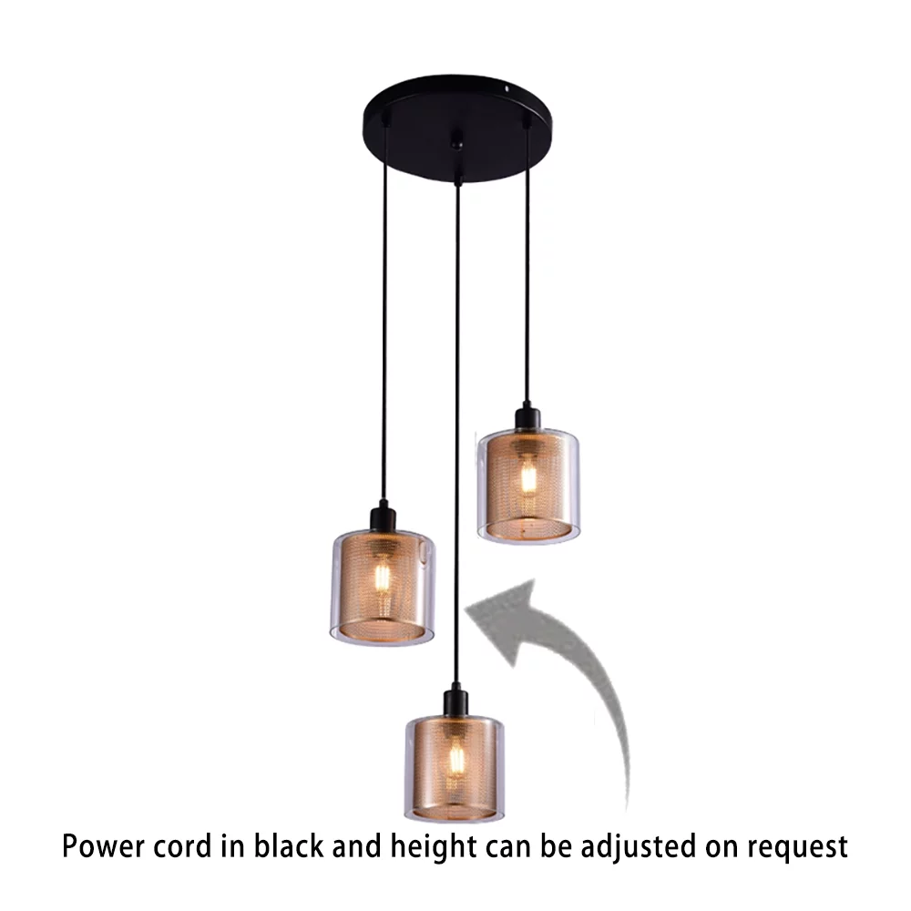 Furniture Decoration 3-head Chandelier Device, Industrial, Vintage Style Hanging Chandelier, Height Adjustable, Gold Openwork Glass Cover, Can Be Used For Kitchen, Bedroom Decorative Lamp