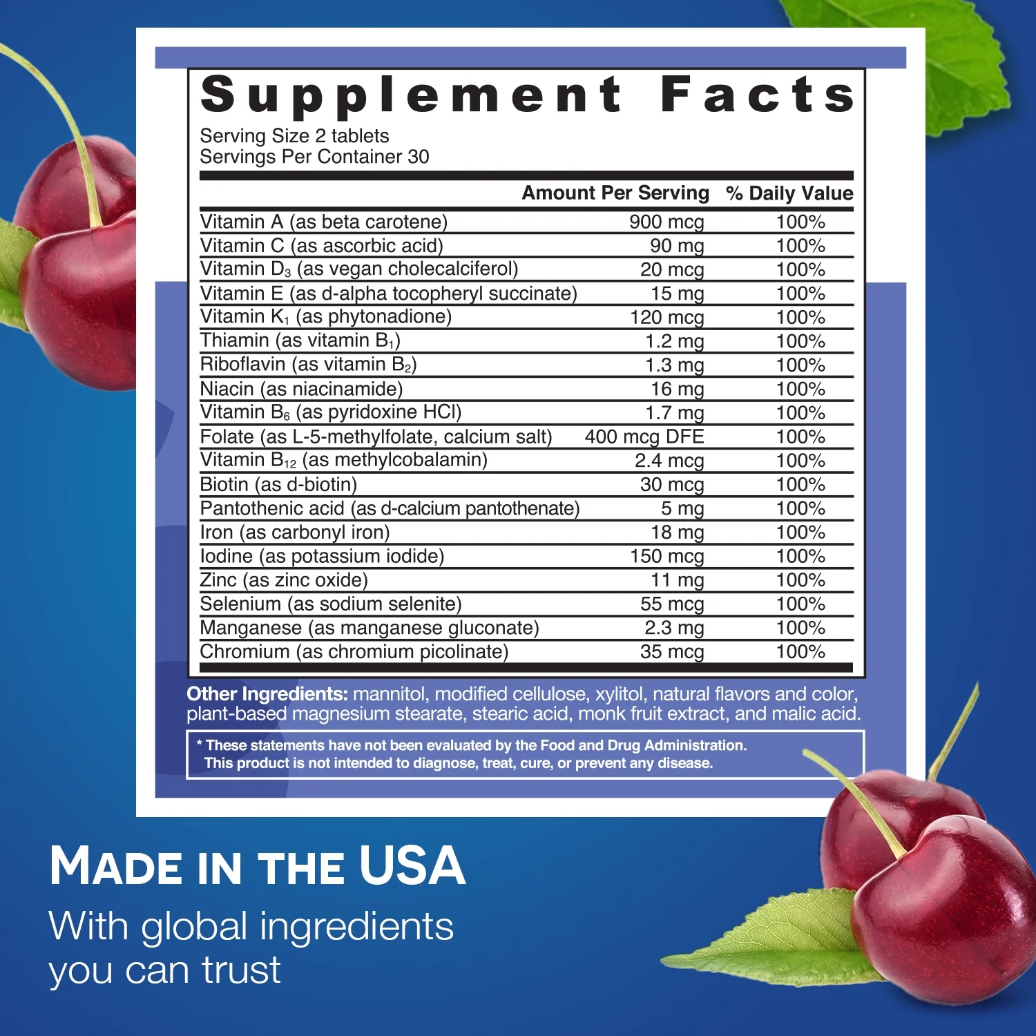 EZ Melts Multivitamin with Iron and Anti-Oxidants for Brain, Bone and Immune Health Support, 60 Tablets, Cherry Flavored, Vegan Dietary Supplements, Dissolvable and Fast Melting